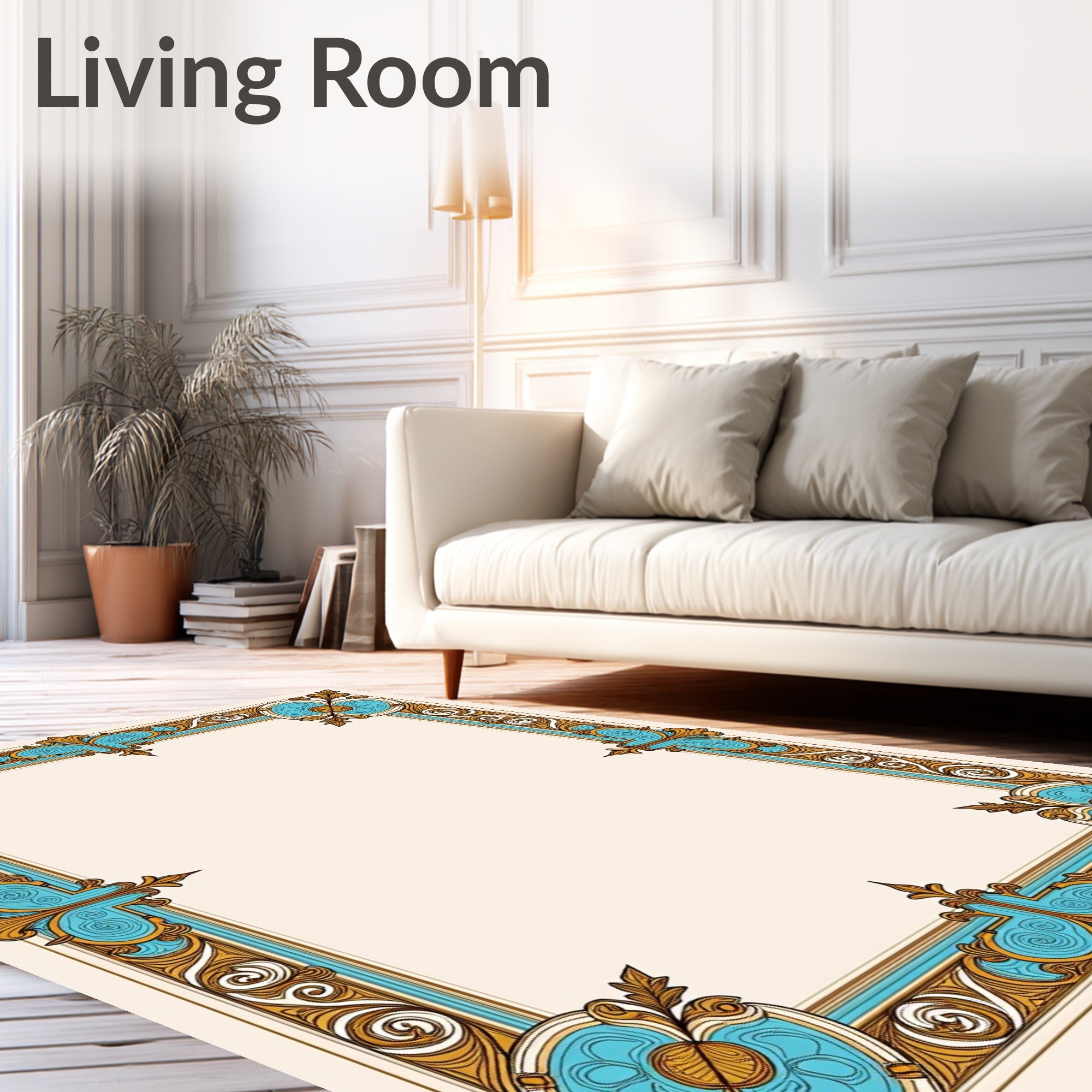 Ultra Soft Area Rug, Non Slip, Stain Resistant, Washable Area Rugs for Living Room, Bedroom, Vintage Lace Medallion with Subtle Baroque Flourishes(Blue) Overview: