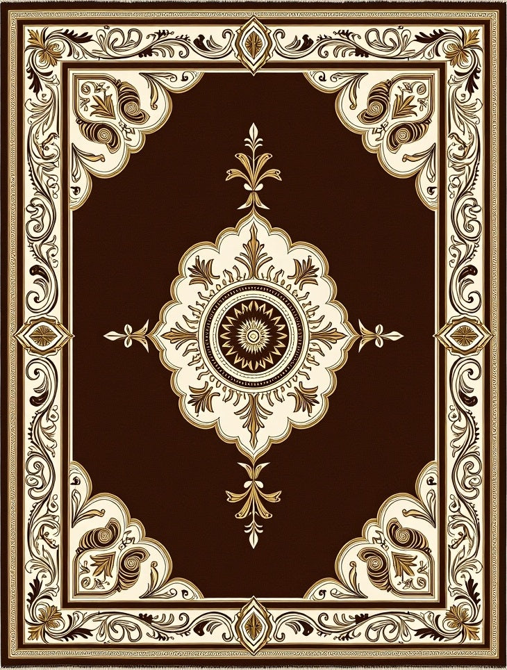 Vintage Medallion Accent with Intricate Border Design(Brown)
