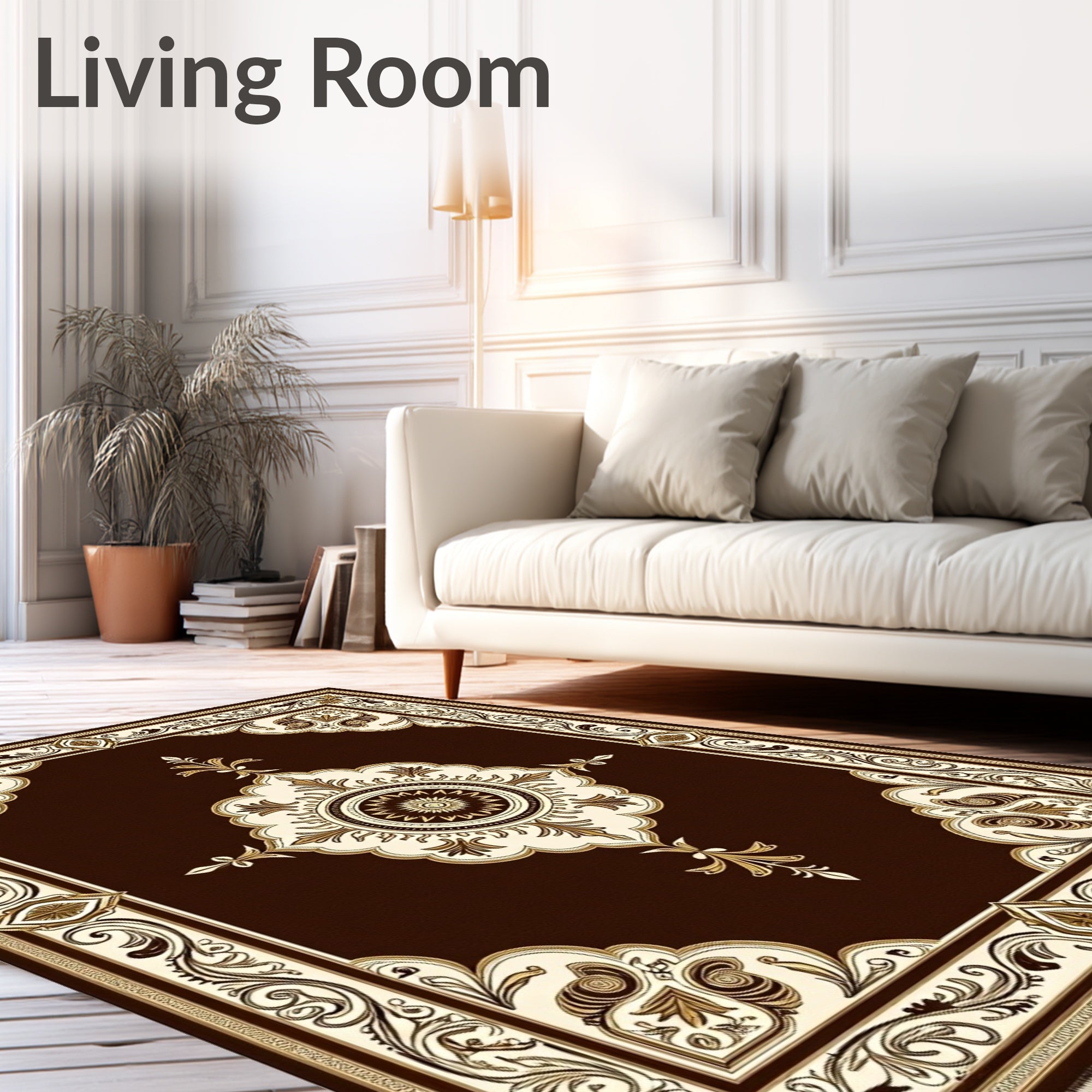 Flatwoven High Traffic Area Rug, Vintage Medallion Accent with Intricate Border Design, Non Slip, Stain Resistant, Washable Area Rugs for Living Room, Bedroom (Brown) Overview: