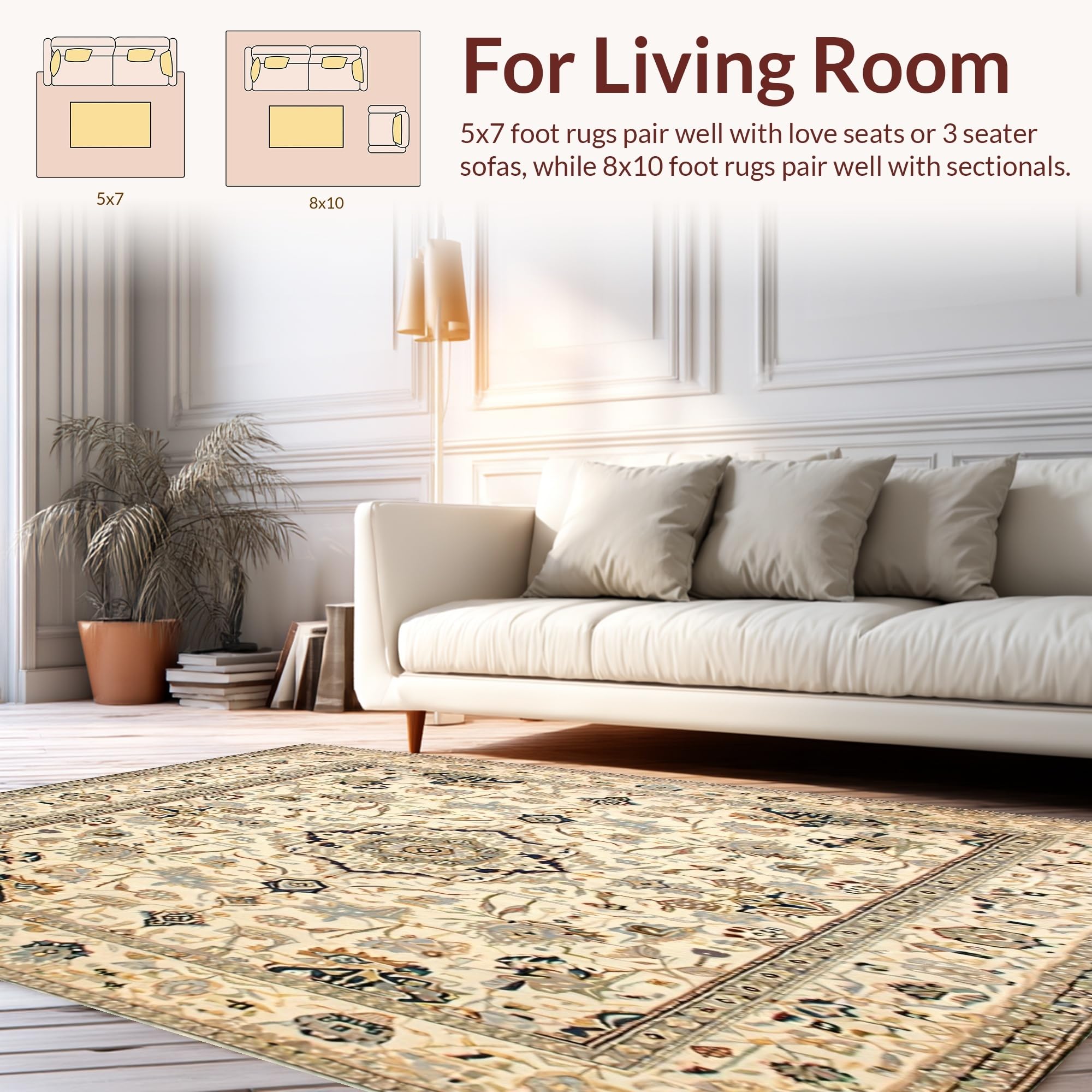 Ultra Soft Area Rug, Non Slip, Stain Resistant, Washable Area Rugs for Living Room, Bedroom, Vintage Medallion Area Beige Brown(Ivory) Overview: