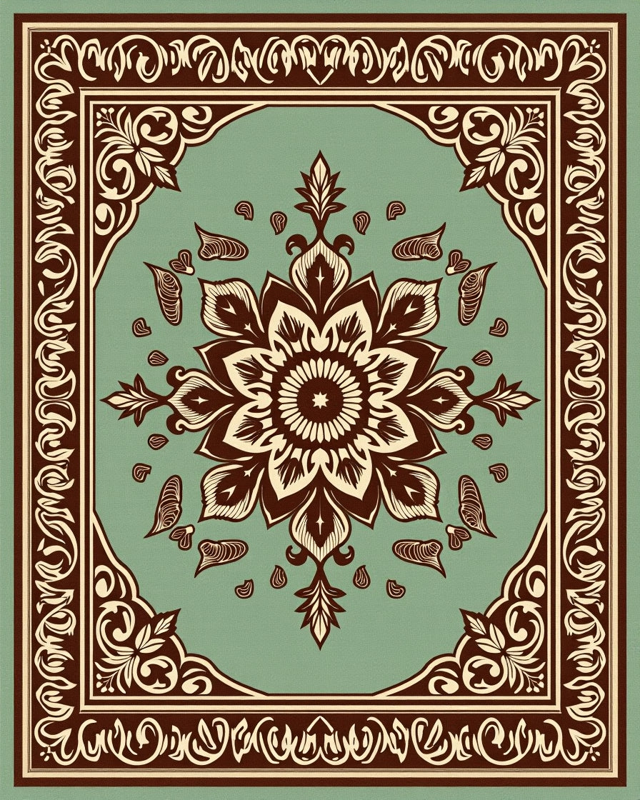 Vintage Medallion Artistry With Distressed Faded(Brown)