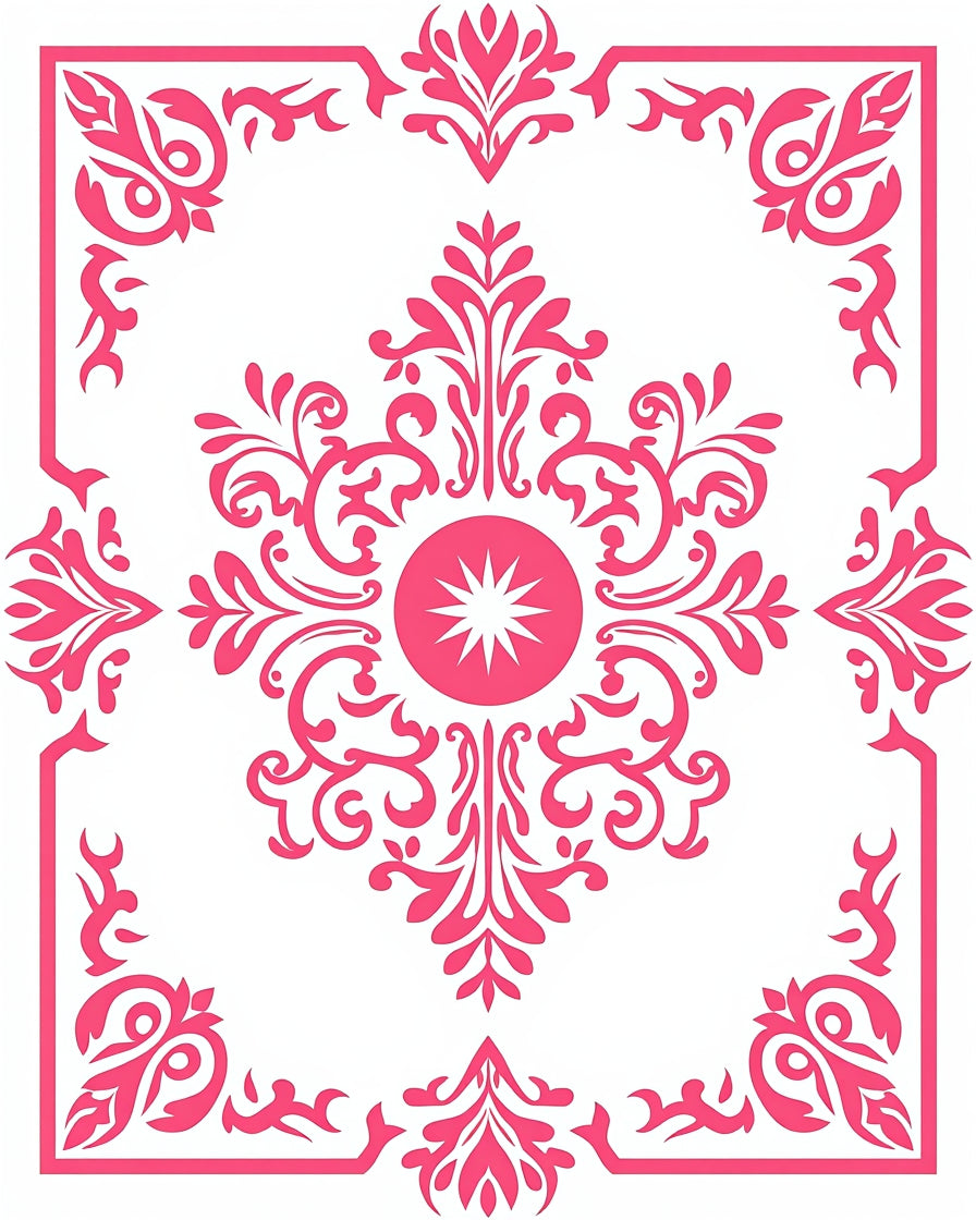 Vintage Medallion Damask with Ornate Flourish Motifs(Pink)