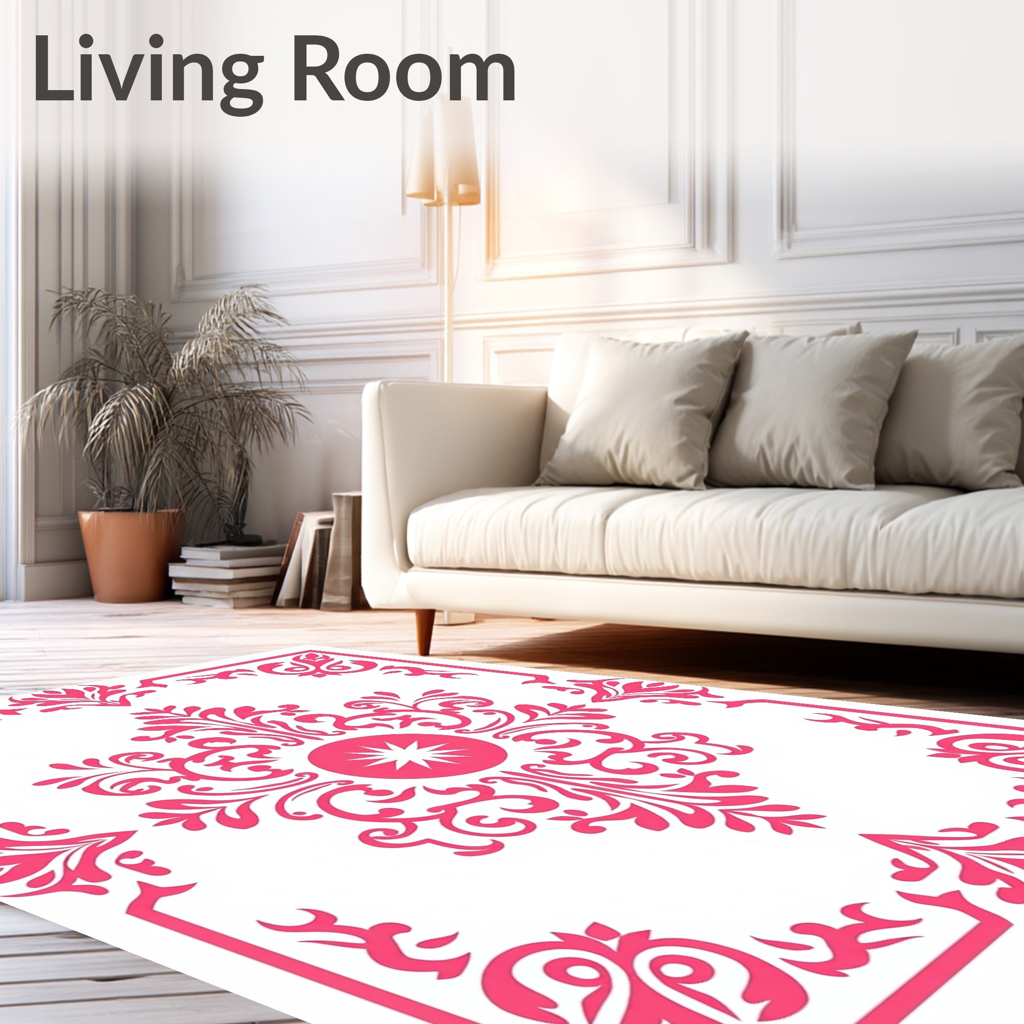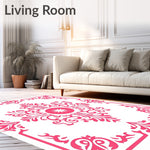 Ultra Soft Area Rug, Non Slip, Stain Resistant, Washable Area Rugs for Living Room, Bedroom, Vintage Medallion Damask with Ornate Flourish Motifs(Pink) Overview:
