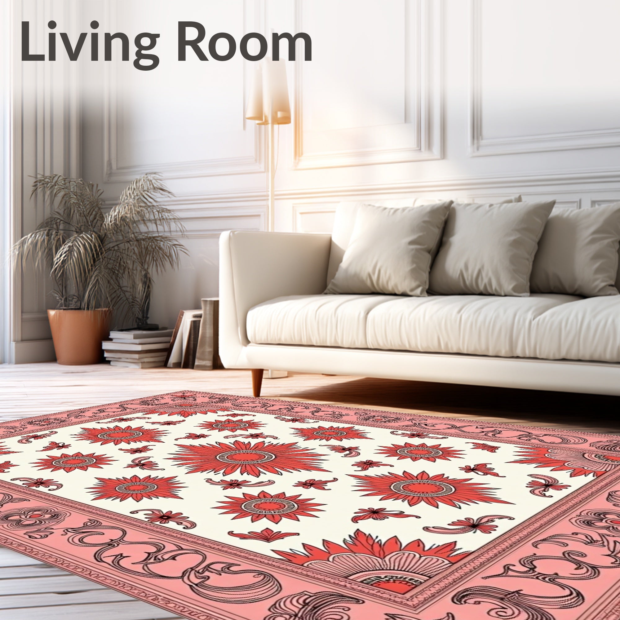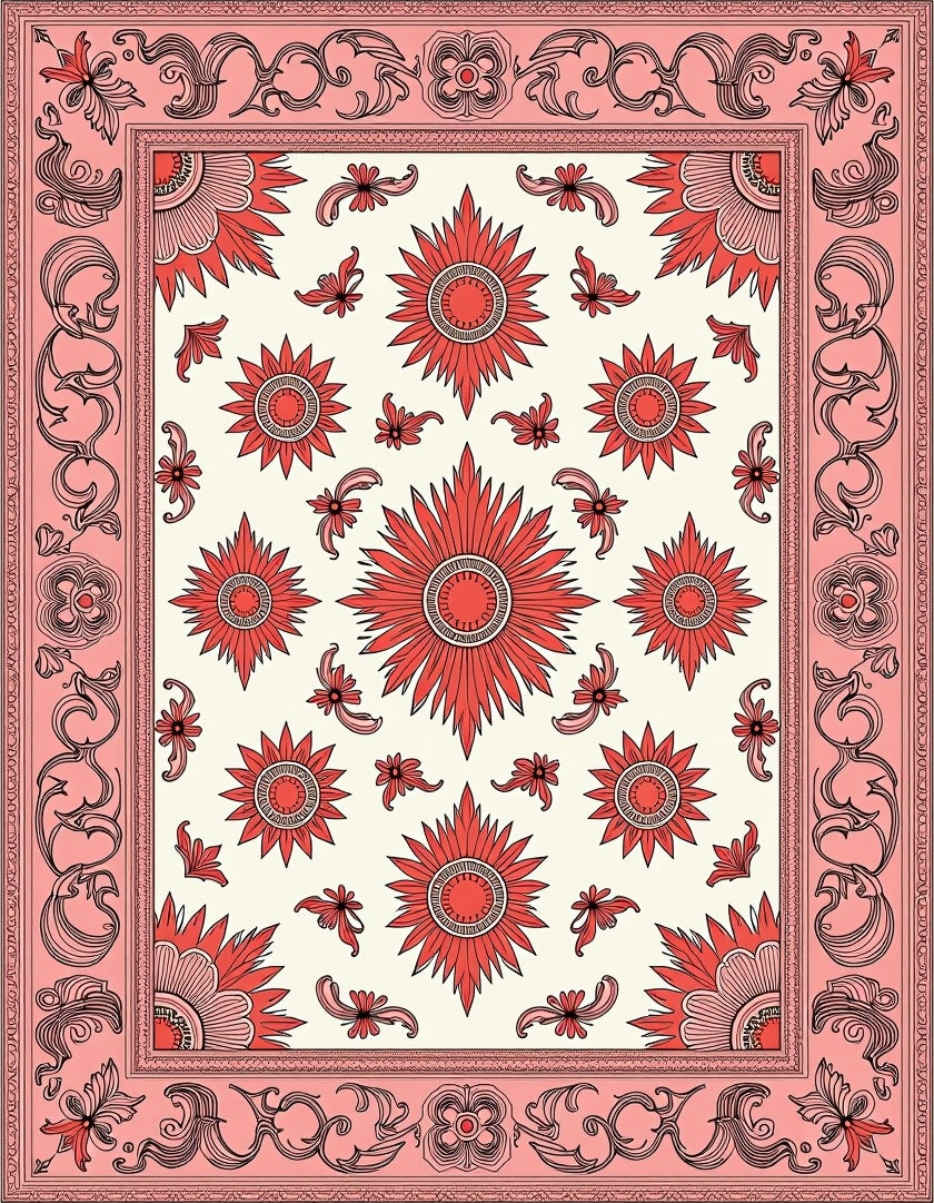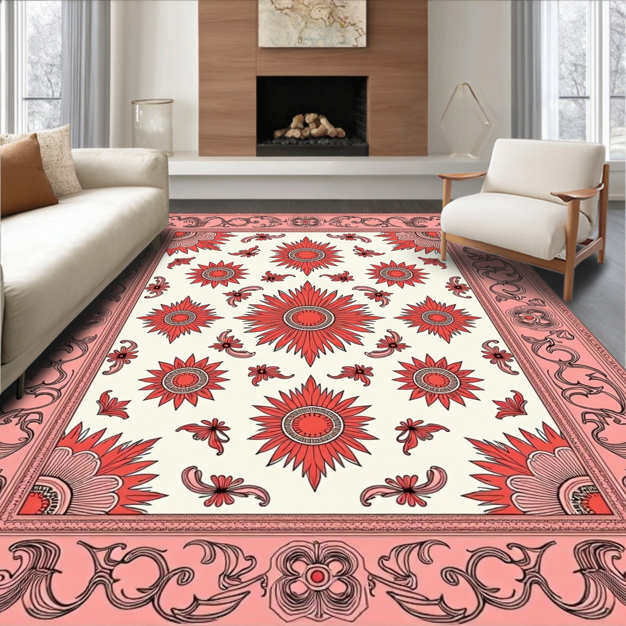 Ultra Soft Area Rug, Non Slip, Stain Resistant, Washable Area Rugs for Living Room, Bedroom, Vintage Medallion Jewel(Pink) Overview: