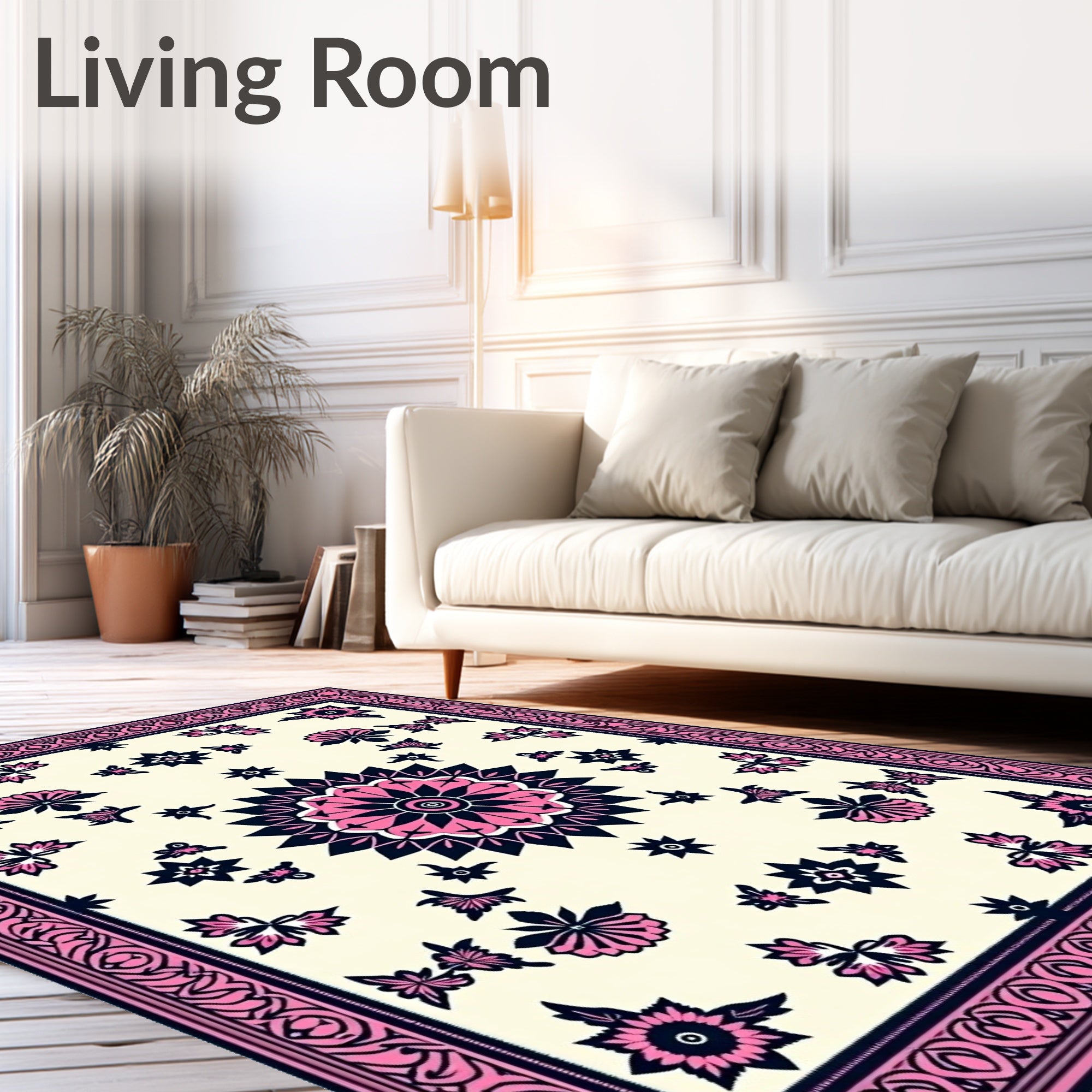 Ultra Soft Area Rug, Non Slip, Stain Resistant, Washable Area Rugs for Living Room, Bedroom, Vintage Medallion Lattice Heritage(Pink) Overview: