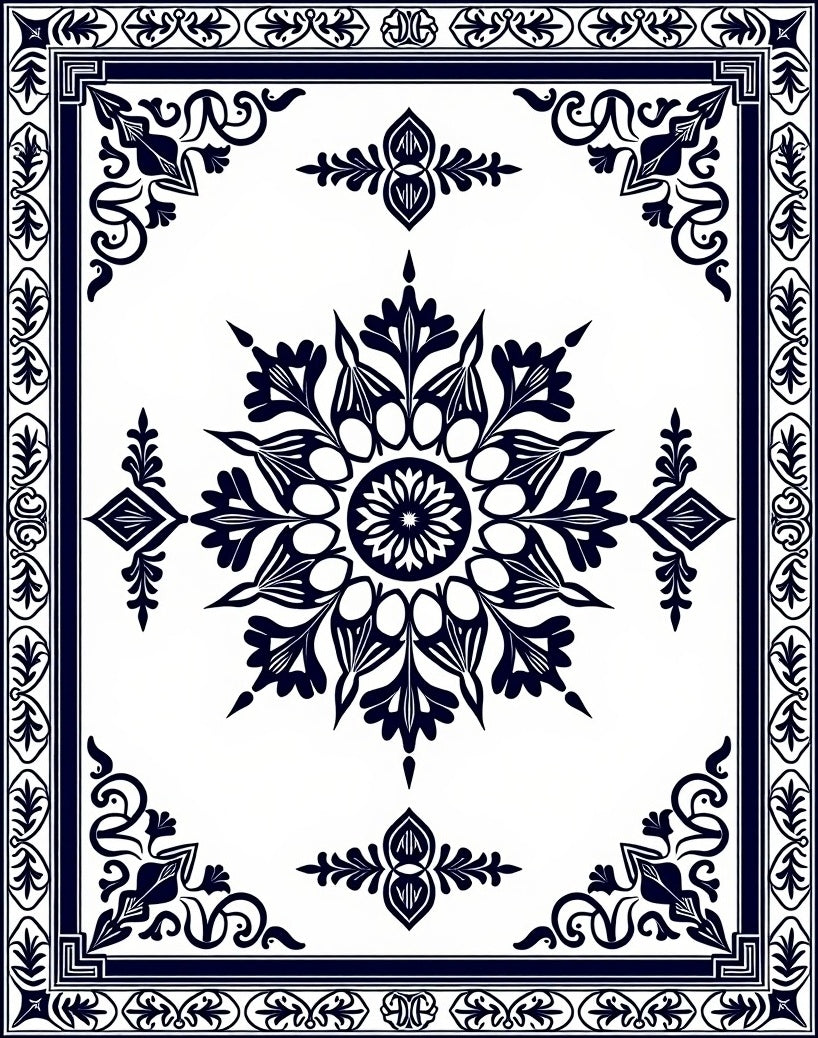 Vintage Medallion Pathway with Ornate Botanical Motifs(Blue)