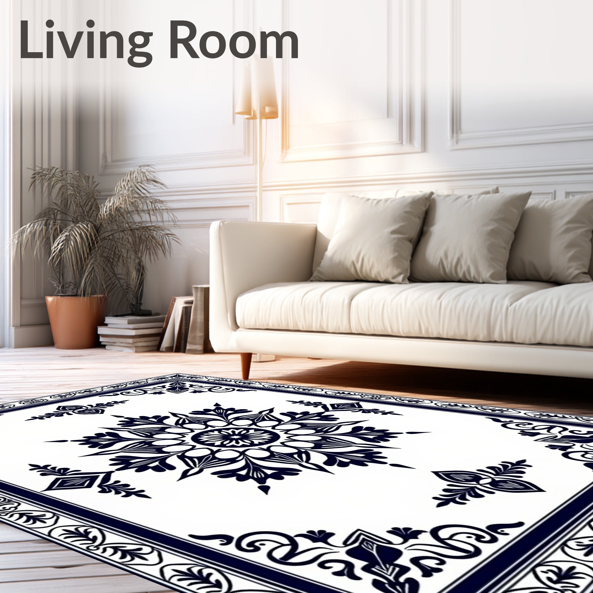 Ultra Soft Area Rug, Non Slip, Stain Resistant, Washable Area Rugs for Living Room, Bedroom, Vintage Medallion Pathway with Ornate Botanical Motifs(Blue) Overview: