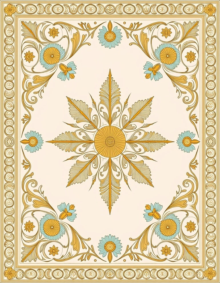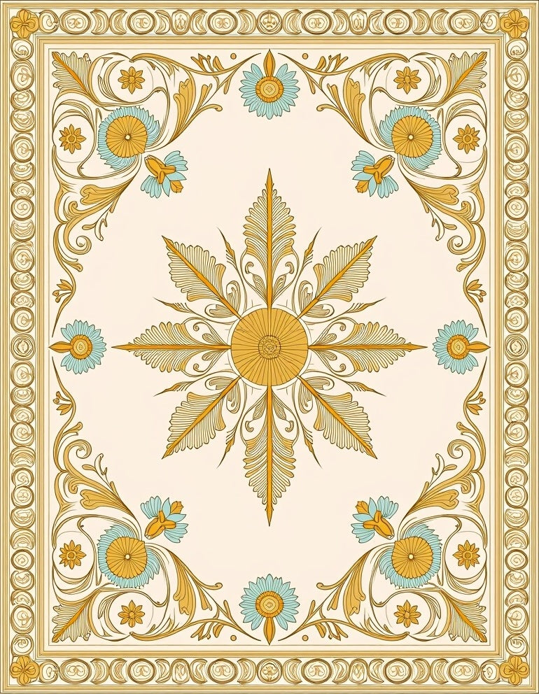 Vintage Medallion Scrollwork with Faded Botanical Motifs and Art Nouveau Accents(Gold)