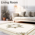 Ultra Soft Area Rug, Non Slip, Stain Resistant, Washable Area Rugs for Living Room, Bedroom, Vintage Medallion Tufted with Ornate Central Motif(Beige) Overview: