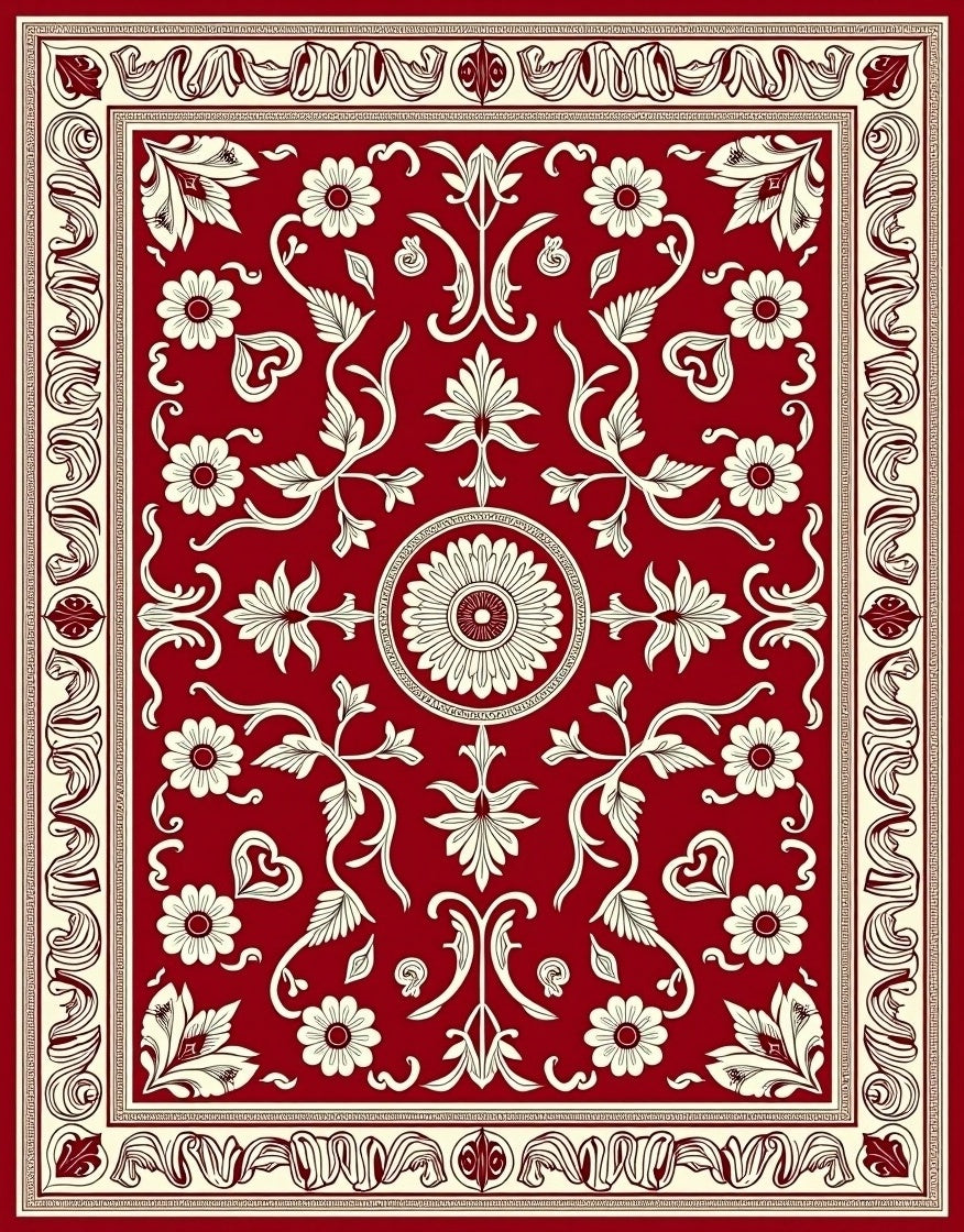 Vintage Mosaic Floral Arabesque Artistic Handwoven(Red)