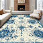 Ultra Soft Area Rug, Non Slip, Stain Resistant, Washable Area Rugs for Living Room, Bedroom, Vintage Nautical Map With Compass Rose Anchor Design Sea Creature(Blue) Overview: