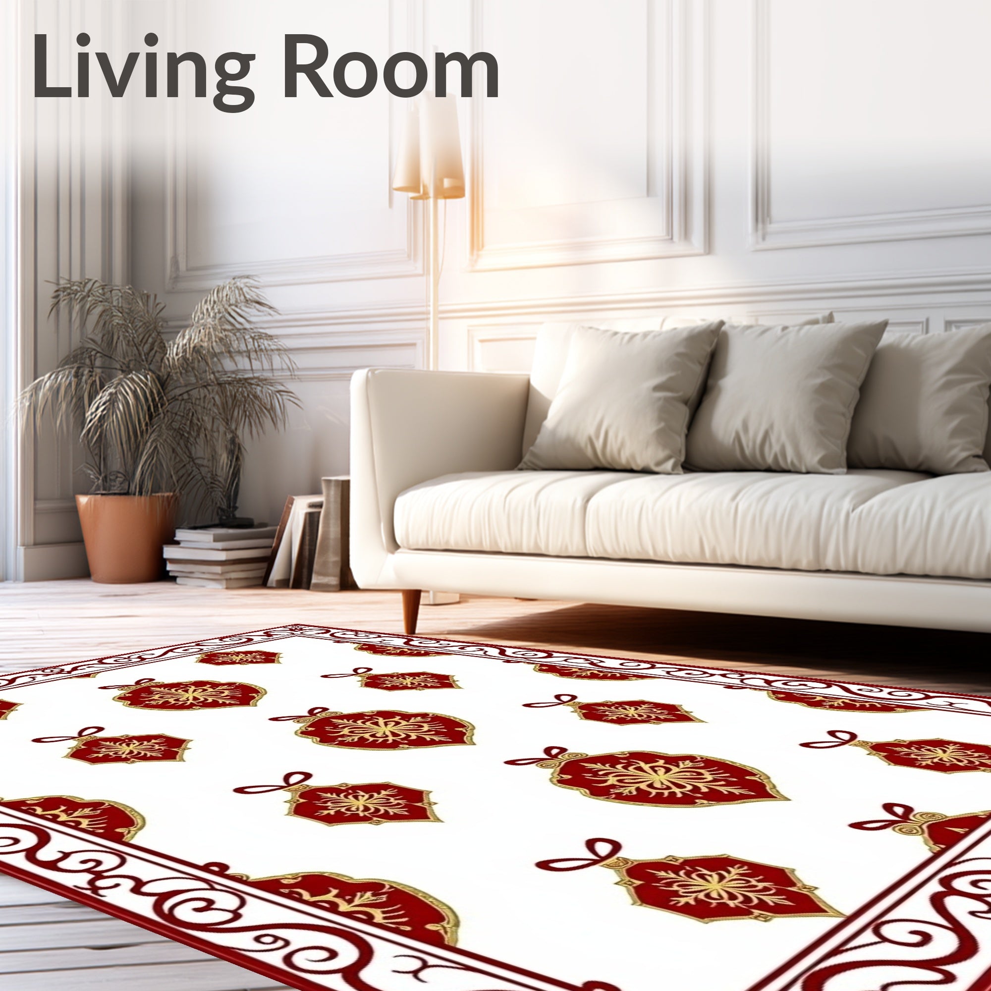 Ultra Soft Area Rug, Non Slip, Stain Resistant, Washable Area Rugs for Living Room, Bedroom, Vintage Ornament Design Holiday with Swirl Accents(Red) Overview: