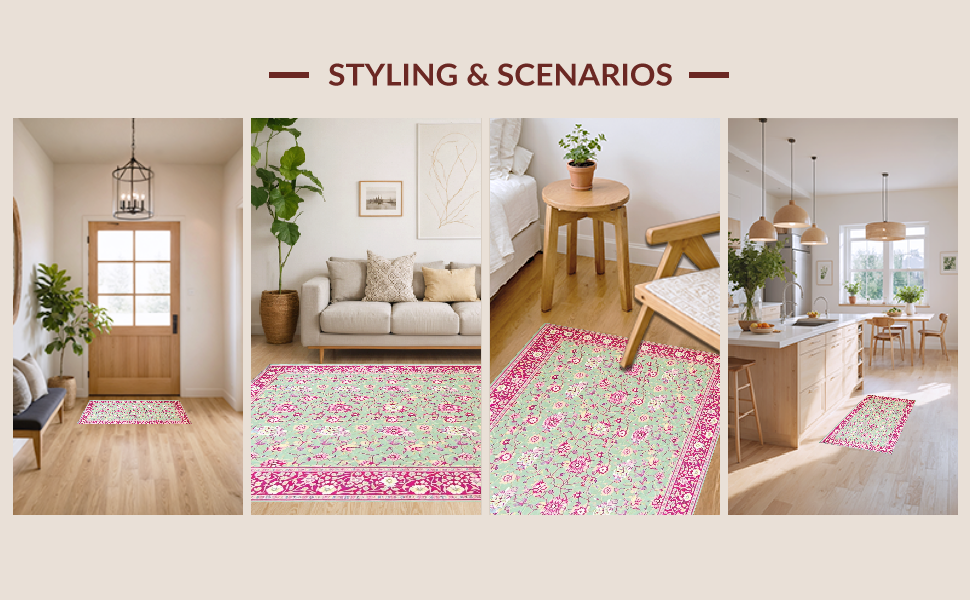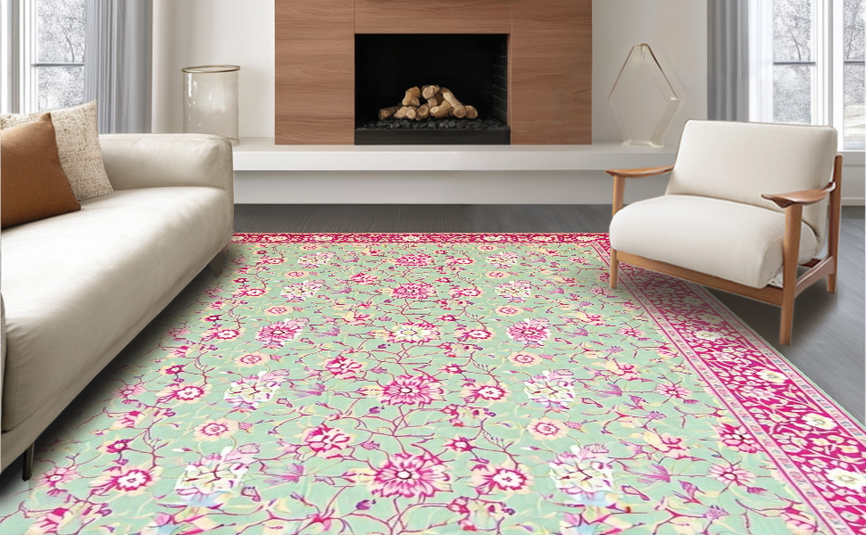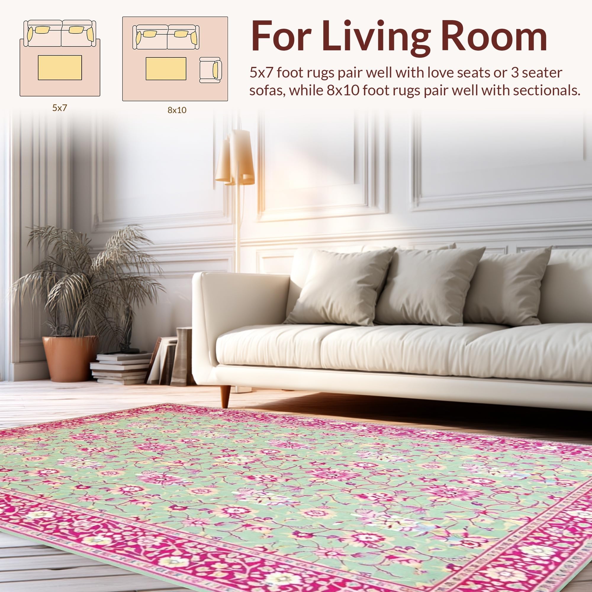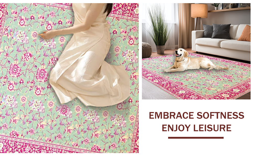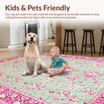 Ultra Soft Area Rug, Non Slip, Stain Resistant, Washable Area Rugs for Living Room, Bedroom, Vintage Pink Botanical Design(Ivory) Overview: