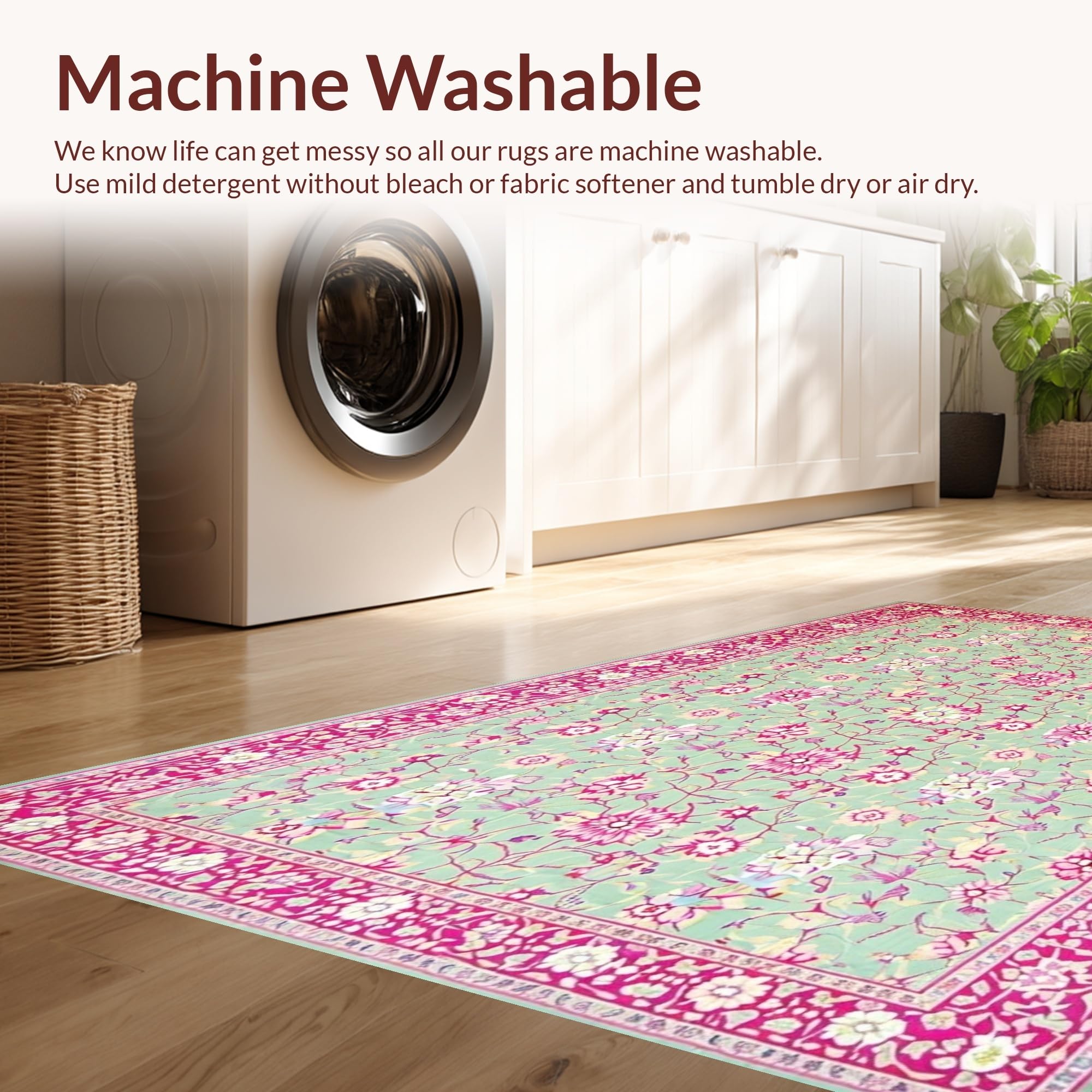 - Machine Washable: Our rugs can be easily thrown in the wash machine.