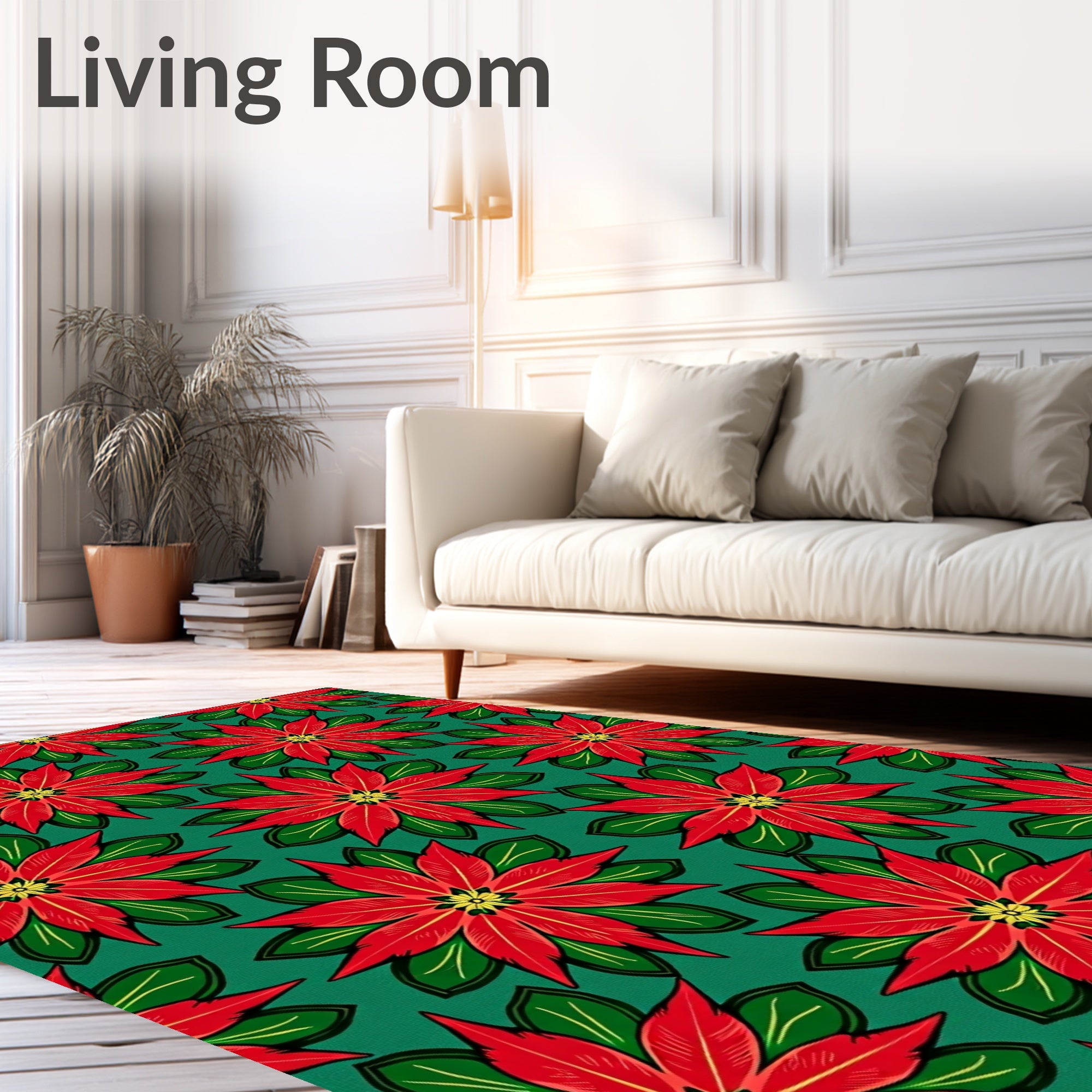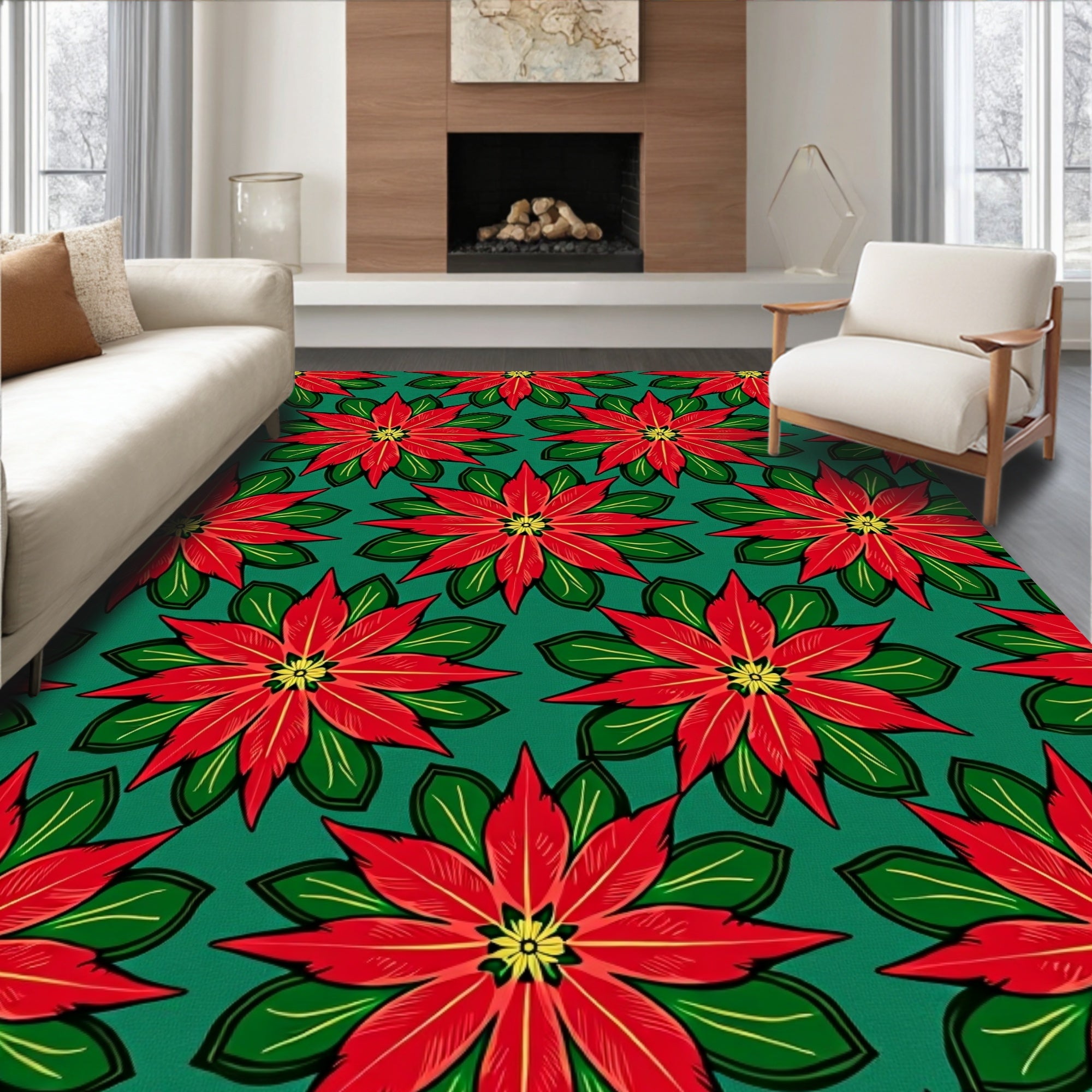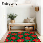 Ultra Soft Area Rug, Non Slip, Stain Resistant, Washable Area Rugs for Living Room, Bedroom, Vintage Poinsettia Bloom Festive Holiday(Red) Overview:
