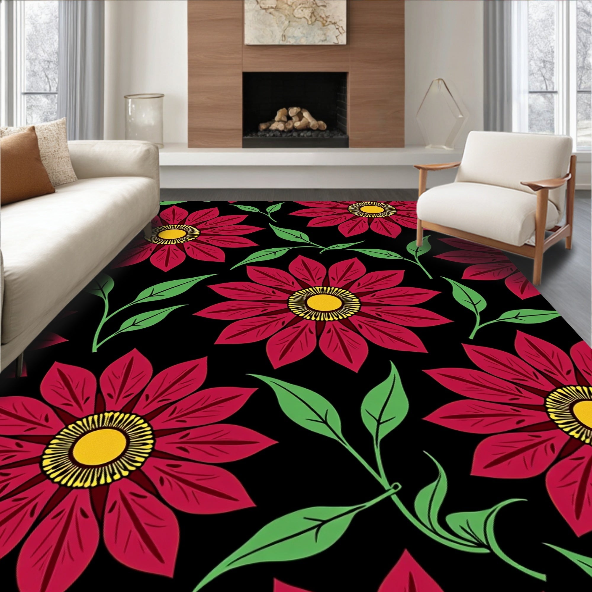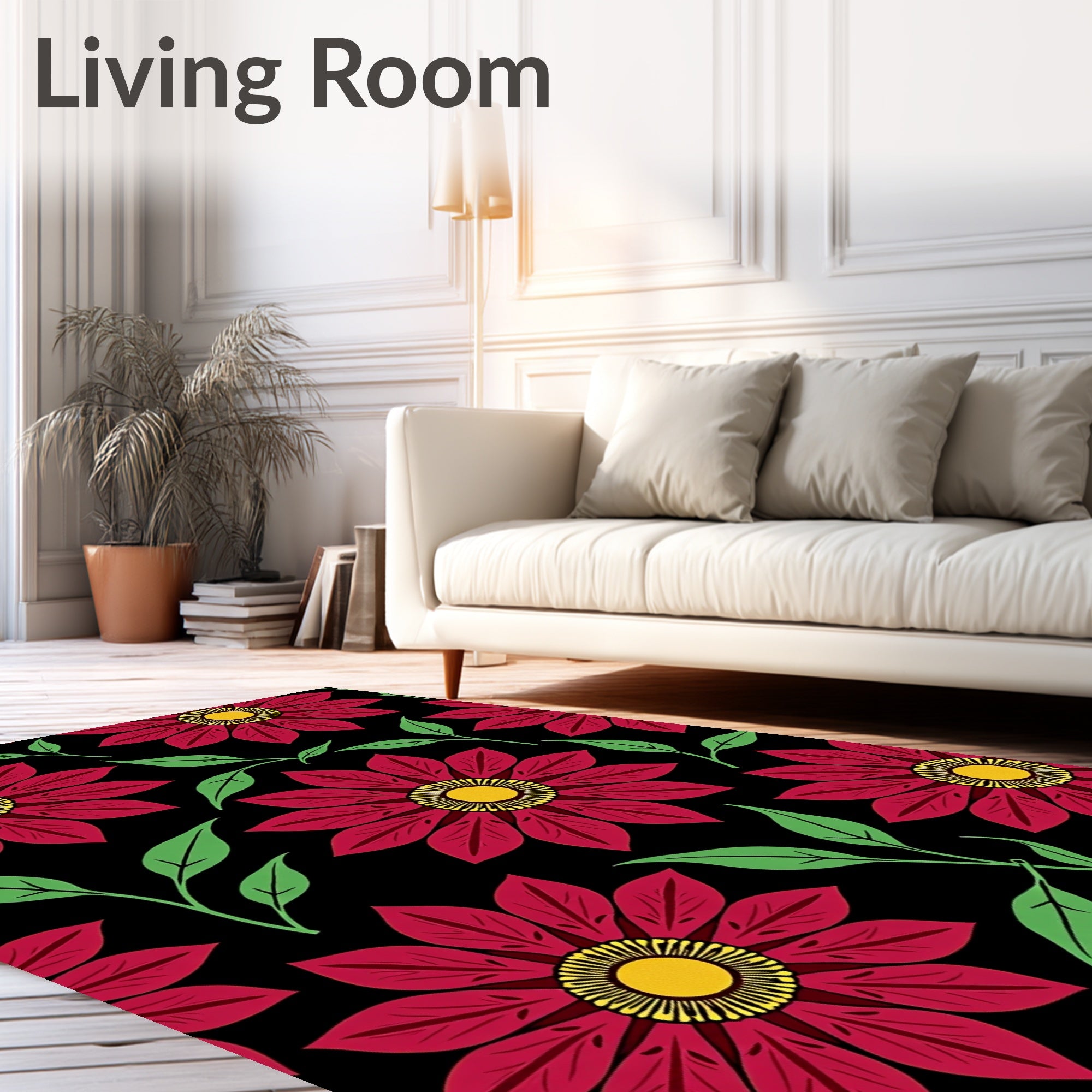 Ultra Soft Area Rug, Non Slip, Stain Resistant, Washable Area Rugs for Living Room, Bedroom, Vintage Poinsettia Bloom Seasonal Celebration Accent(Black) Overview: