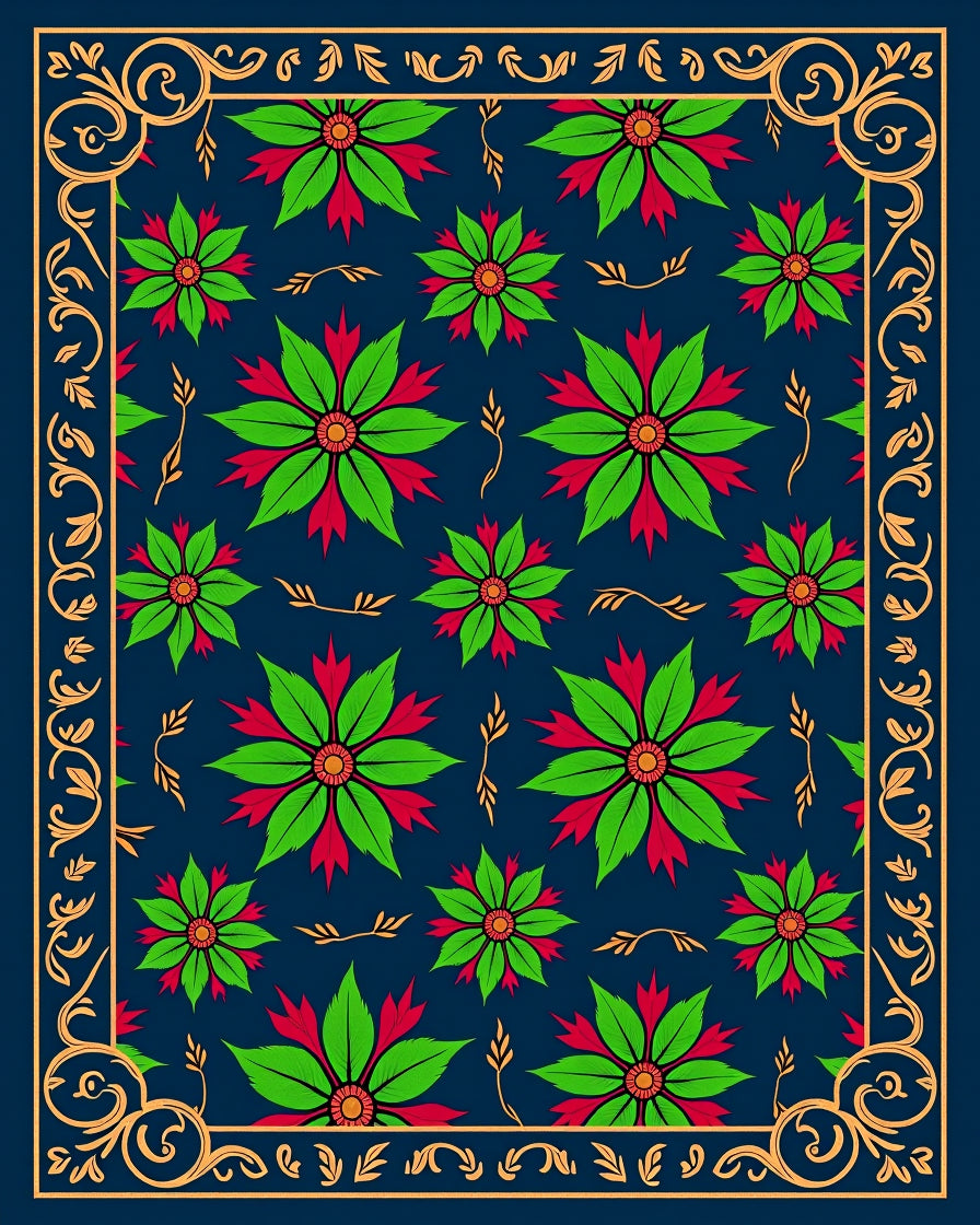 Vintage Poinsettia Blossom Design with Floral(Blue)