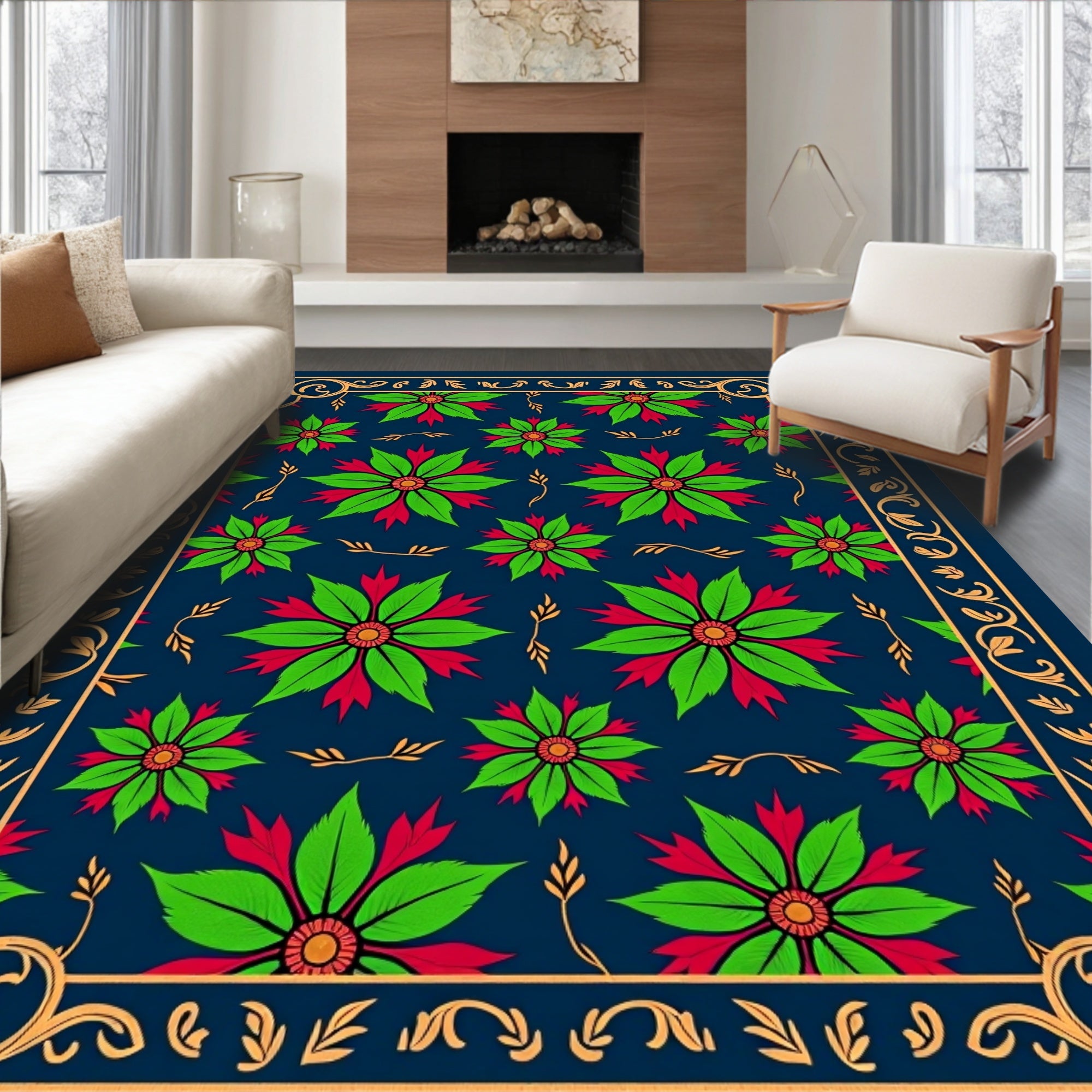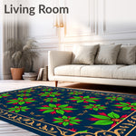 Flatwoven High Traffic Area Rug, Vintage Poinsettia Blossom Design with Floral, Non Slip, Stain Resistant, Washable Area Rugs for Living Room, Bedroom (Blue) Overview: