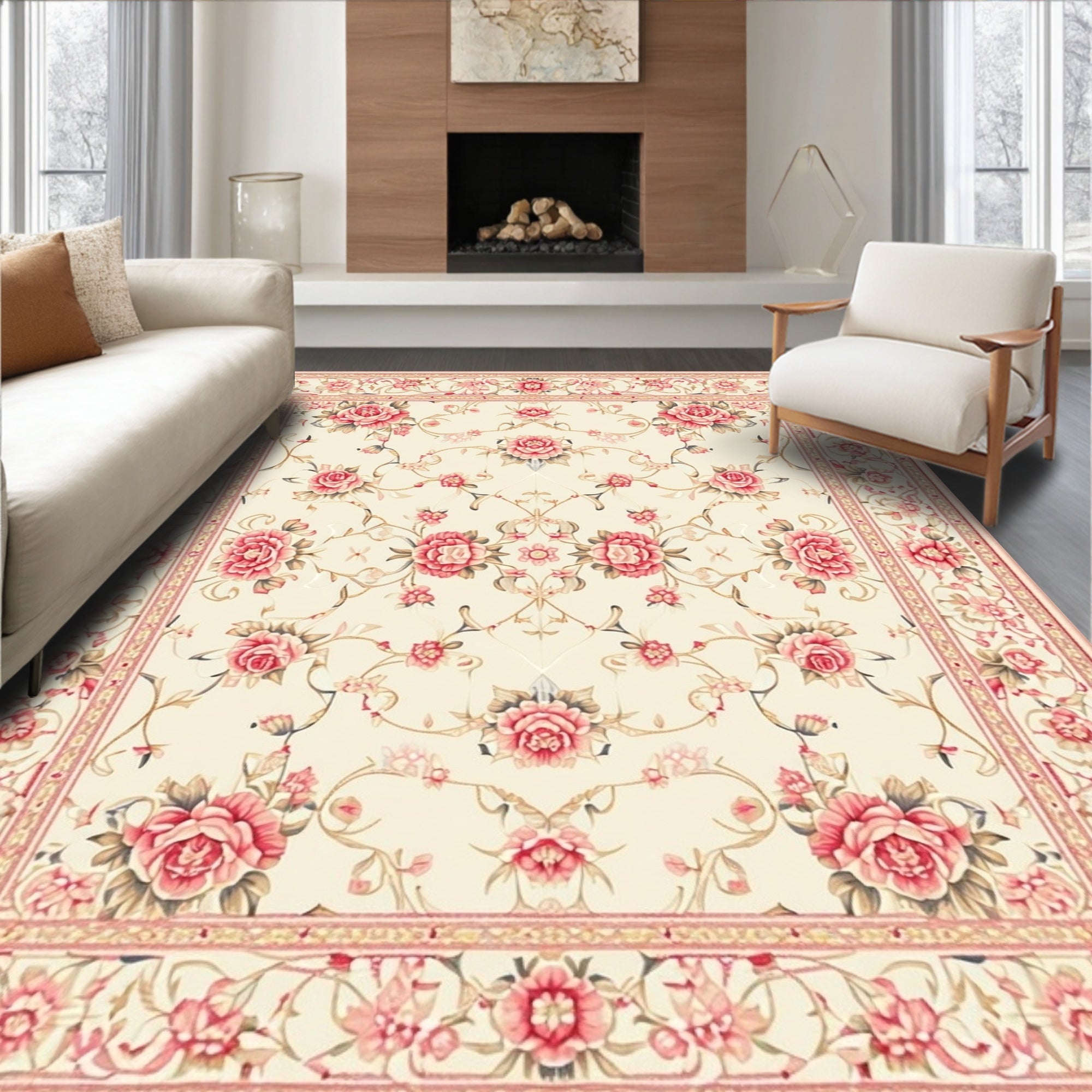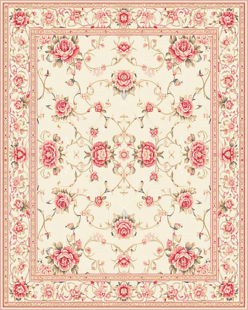 Flatwoven High Traffic Area Rug, Vintage Round Rose with Floral Embroidery, Non Slip, Stain Resistant, Washable Area Rugs for Living Room, Bedroom (Beige) Overview: