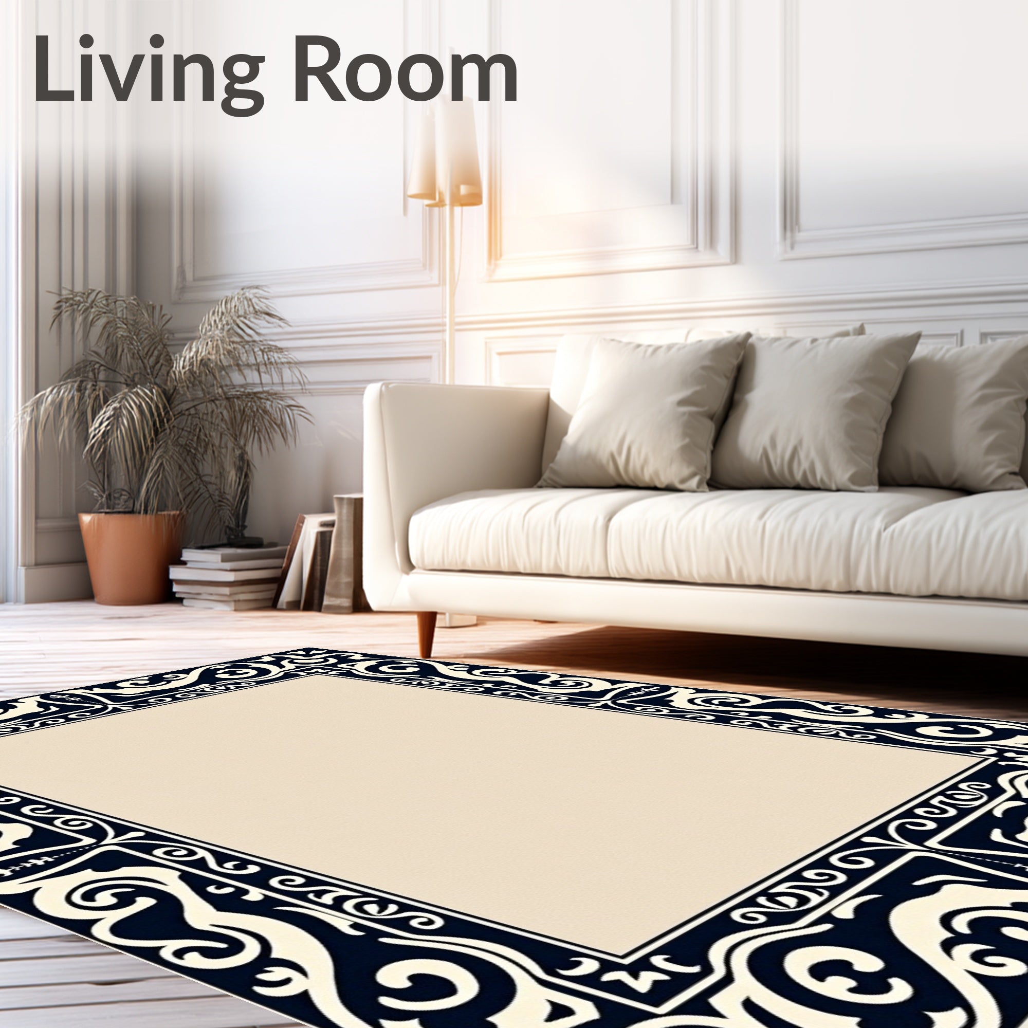 Ultra Soft Area Rug, Non Slip, Stain Resistant, Washable Area Rugs for Living Room, Bedroom, Vintage Scrollwork with Sophisticated Edge Detail(Beige) Overview: