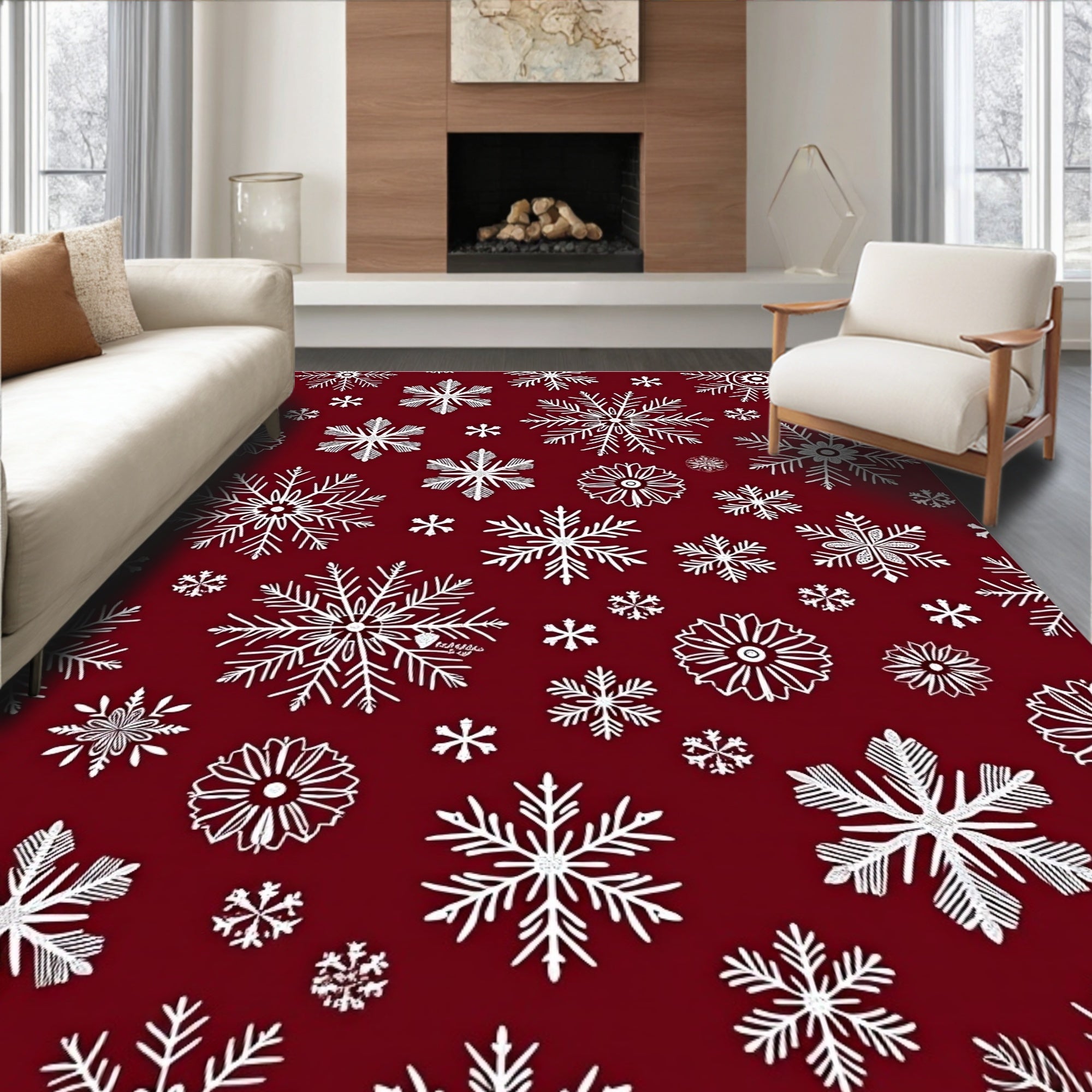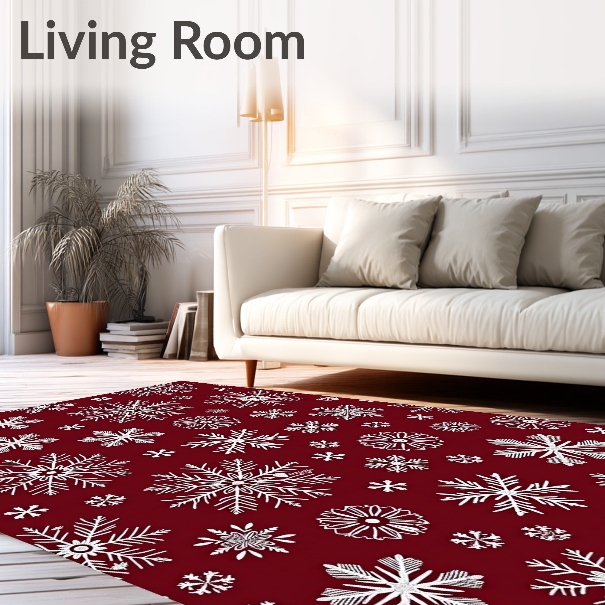 Ultra Soft Area Rug, Non Slip, Stain Resistant, Washable Area Rugs for Living Room, Bedroom, Vintage Snowflake Christmas Entrance Winter Door Covering(Red) Overview: