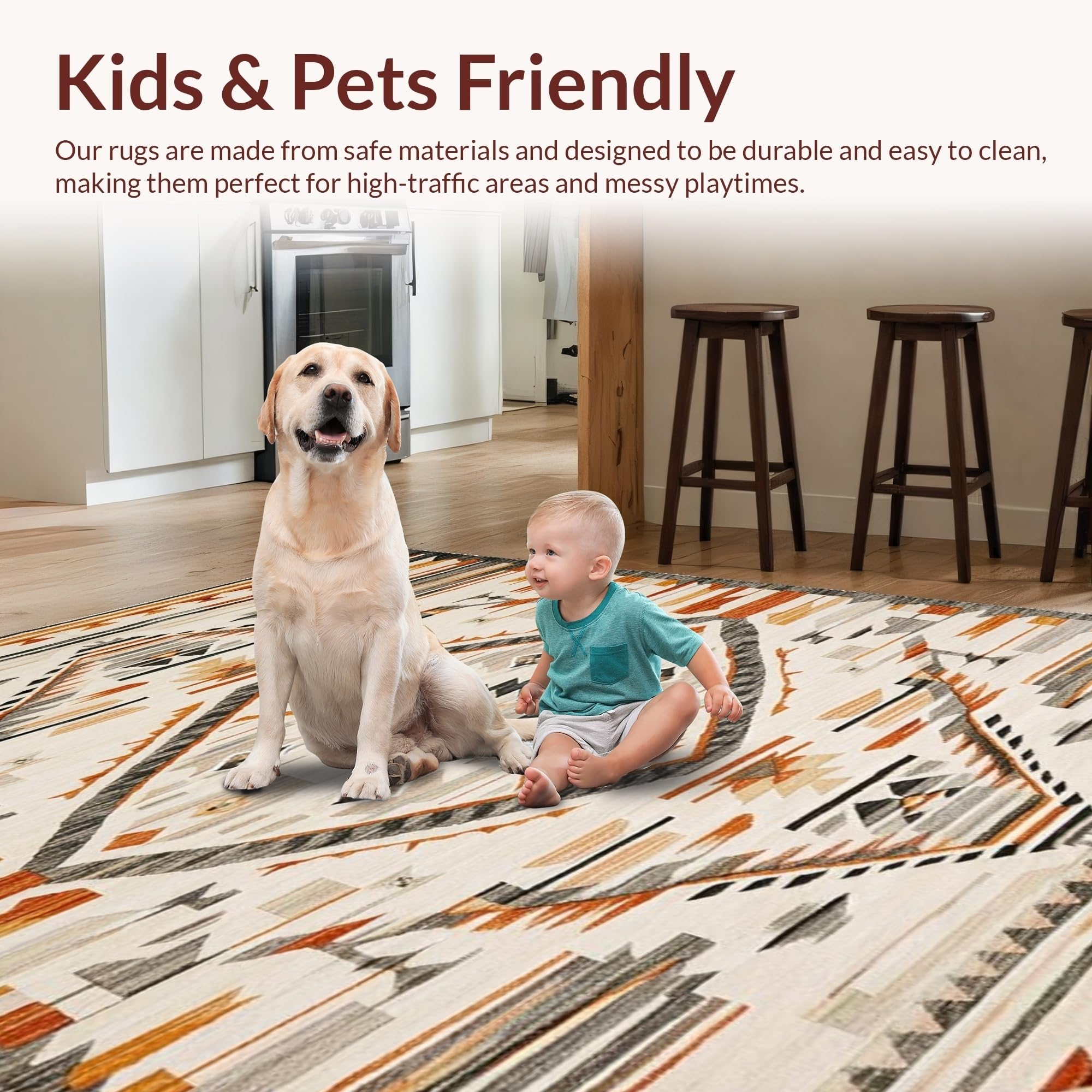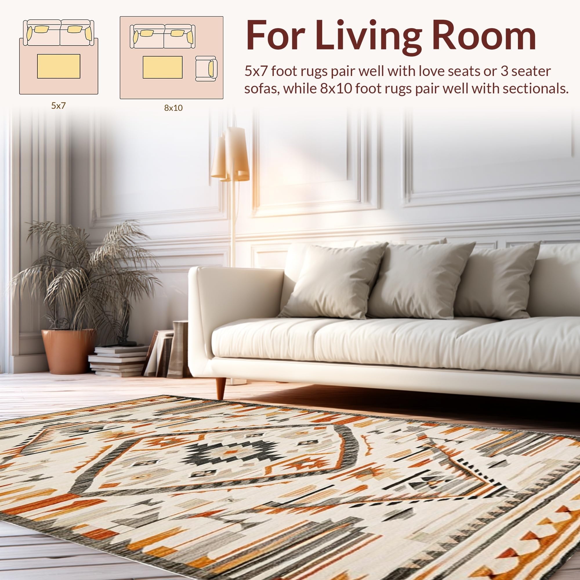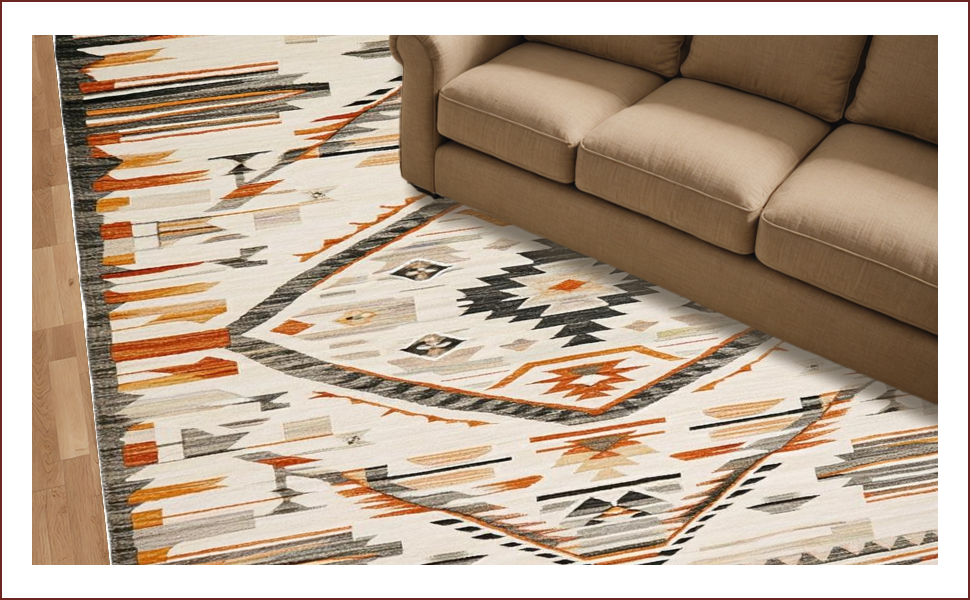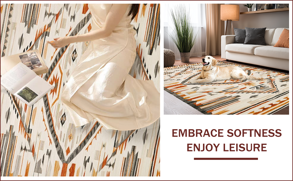 Ultra Soft Area Rug, Non Slip, Stain Resistant, Washable Area Rugs for Living Room, Bedroom, Vintage Southwest Abstract Motif(Beige) Overview: