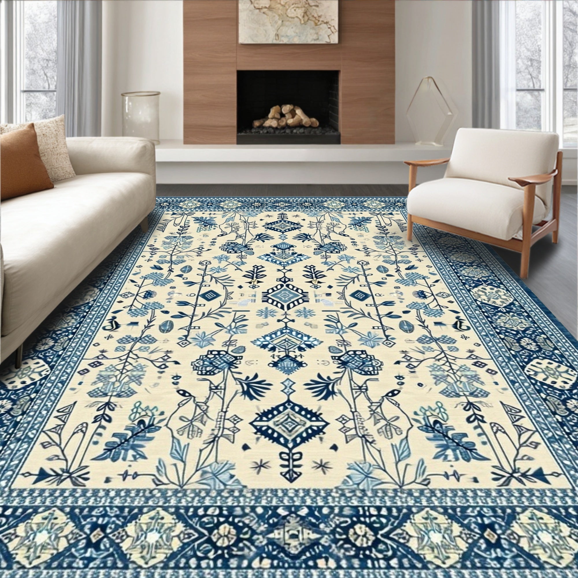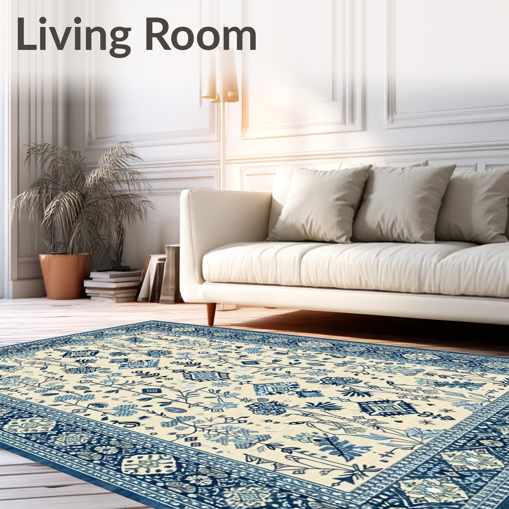 Ultra Soft Area Rug, Non Slip, Stain Resistant, Washable Area Rugs for Living Room, Bedroom, Vintage Southwest Inspired Area with Elegant Plant(Beige) Overview: