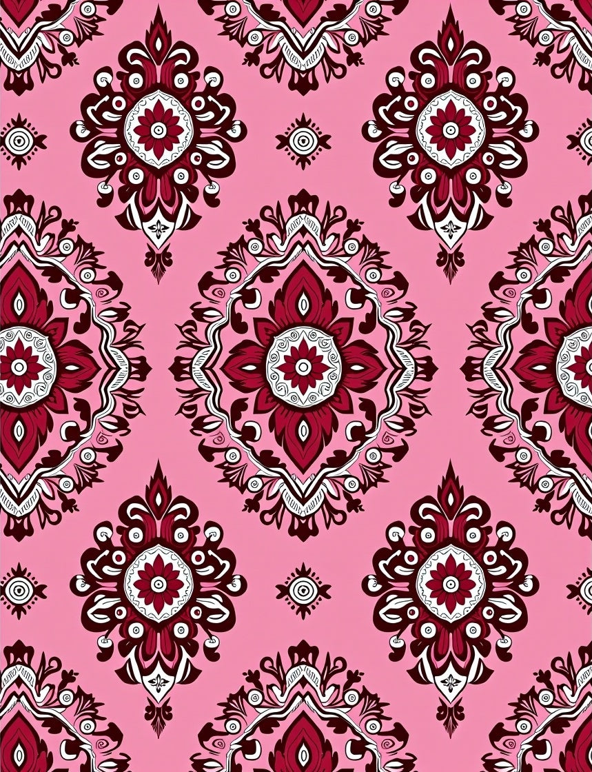 Vintage Starburst Damask with Ornate Berry Cluster Details(Pink)