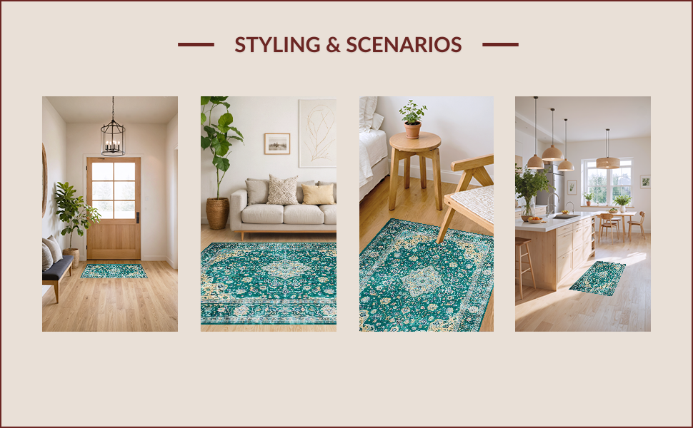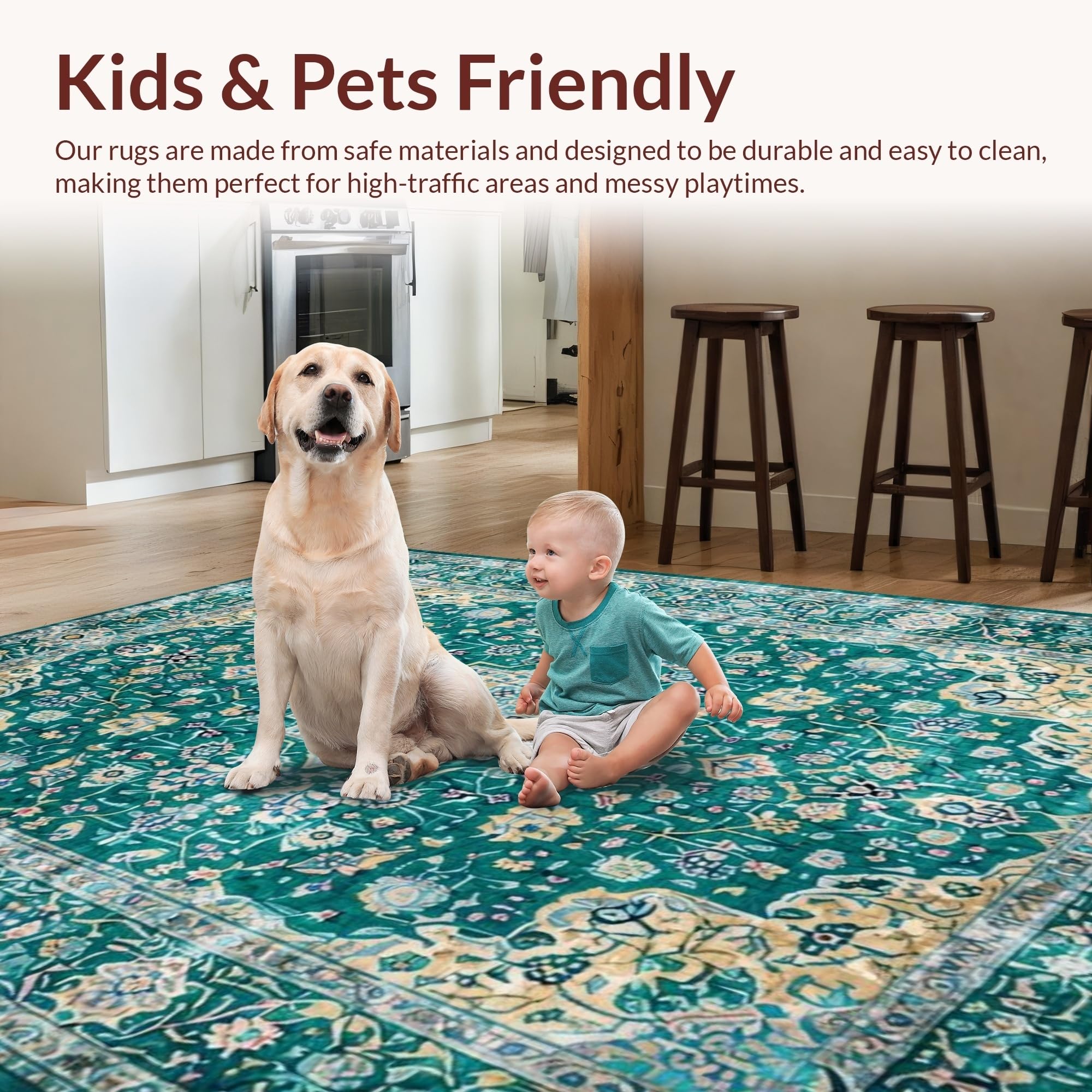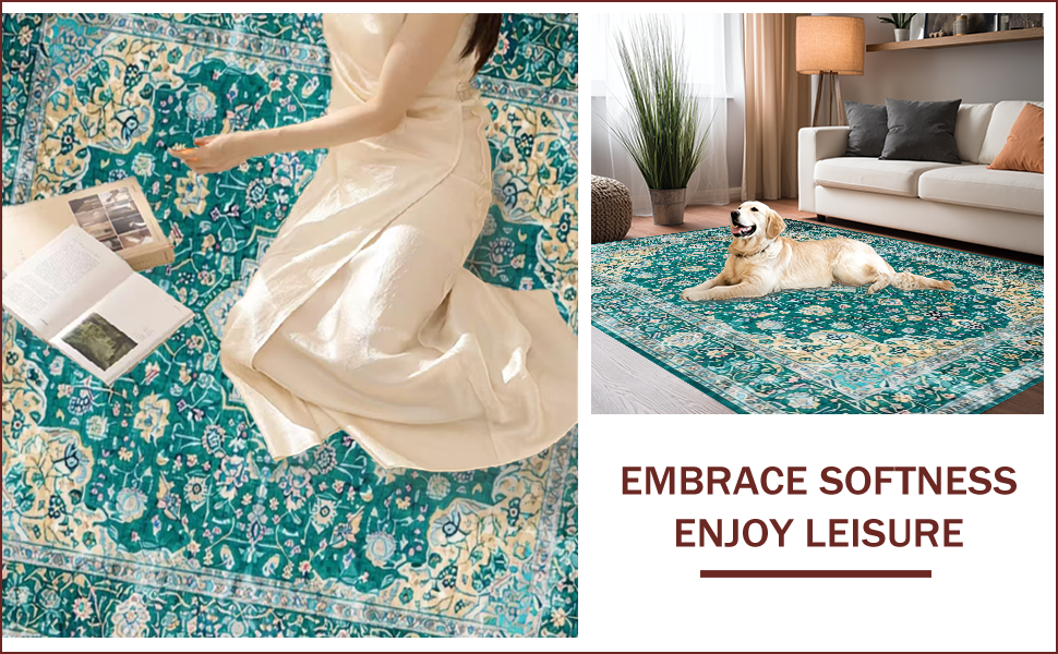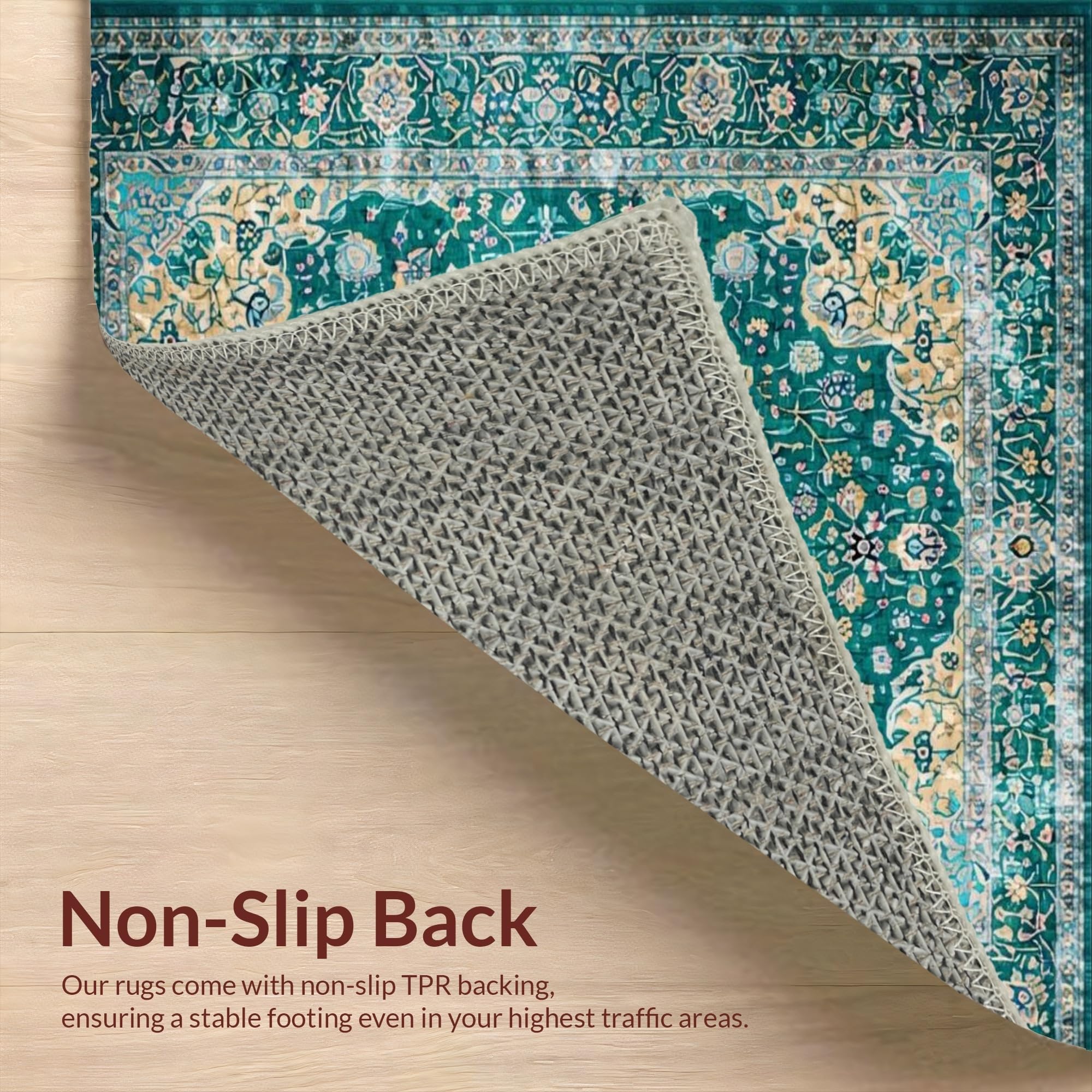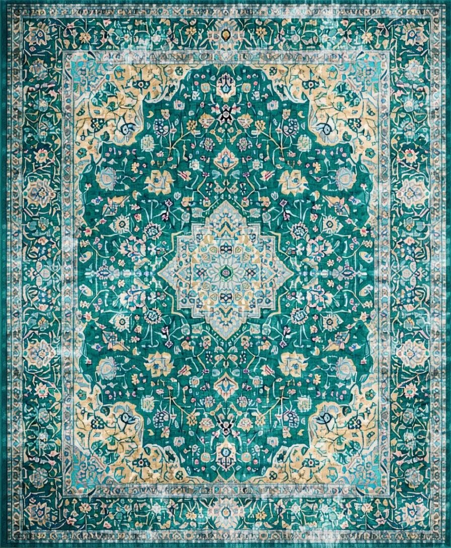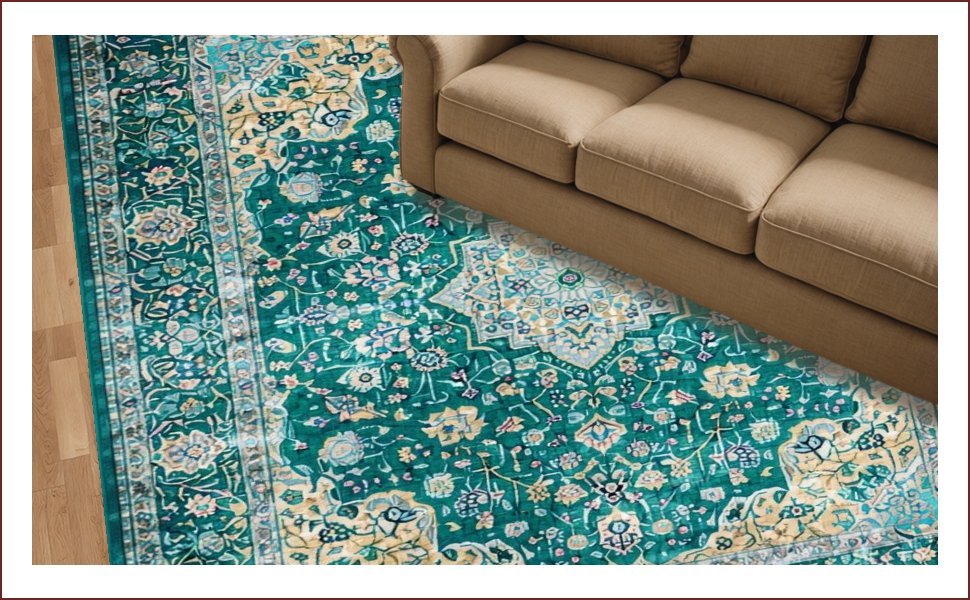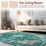 Ultra Soft Area Rug, Non Slip, Stain Resistant, Washable Area Rugs for Living Room, Bedroom, Vintage Teal Floral Medallion(Blue) Overview: