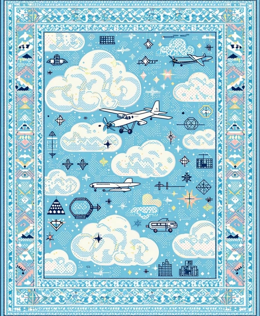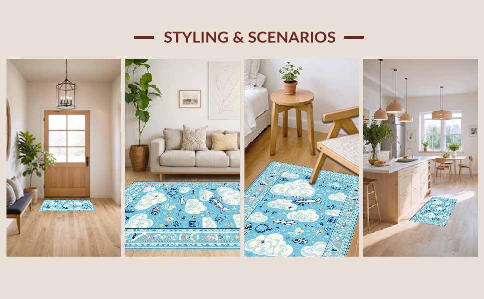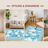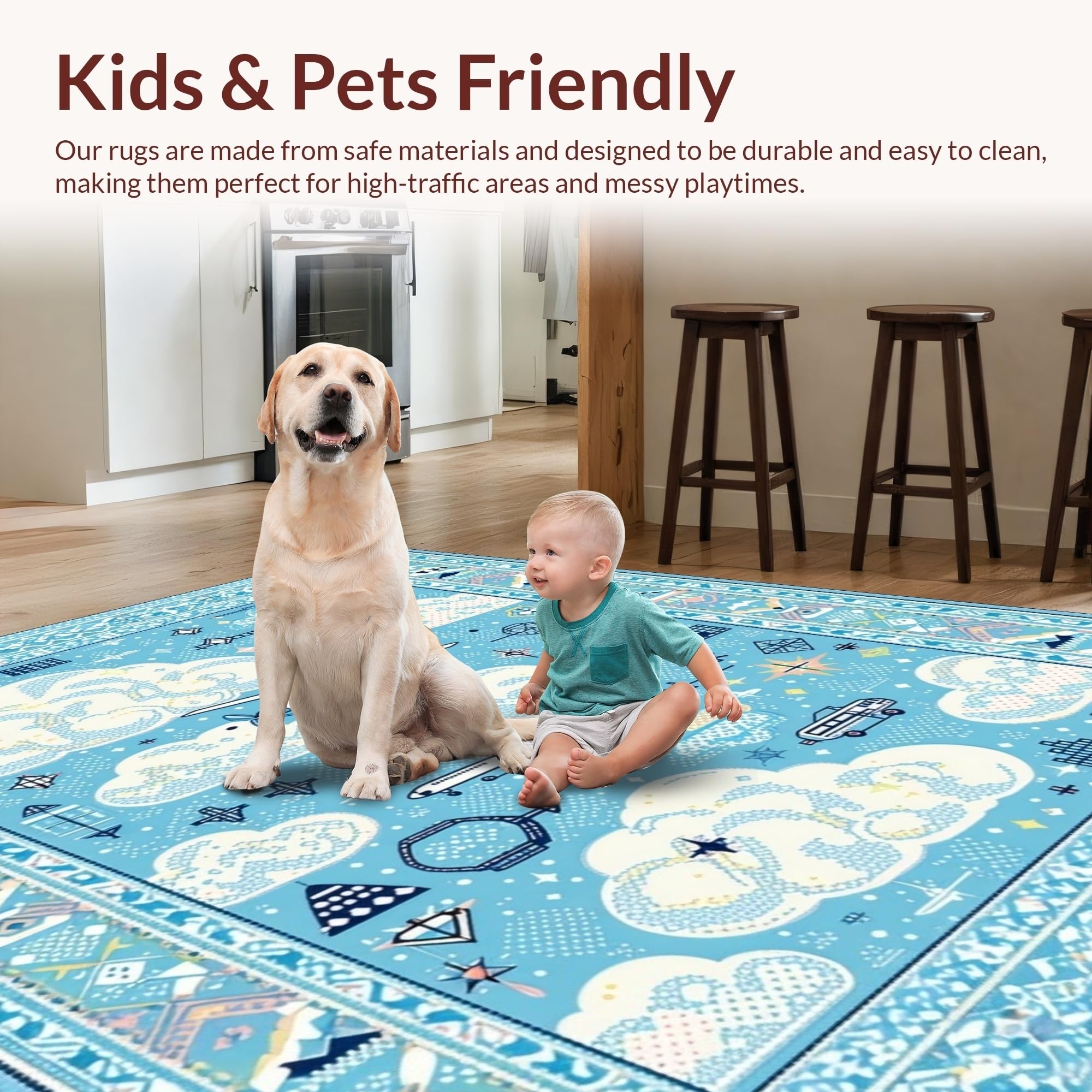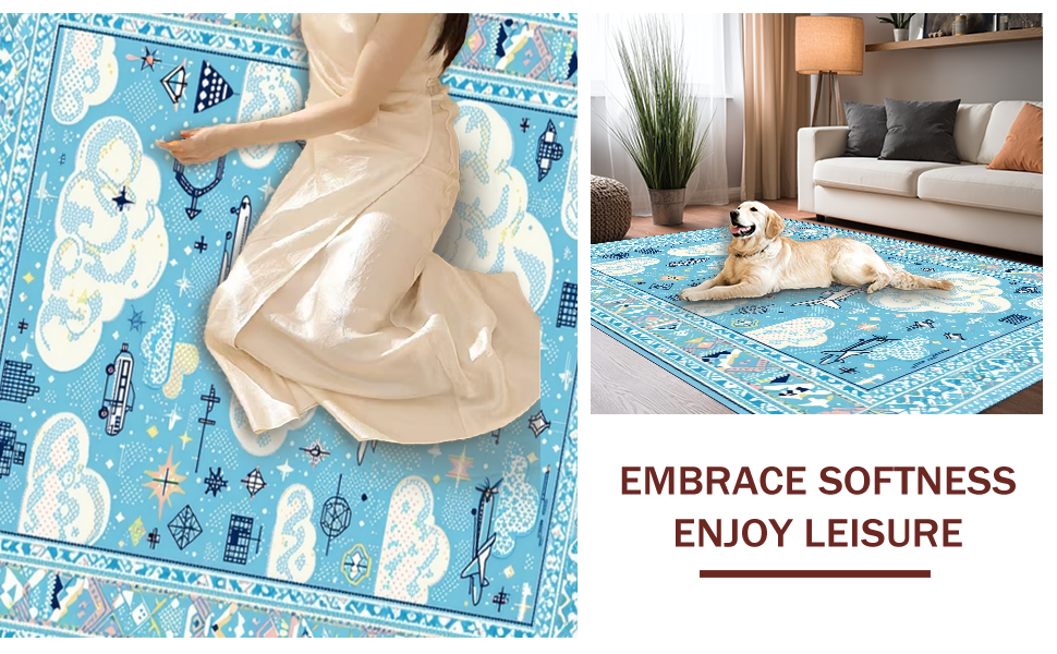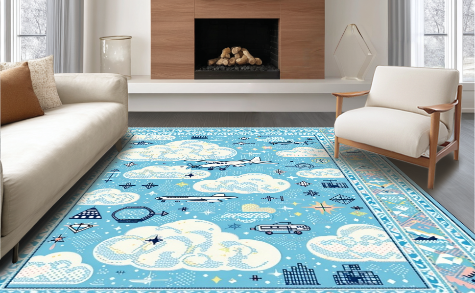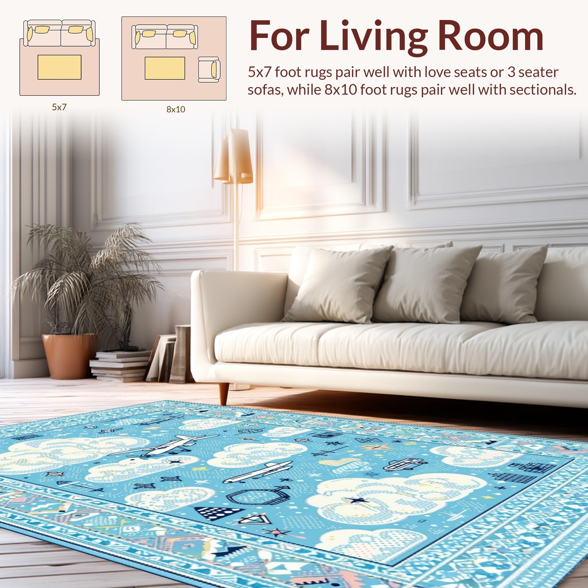 Ultra Soft Area Rug, Non Slip, Stain Resistant, Washable Area Rugs for Living Room, Bedroom, Vintage Whimsical Airplane Fantasy(Blue) Overview: