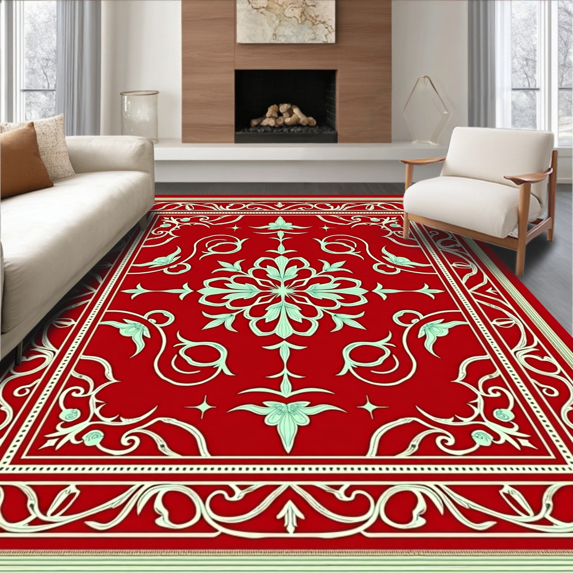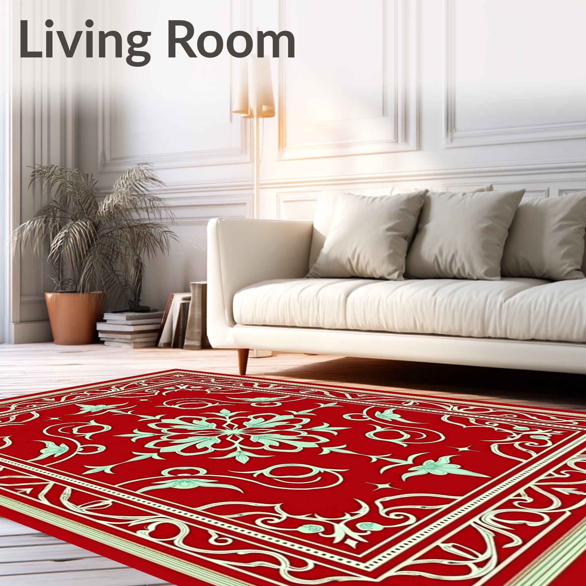 Ultra Soft Area Rug, Non Slip, Stain Resistant, Washable Area Rugs for Living Room, Bedroom, Vintage Winter Botanical Medallion Accent Floral(Red) Overview: