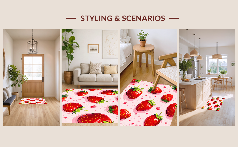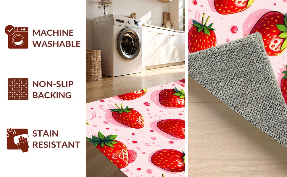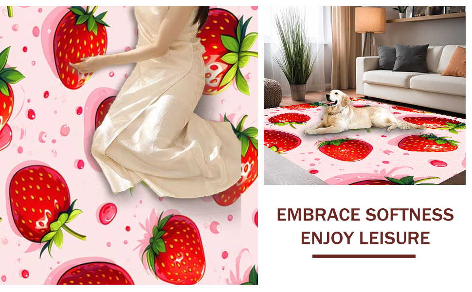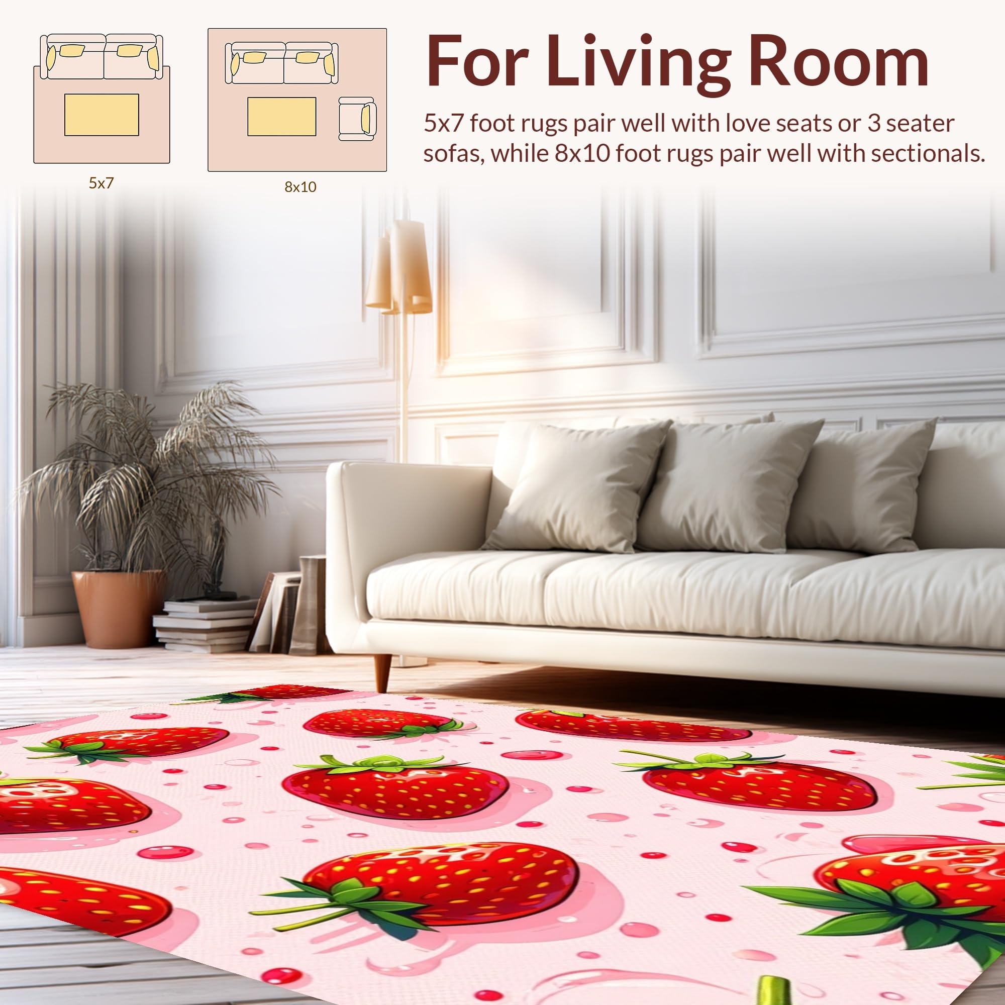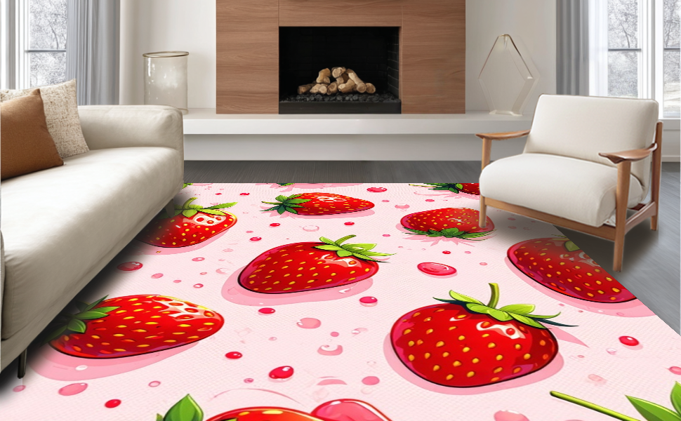 Ultra Soft Area Rug, Non Slip, Stain Resistant, Washable Area Rugs for Living Room, Bedroom, Vivid Cute Fruit Decor Piece(Pink) Overview: