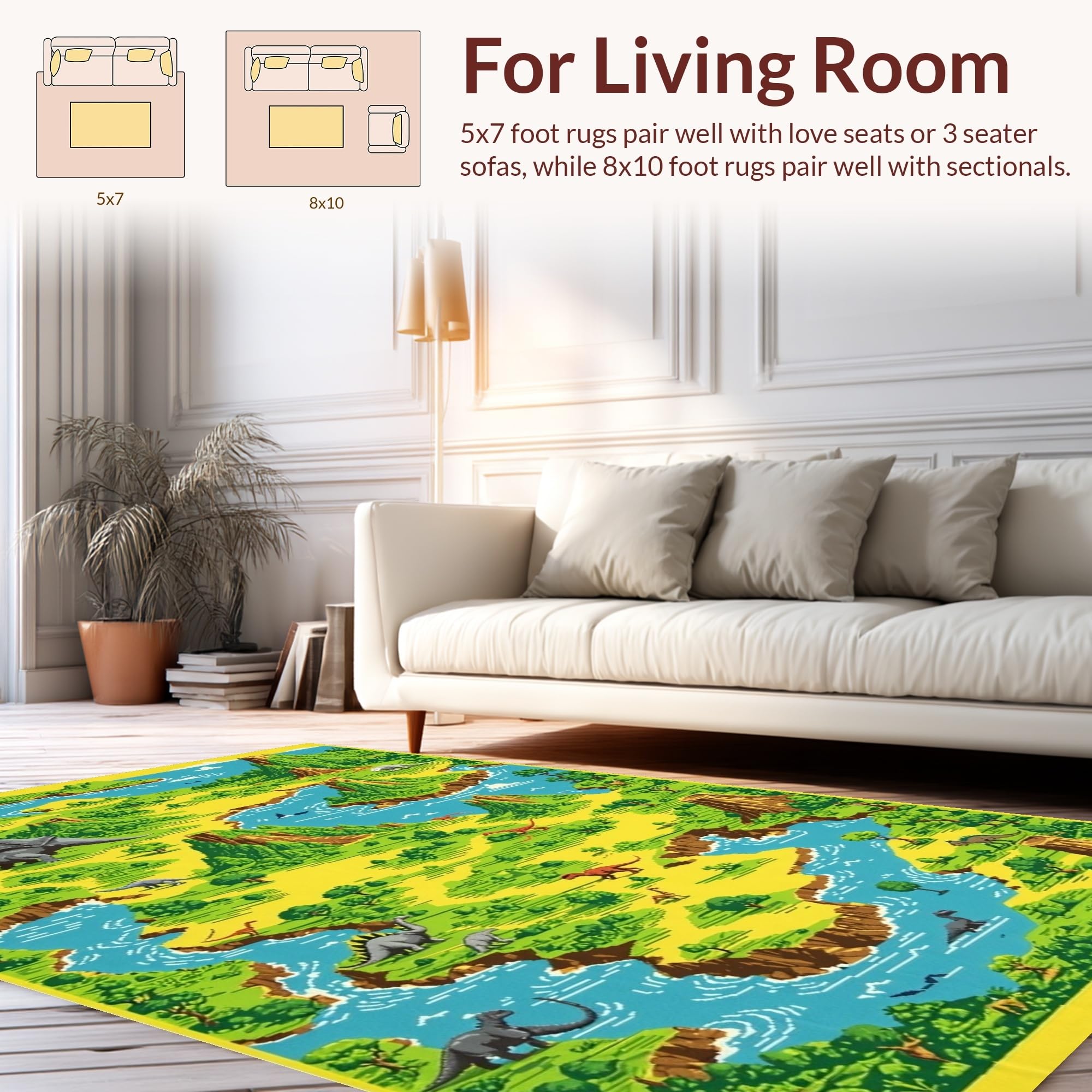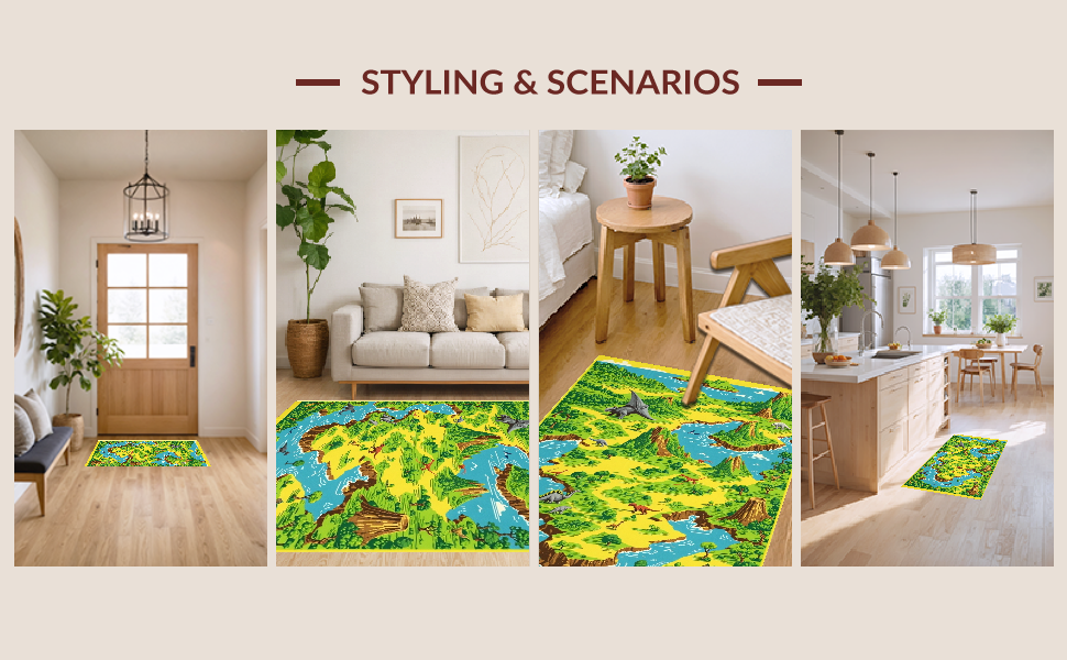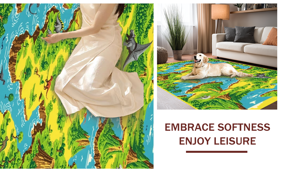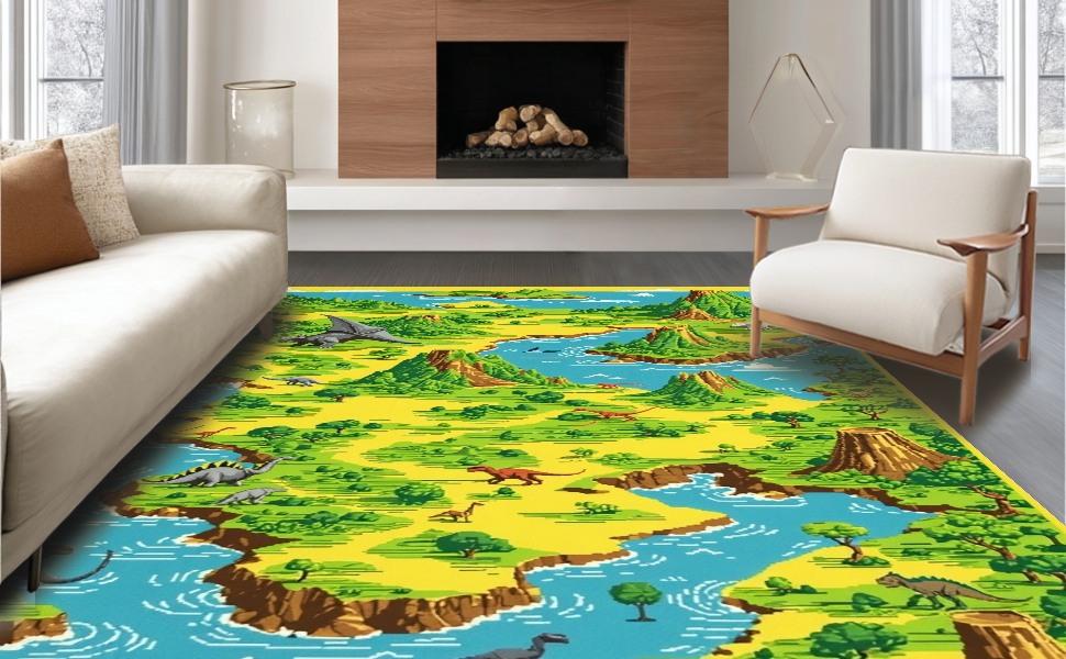 Ultra Soft Area Rug, Non Slip, Stain Resistant, Washable Area Rugs for Living Room, Bedroom, Vivid Dino Trail Imagination Canvas(Green) Overview: