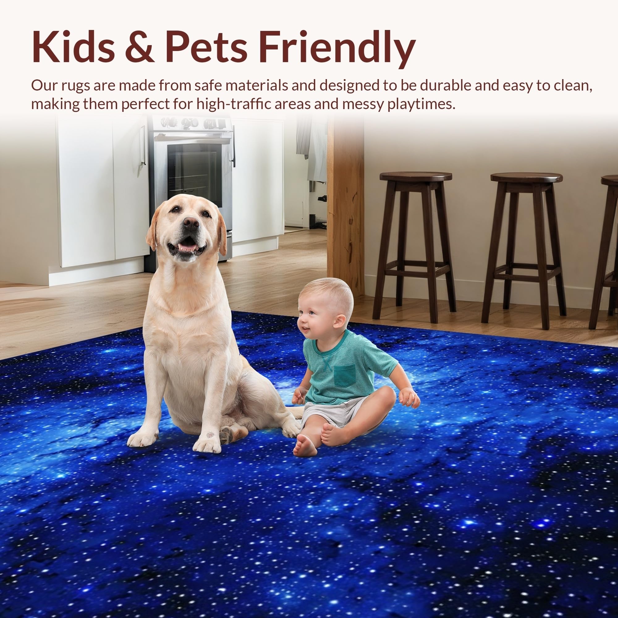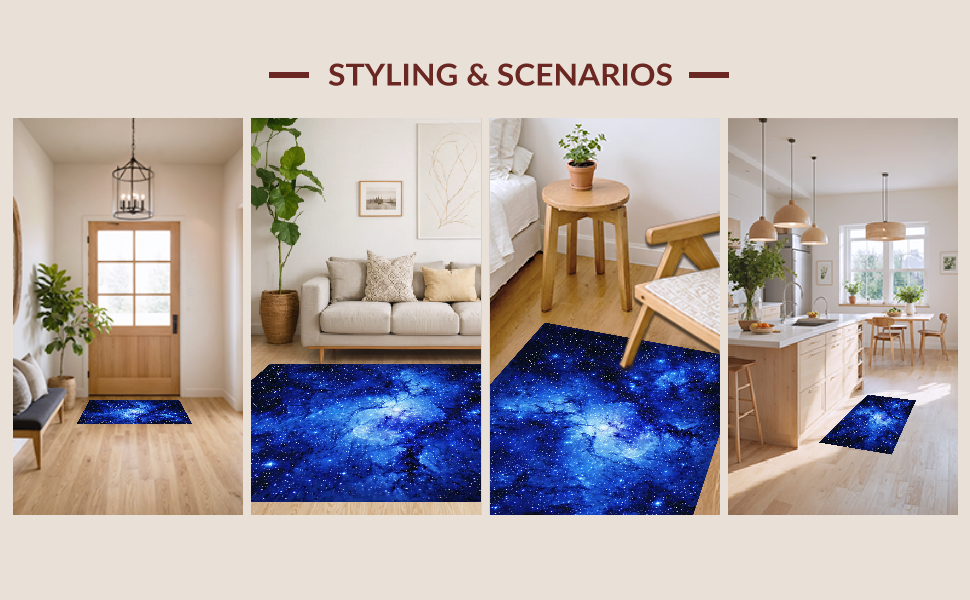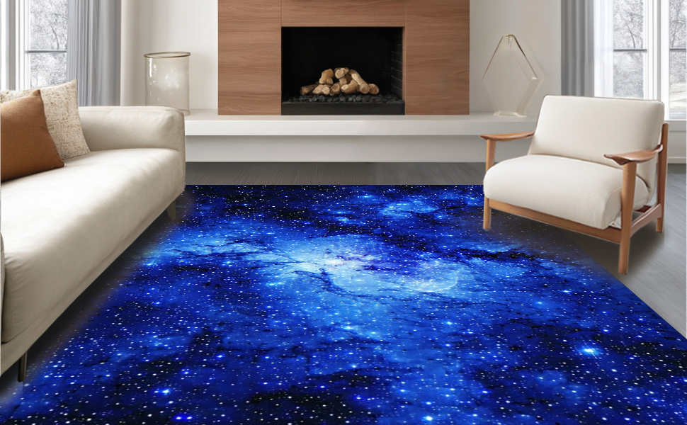 Ultra Soft Area Rug, Non Slip, Stain Resistant, Washable Area Rugs for Living Room, Bedroom, Vivid Dreamy Night Sky Pattern(Blue) Overview: