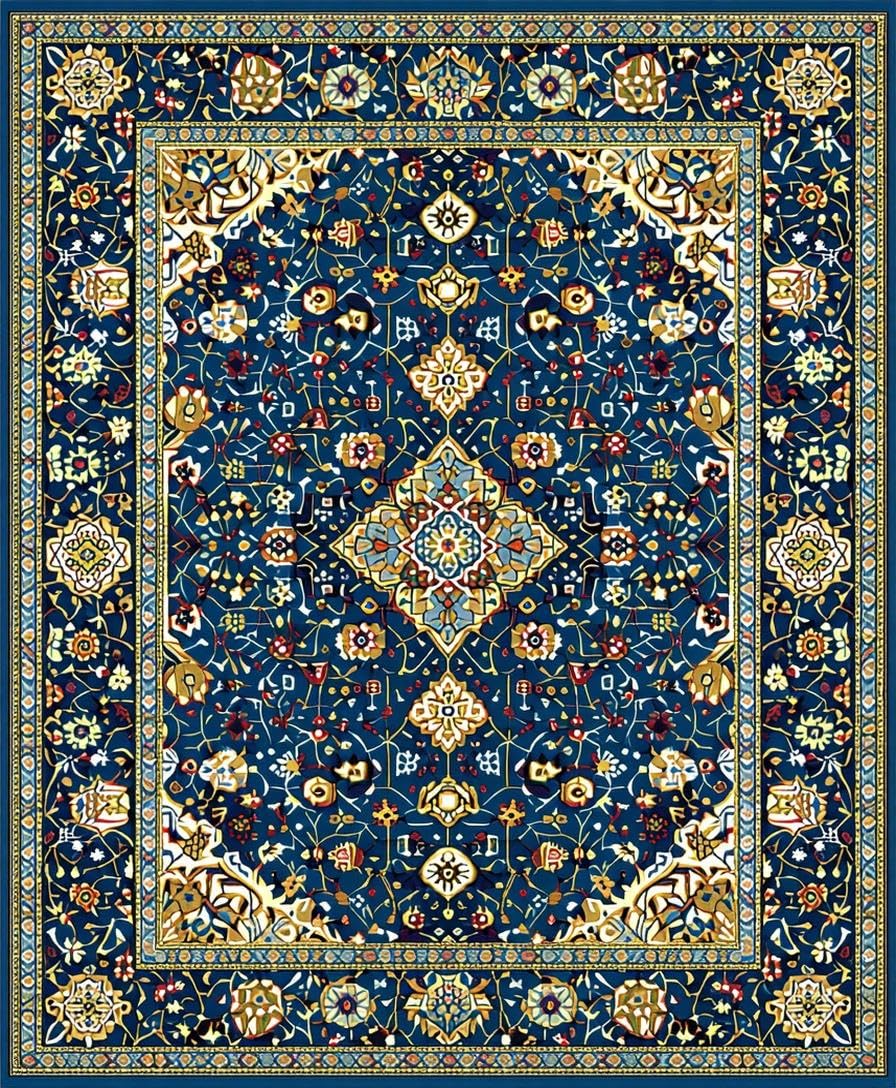 Ultra Soft Area Rug, Non Slip, Stain Resistant, Washable Area Rugs for Living Room, Bedroom, Vivid Geometric Harmony in White(Blue) Overview: