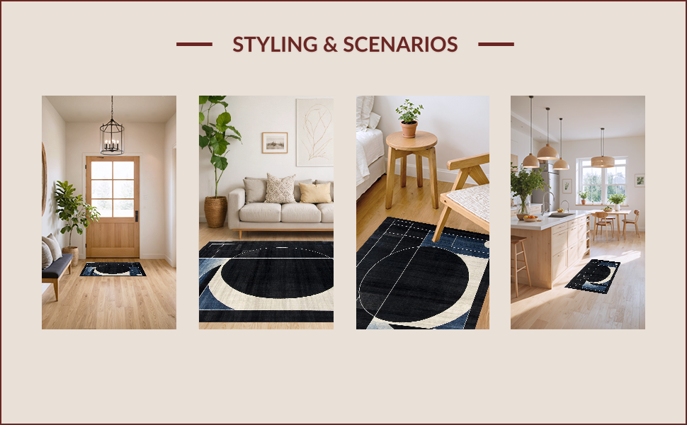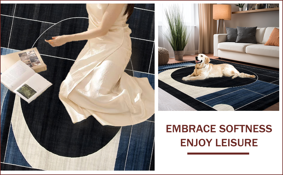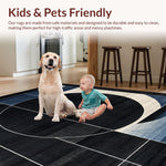 Ultra Soft Area Rug, Non Slip, Stain Resistant, Washable Area Rugs for Living Room, Bedroom, Vivid Multicolor Contemporary Motif(Black) Overview: