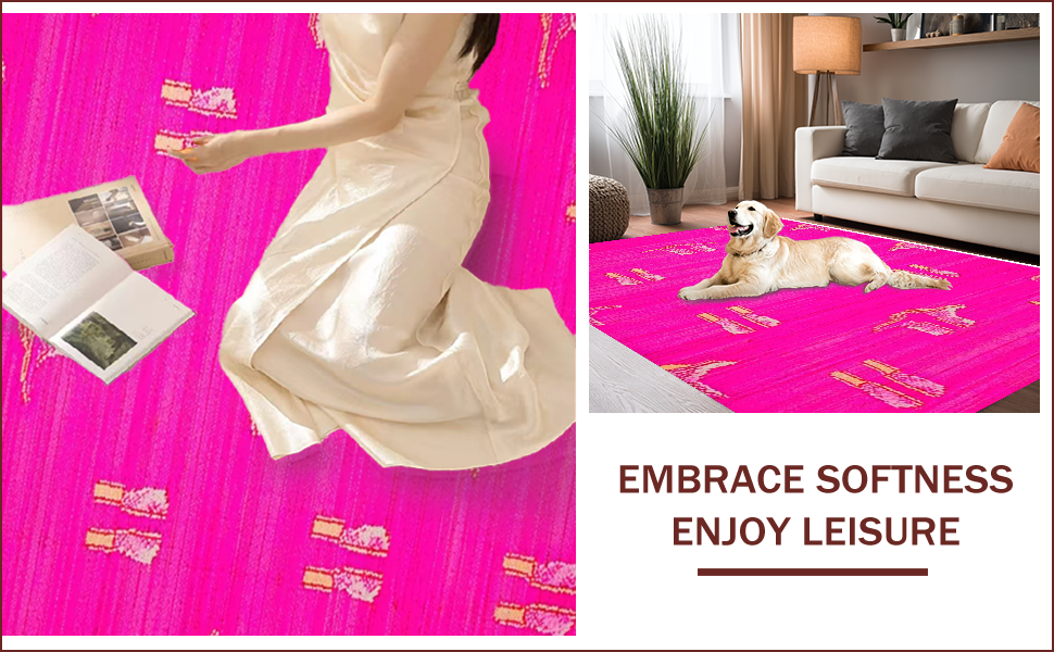 Ultra Soft Area Rug, Non Slip, Stain Resistant, Washable Area Rugs for Living Room, Bedroom, Vivid Preppy Graphic Delight(Pink) Overview: