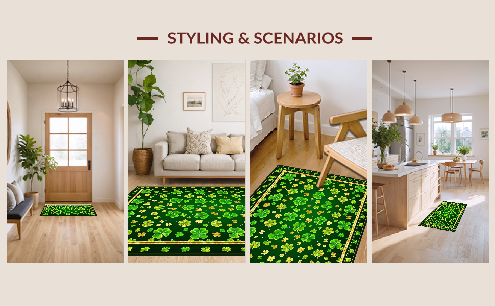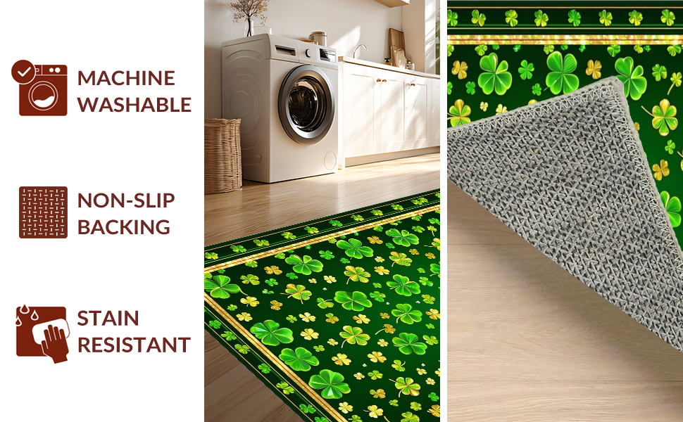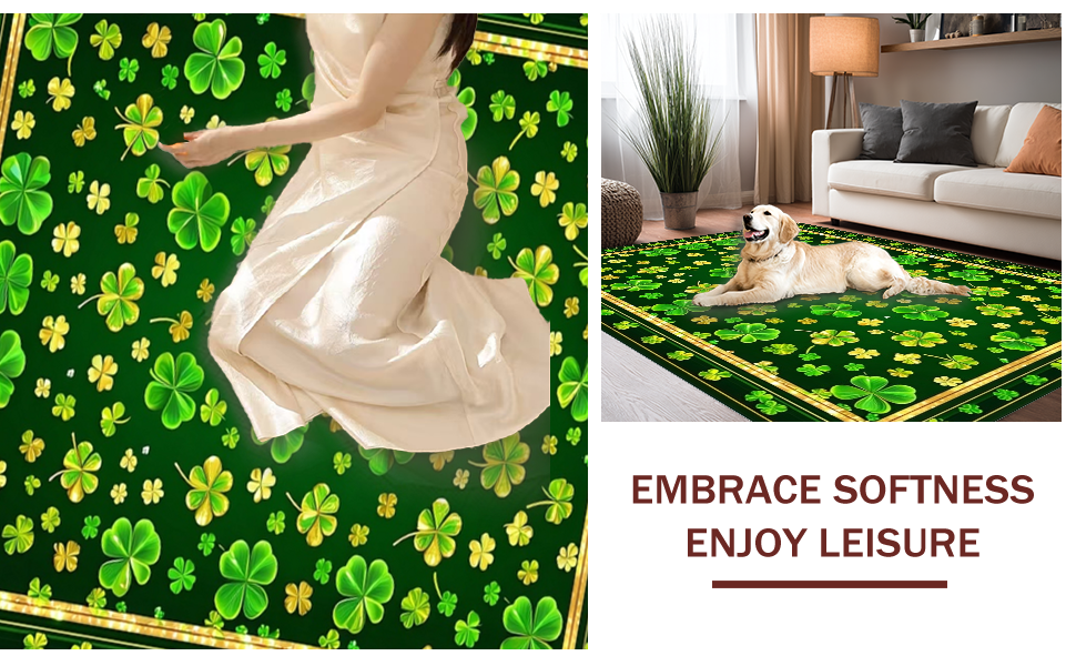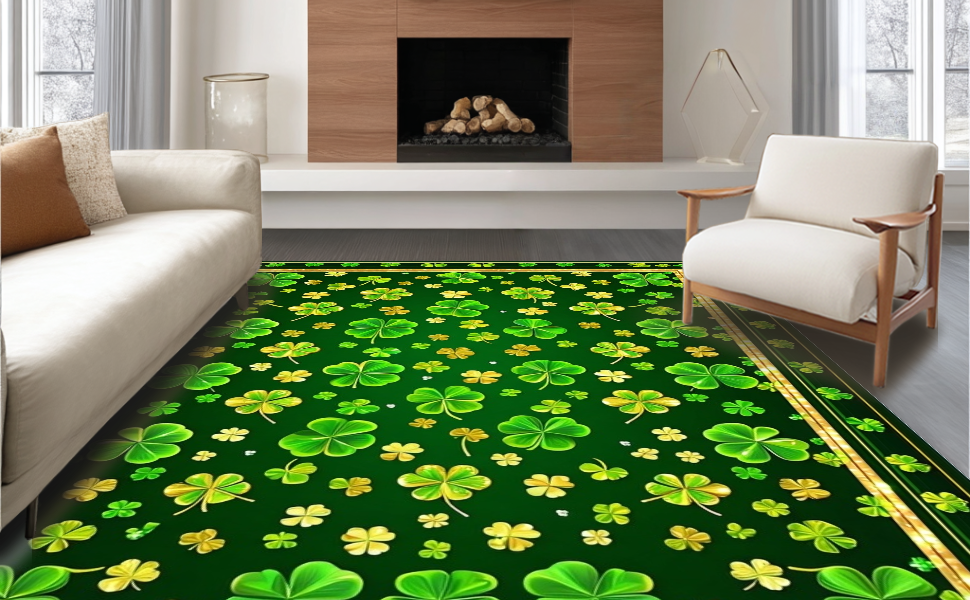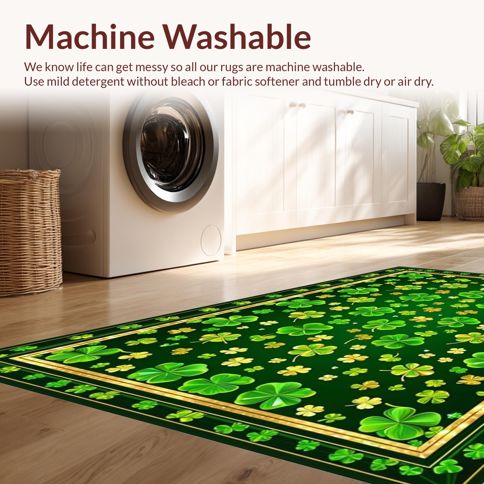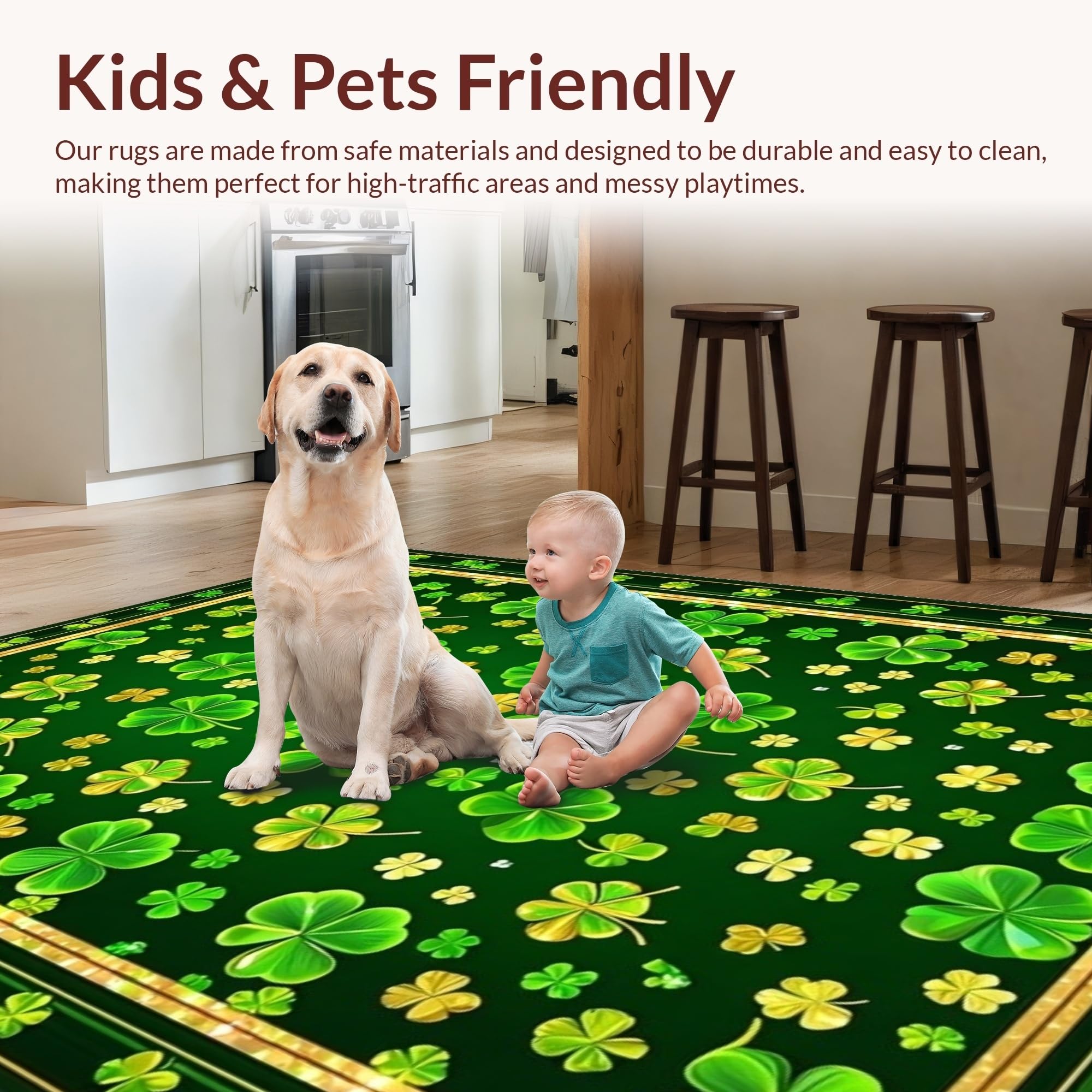 Ultra Soft Area Rug, Non Slip, Stain Resistant, Washable Area Rugs for Living Room, Bedroom, Vivid Rainbow Pot of Gold Design(Green) Overview: