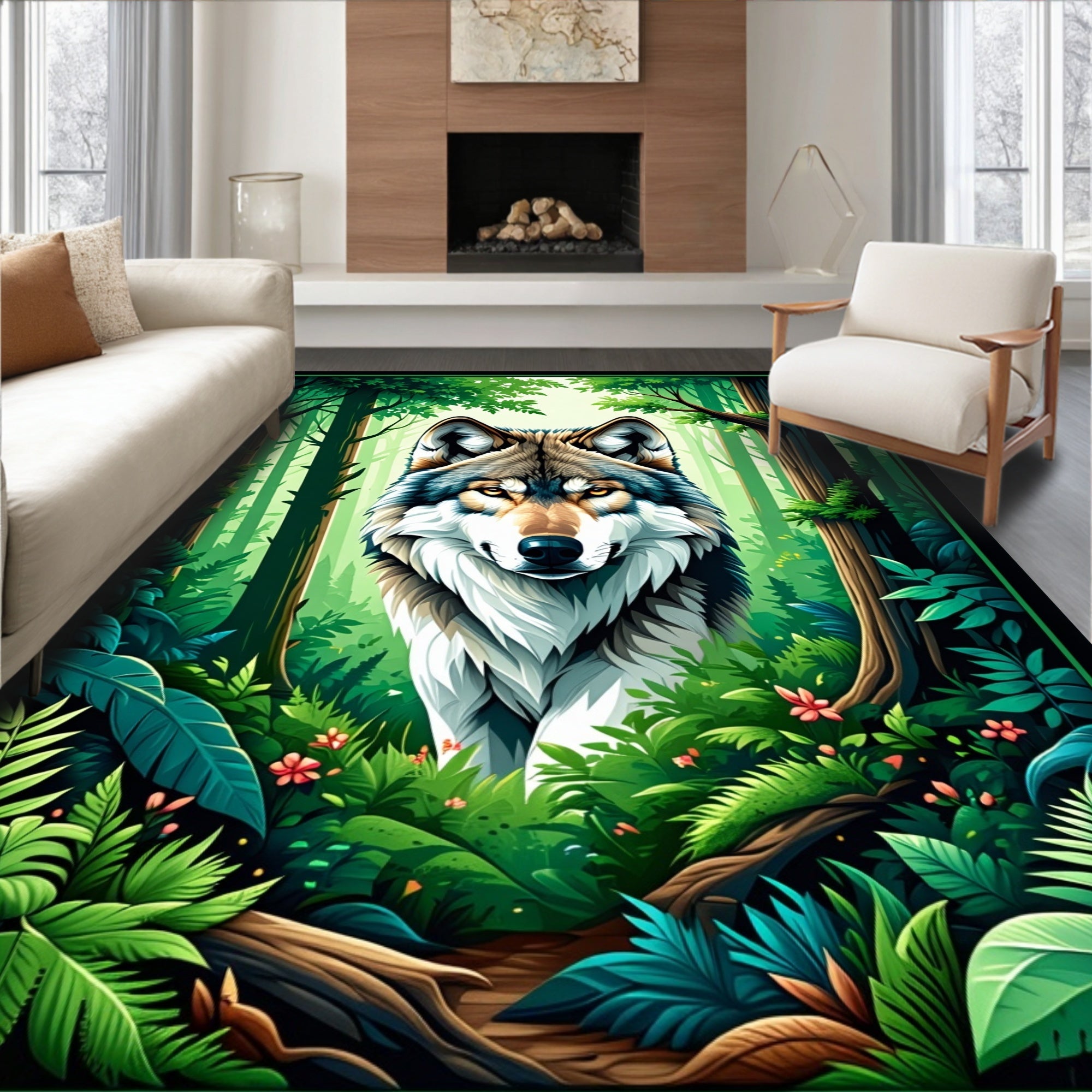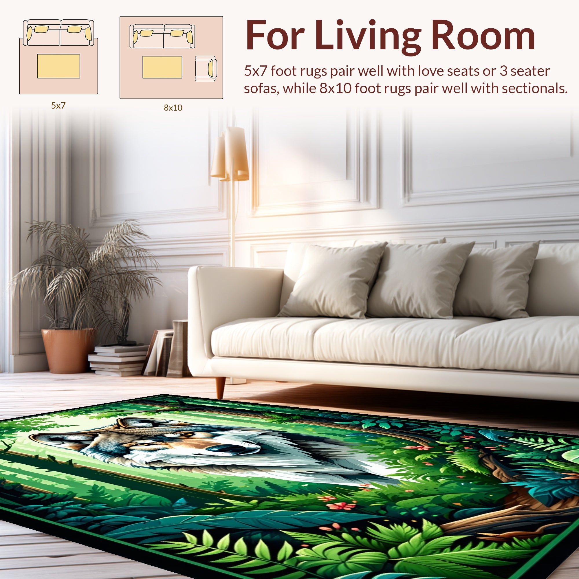 Flatwoven High Traffic Area Rug, Vivid Rustic Forest Aesthetic, Non Slip, Stain Resistant, Washable Area Rugs for Living Room, Bedroom (Green) Overview: