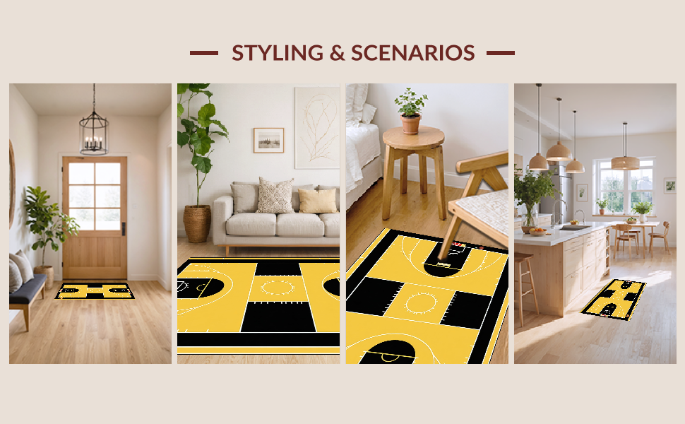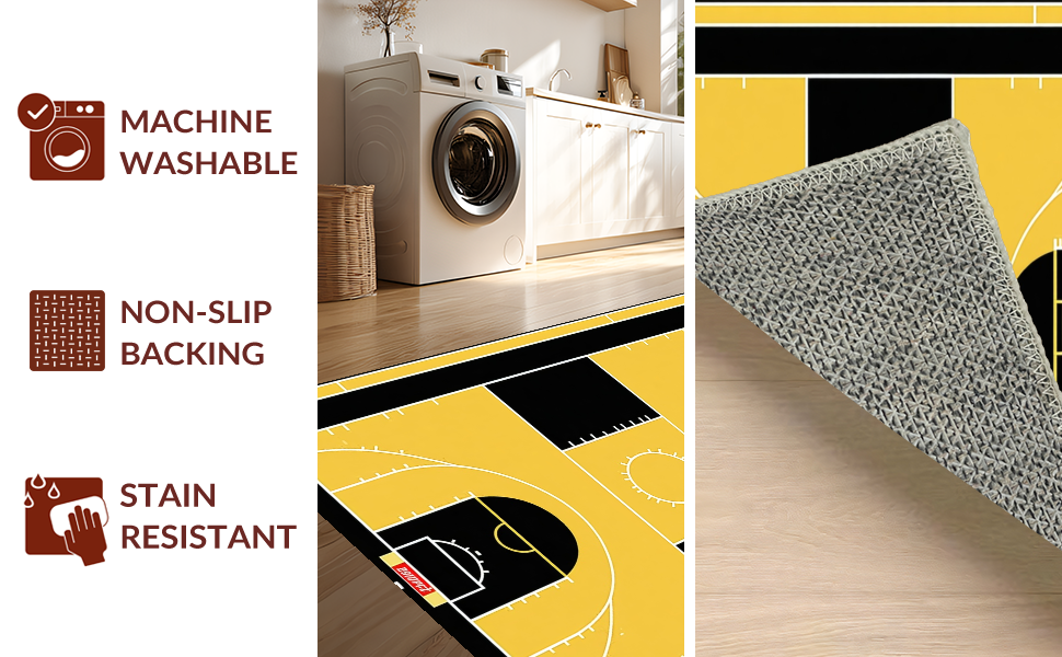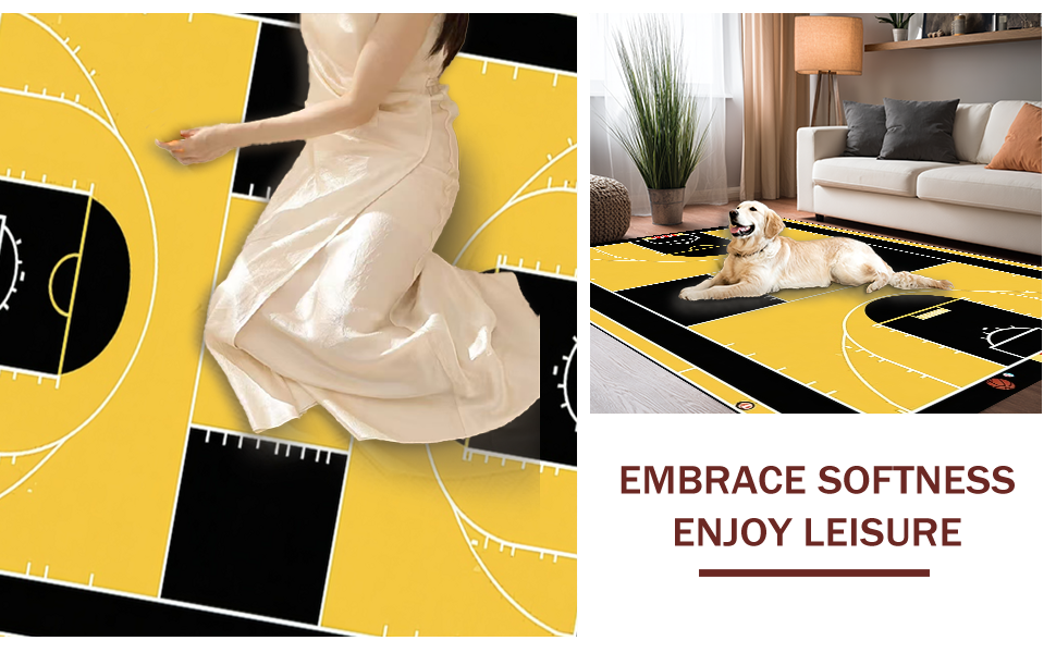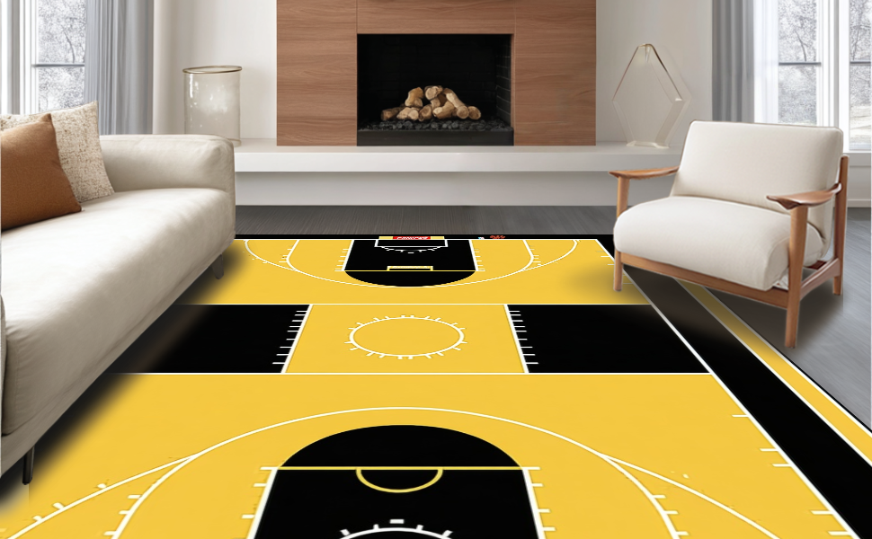 Ultra Soft Area Rug, Non Slip, Stain Resistant, Washable Area Rugs for Living Room, Bedroom, Vivid Sports Iconography Display(Black) Overview: