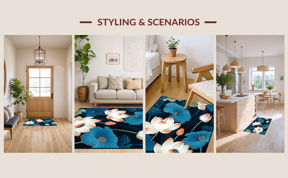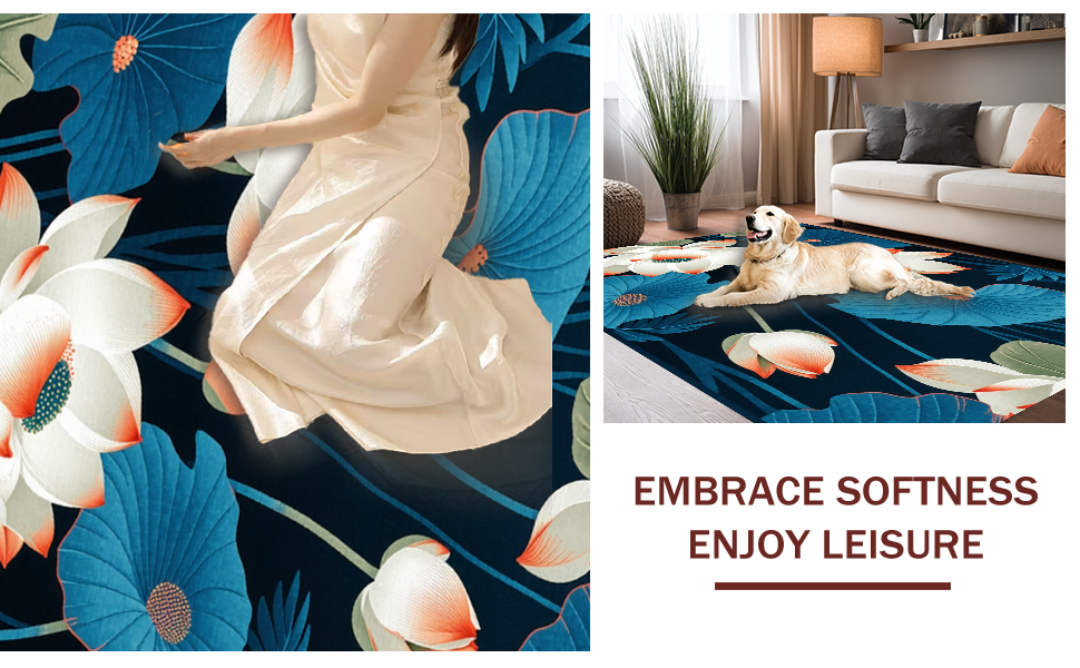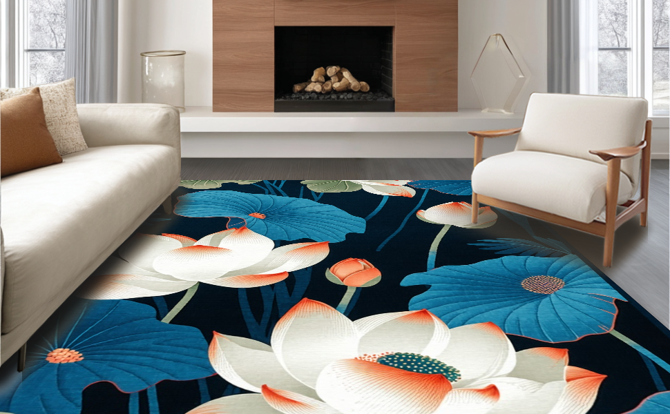 Ultra Soft Area Rug, Non Slip, Stain Resistant, Washable Area Rugs for Living Room, Bedroom, Vivid Tropical Oasis Style(Blue) Overview: