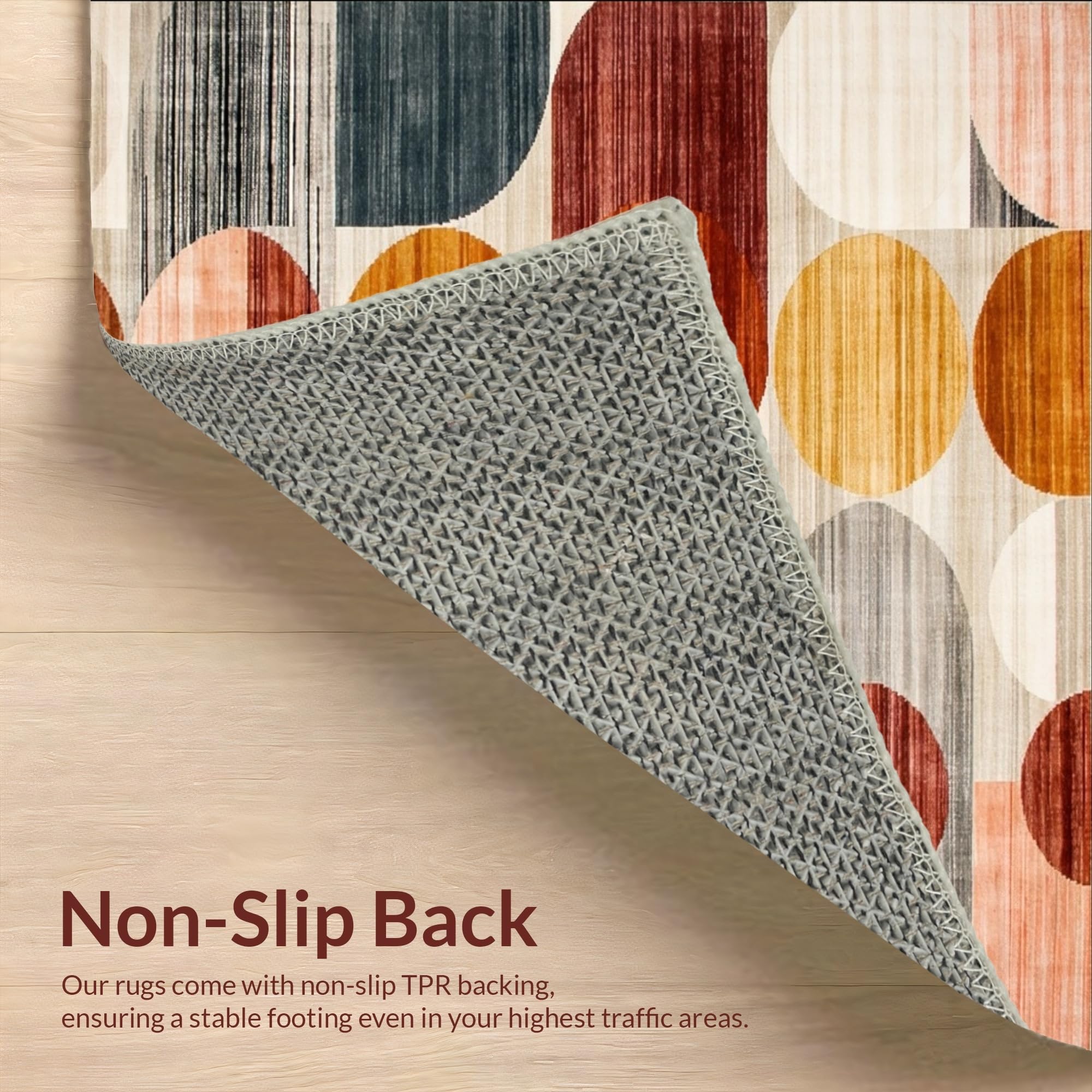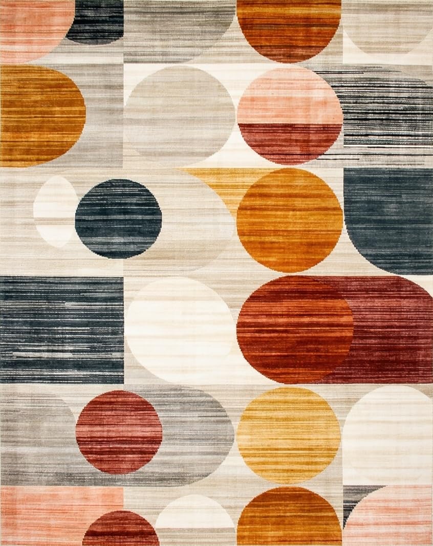 Ultra Soft Area Rug, Non Slip, Stain Resistant, Washable Area Rugs for Living Room, Bedroom, Warm Colors Abstract Circles Rustic Modern Geometry Area(Gray) Overview: