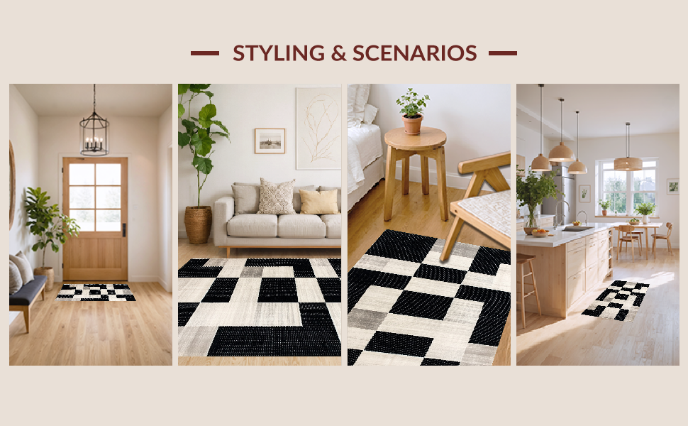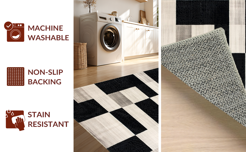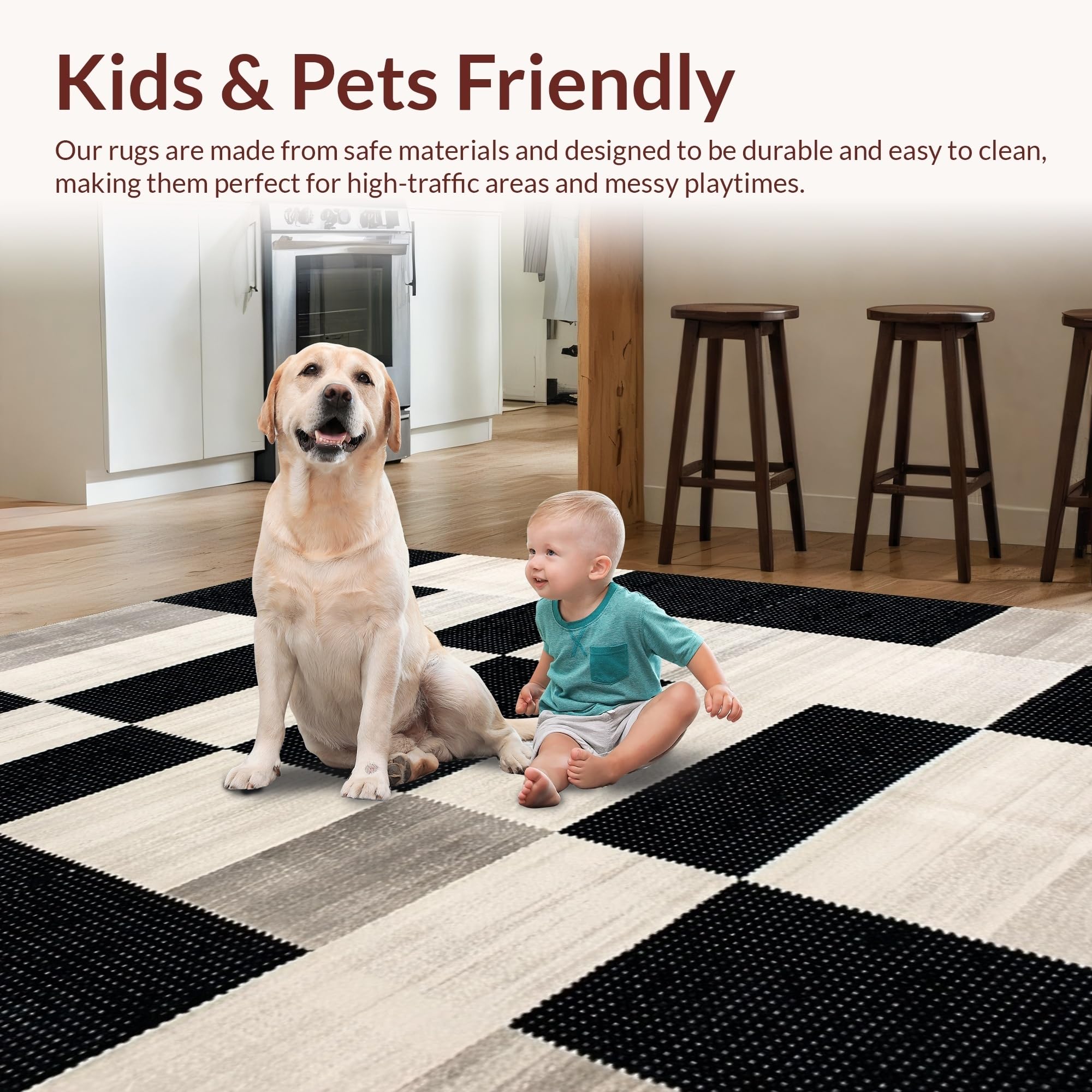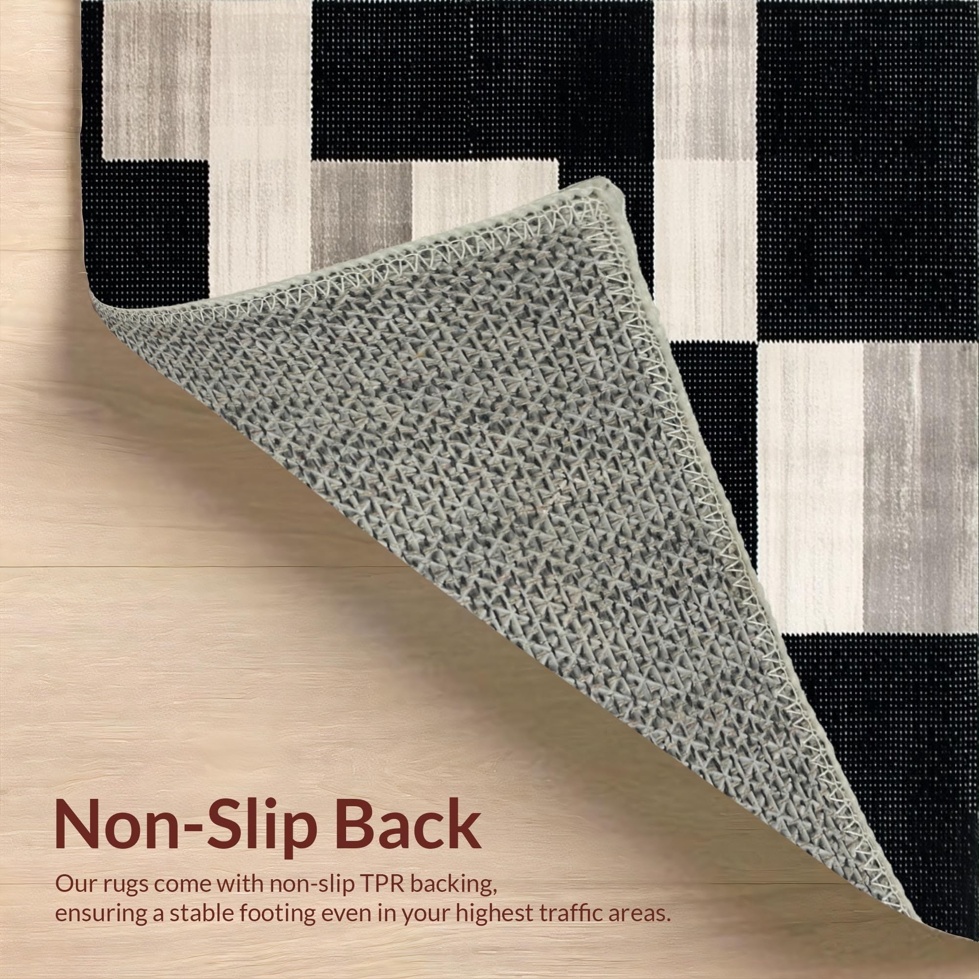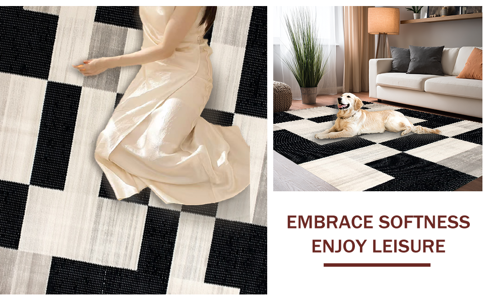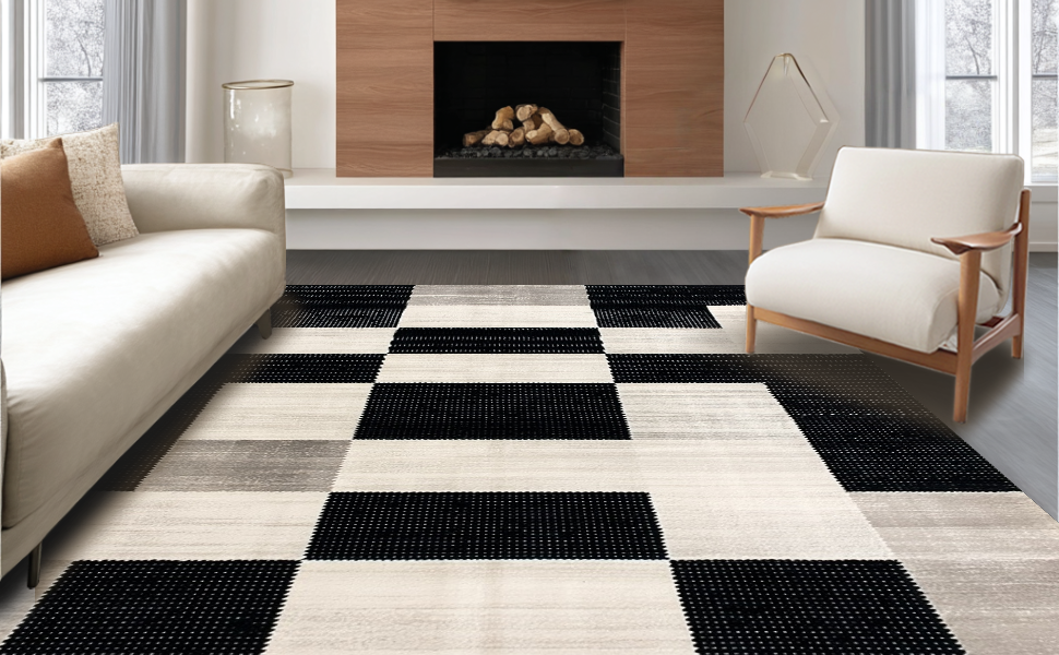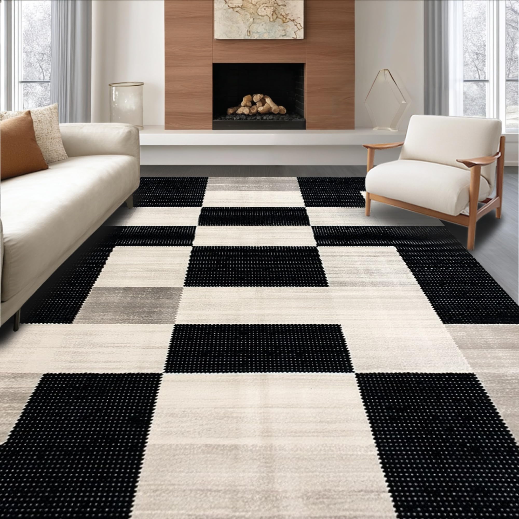 Ultra Soft Area Rug, Non Slip, Stain Resistant, Washable Area Rugs for Living Room, Bedroom, Warm Cozy Checkerboard Layout(Black) Overview: