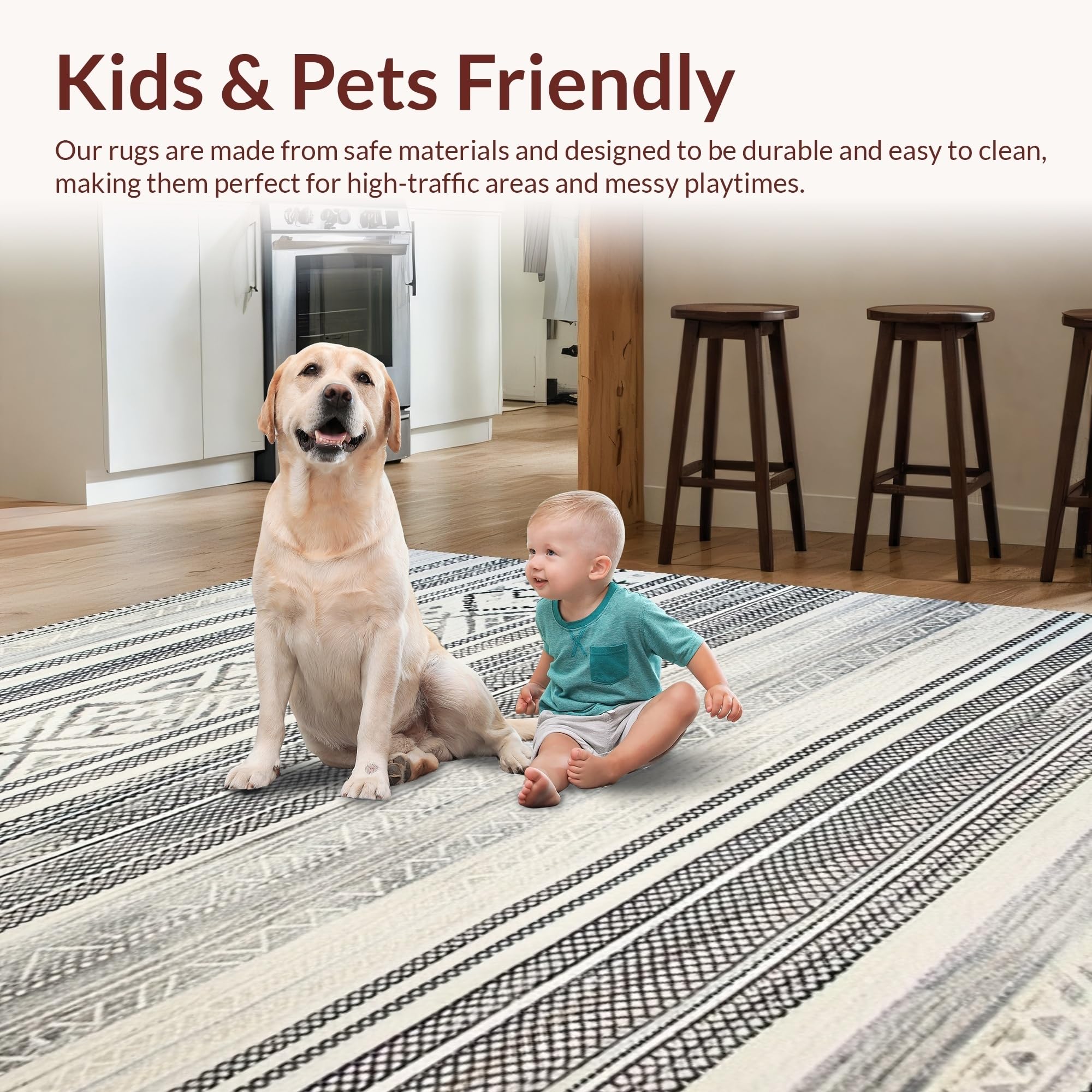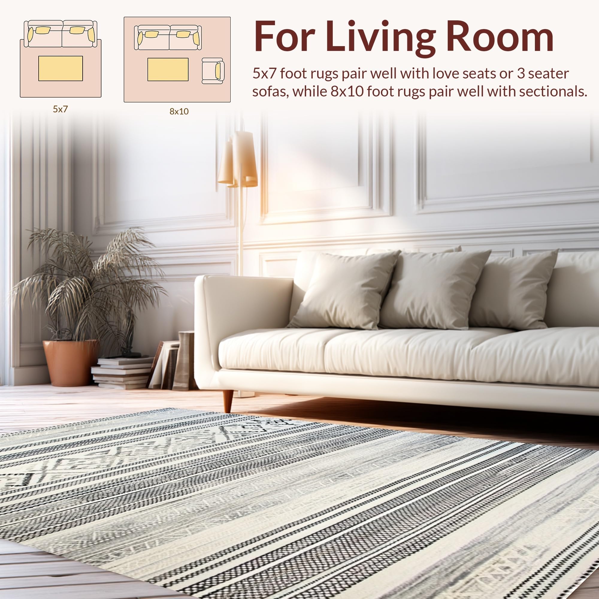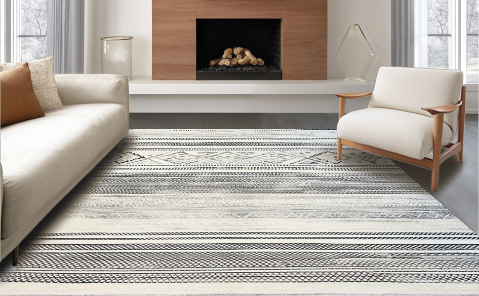 Ultra Soft Area Rug, Non Slip, Stain Resistant, Washable Area Rugs for Living Room, Bedroom, Warm Cozy Geometric Aesthetic(Black) Overview: