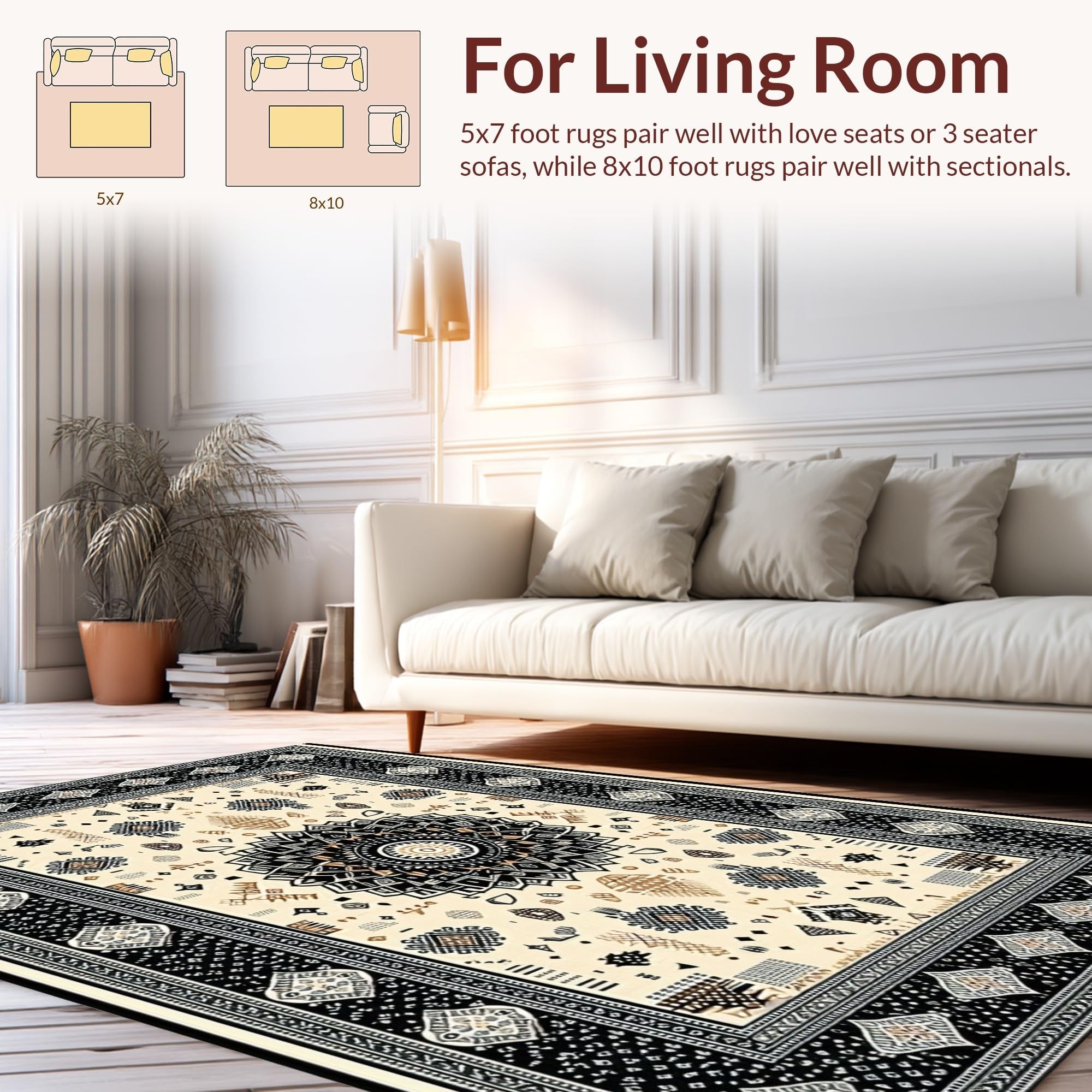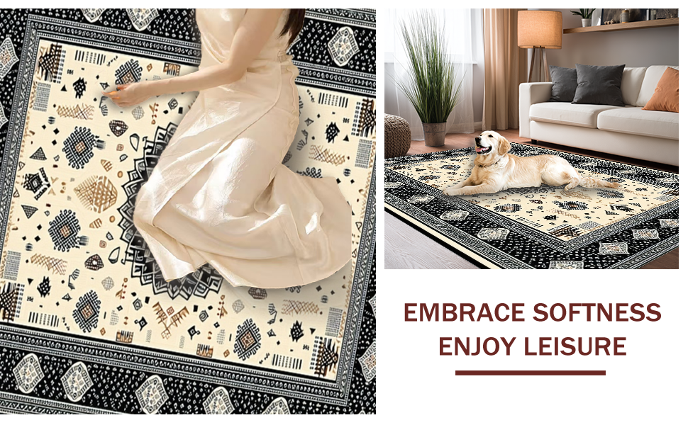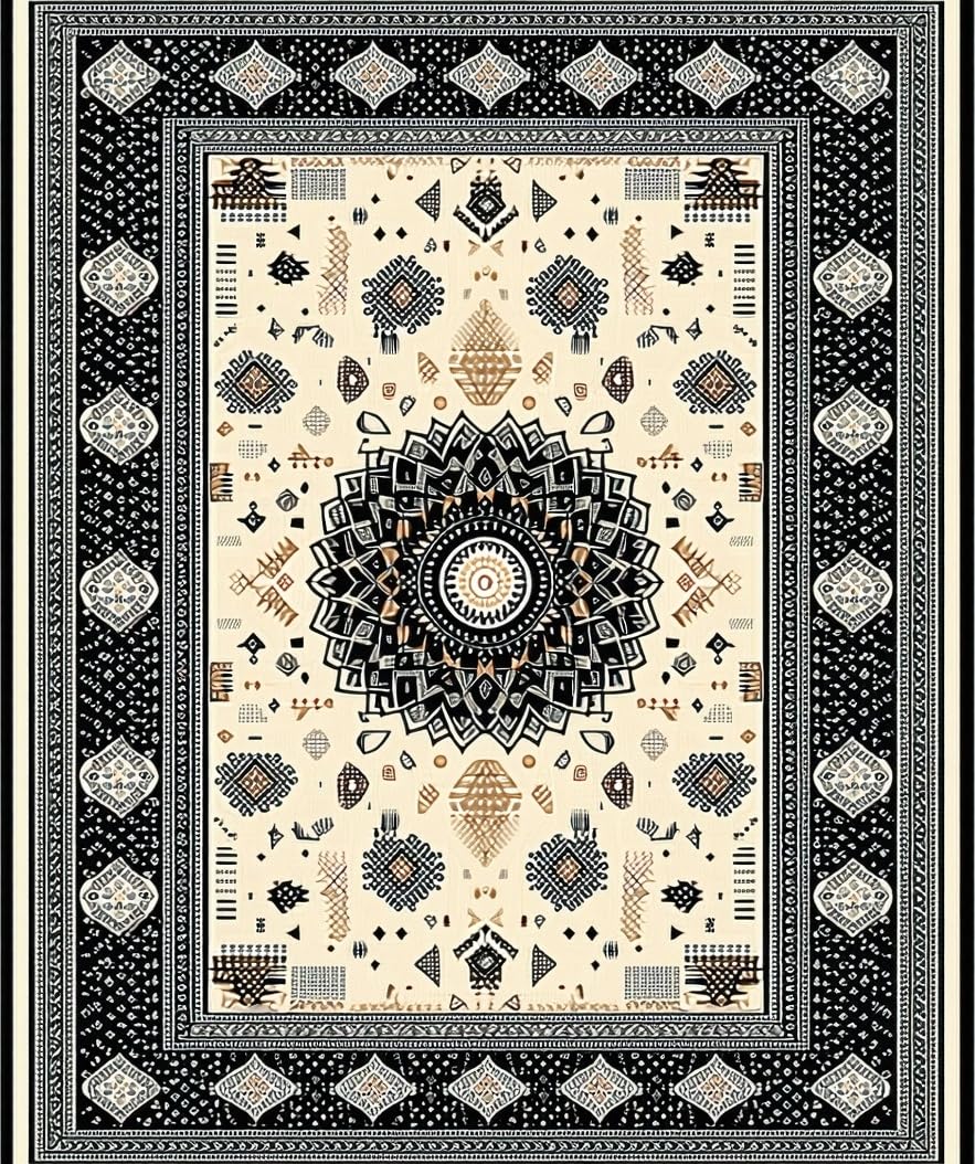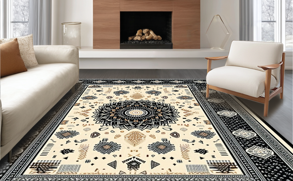 Ultra Soft Area Rug, Non Slip, Stain Resistant, Washable Area Rugs for Living Room, Bedroom, Warm Earthy Tones with Texture(Black) Overview: