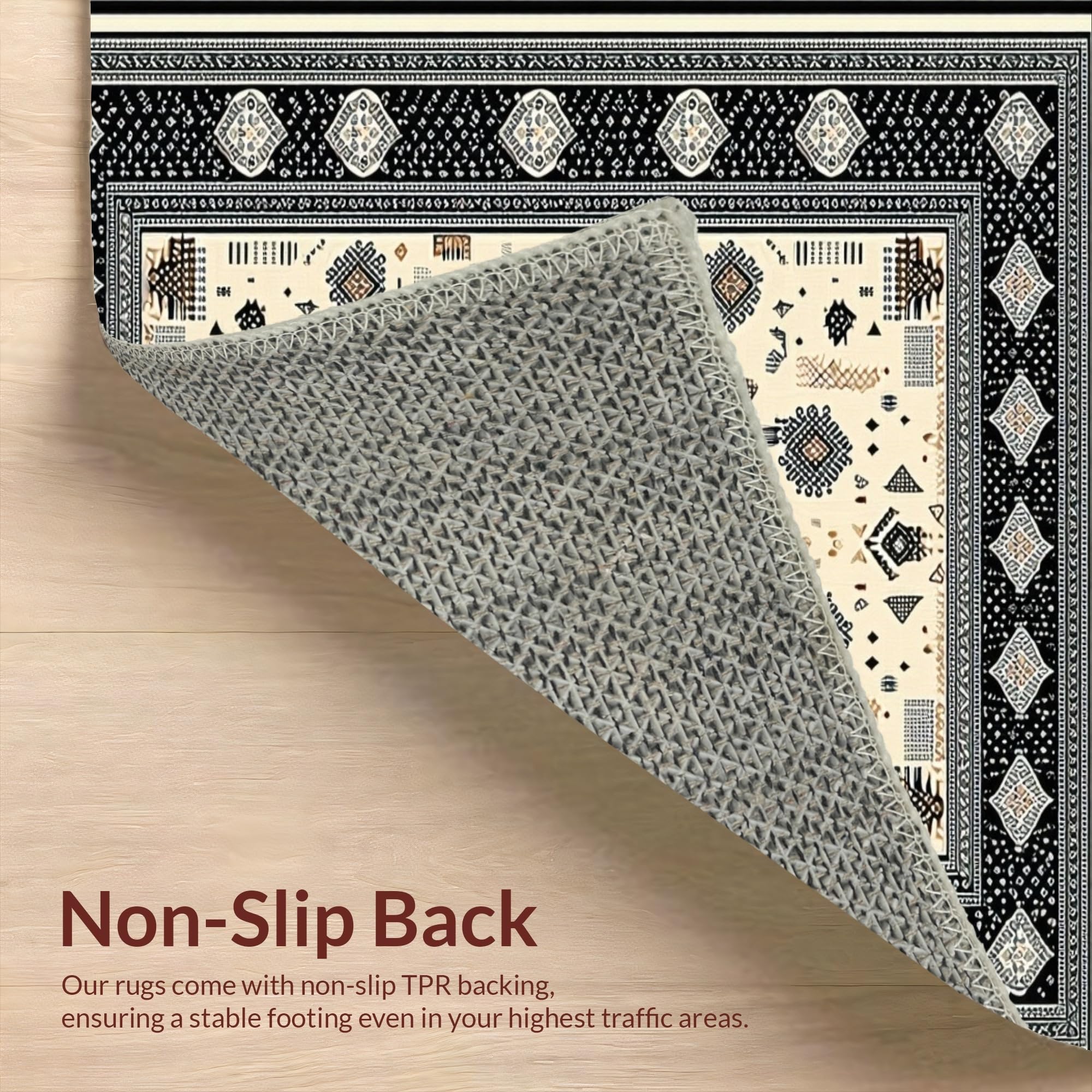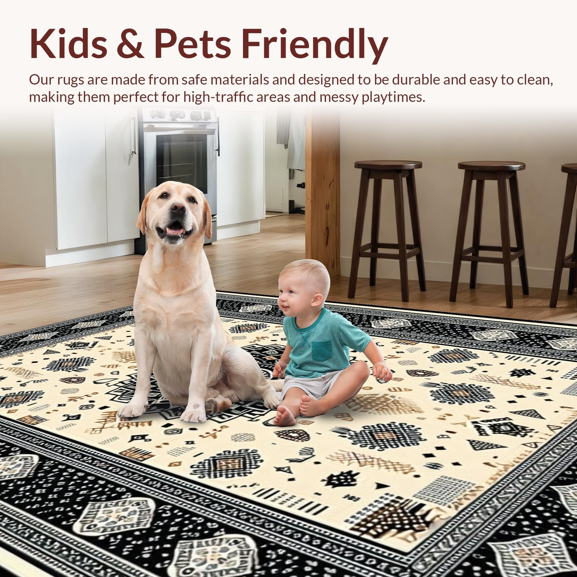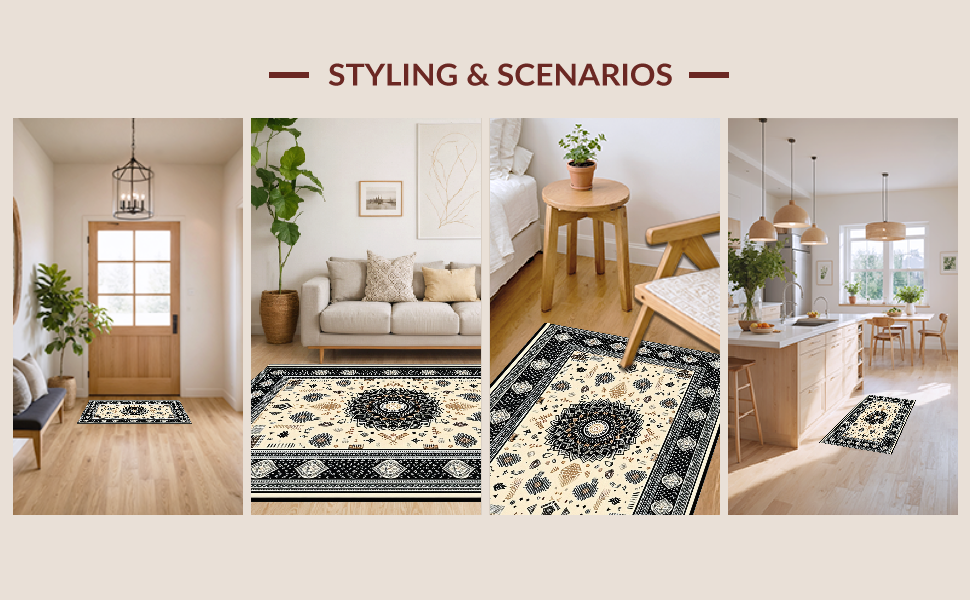 Ultra Soft Area Rug, Non Slip, Stain Resistant, Washable Area Rugs for Living Room, Bedroom, Warm Earthy Tones with Texture(Black) Overview: