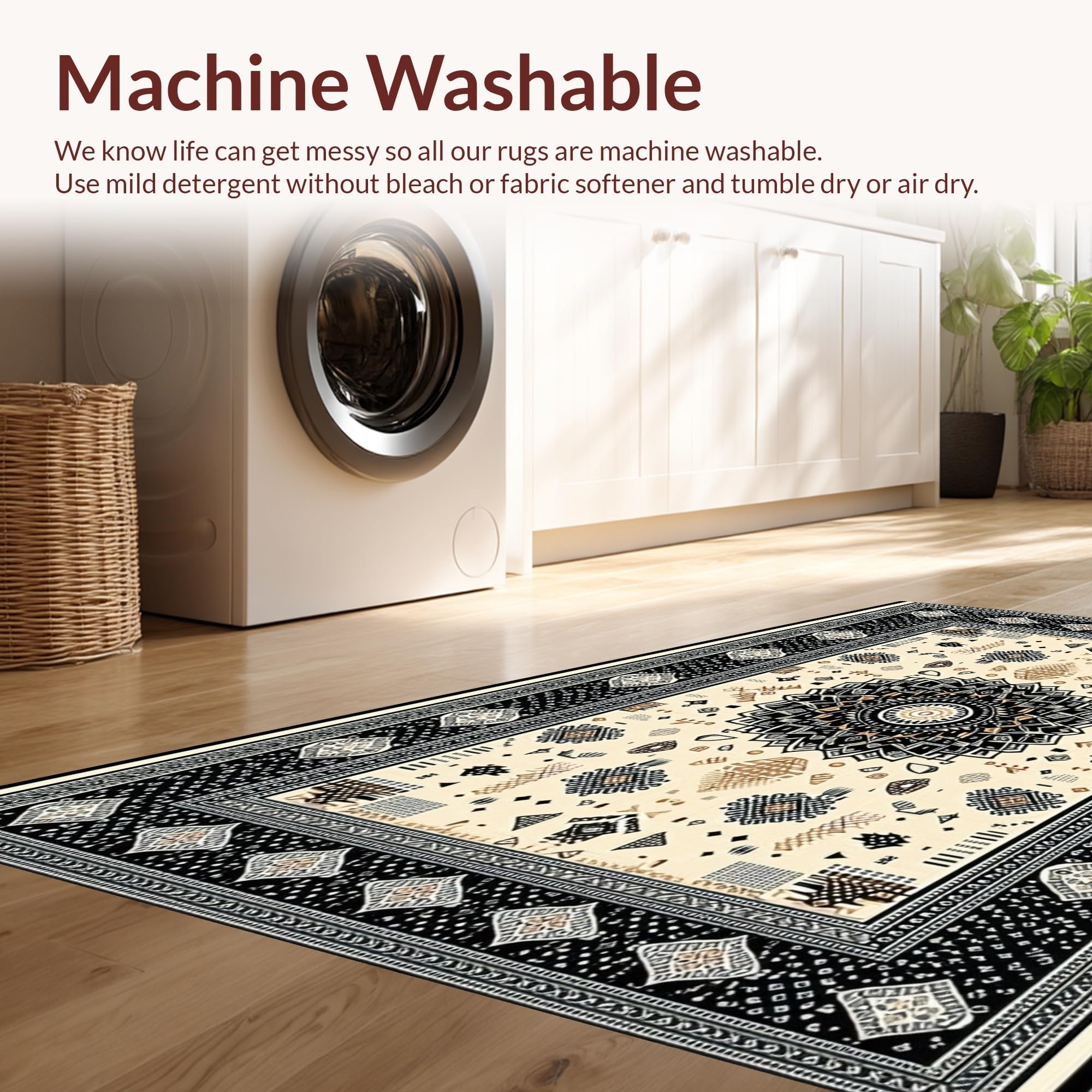 - Machine Washable: Our rugs can be easily thrown in the wash machine.