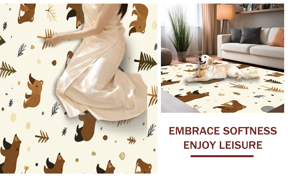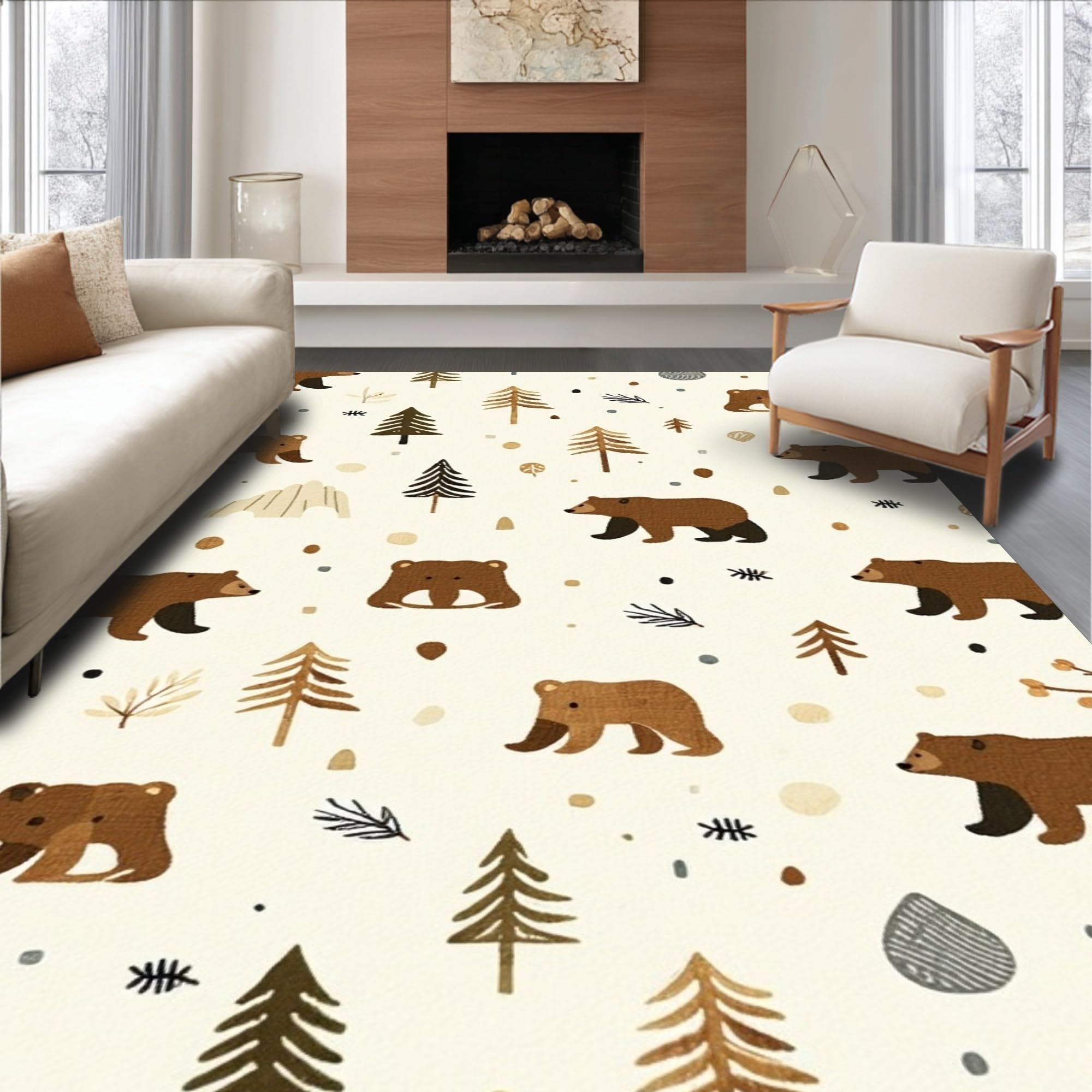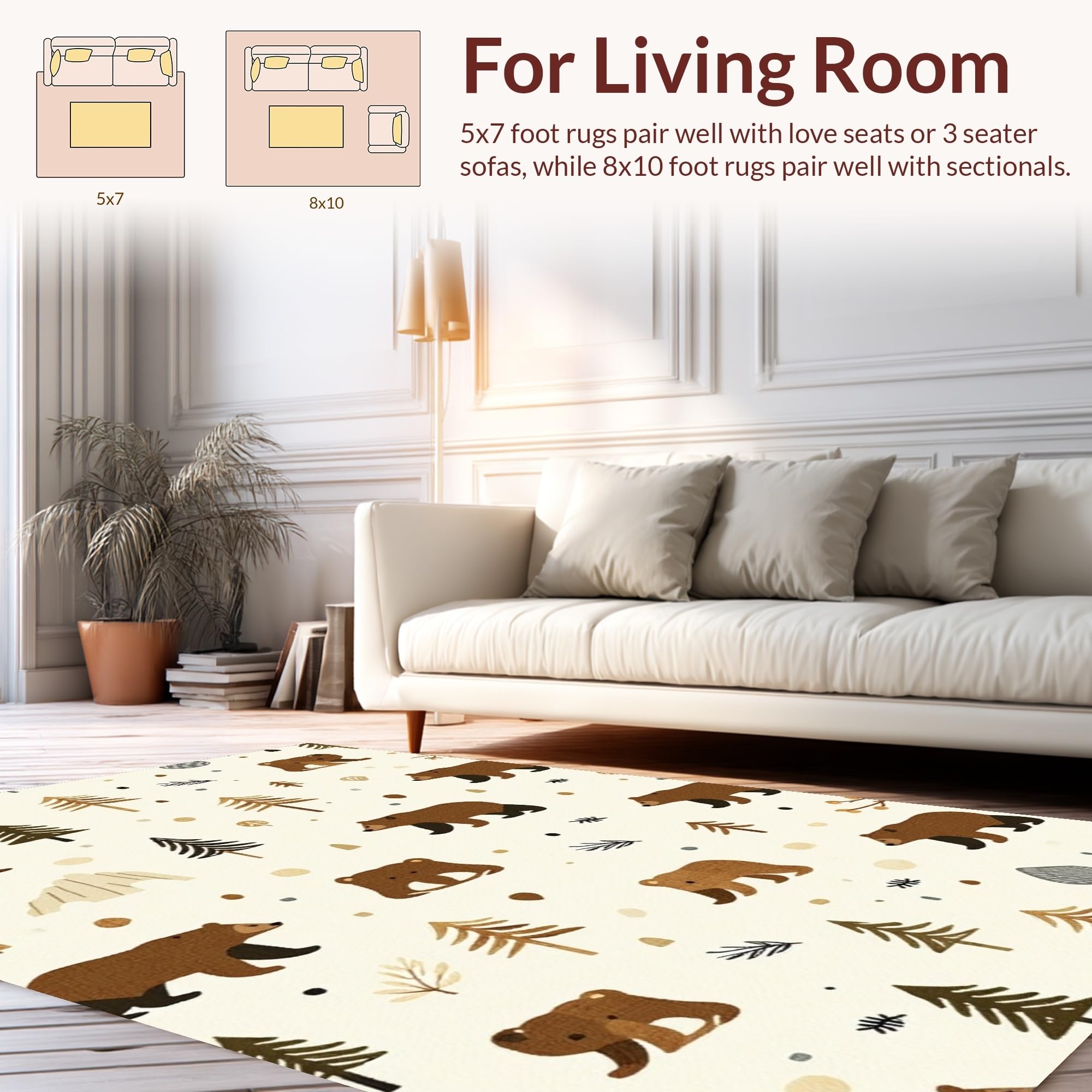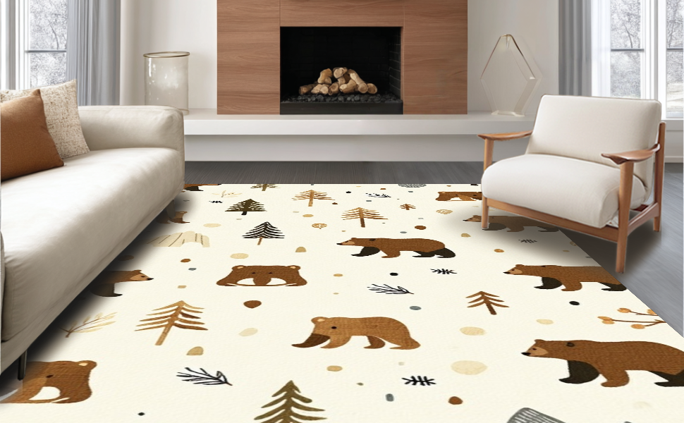 Ultra Soft Area Rug, Non Slip, Stain Resistant, Washable Area Rugs for Living Room, Bedroom, Warm Inviting Bear Graphic Style(Beige) Overview:
