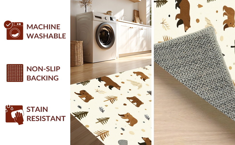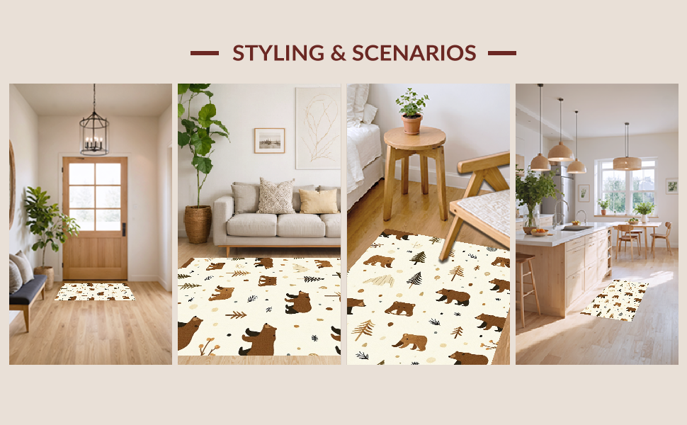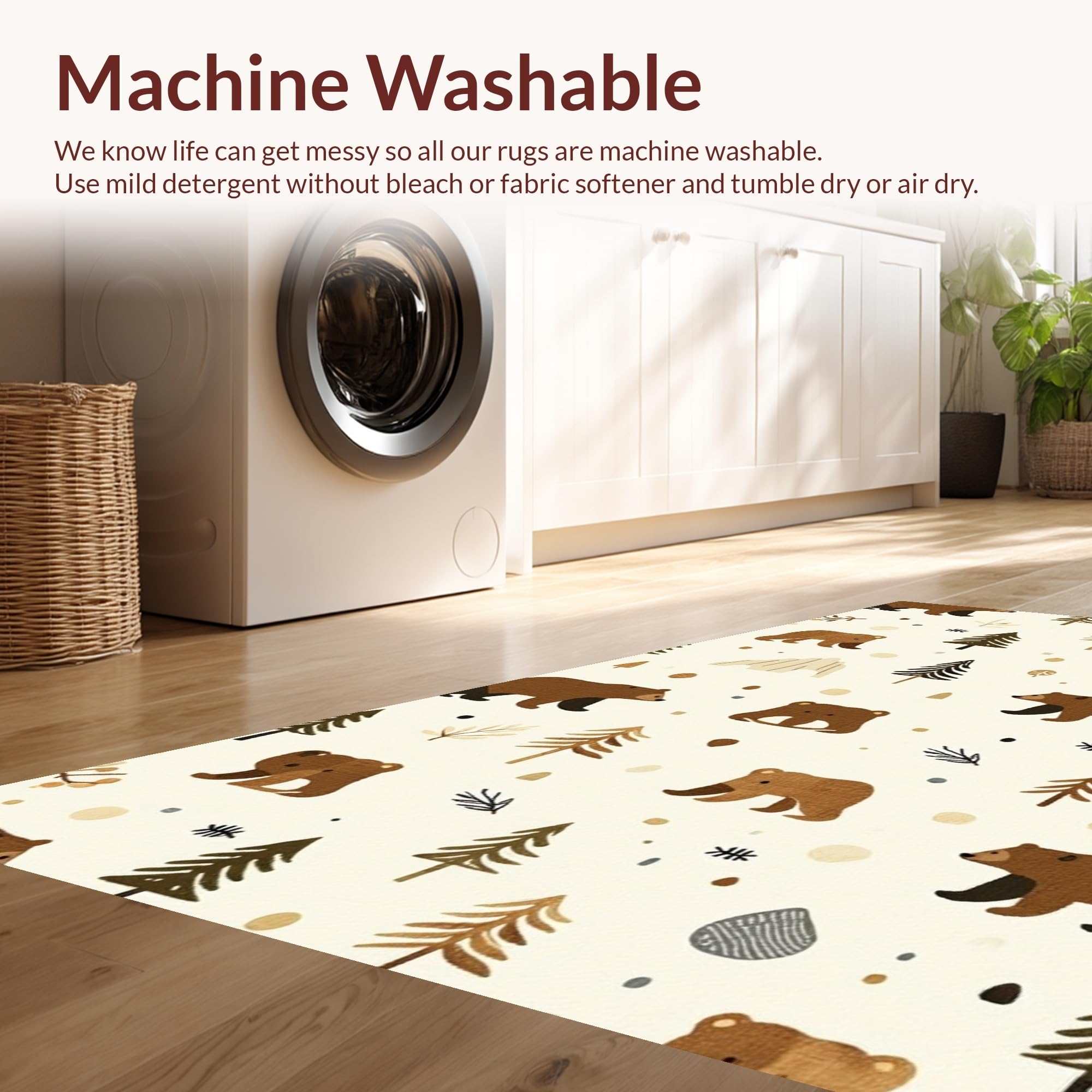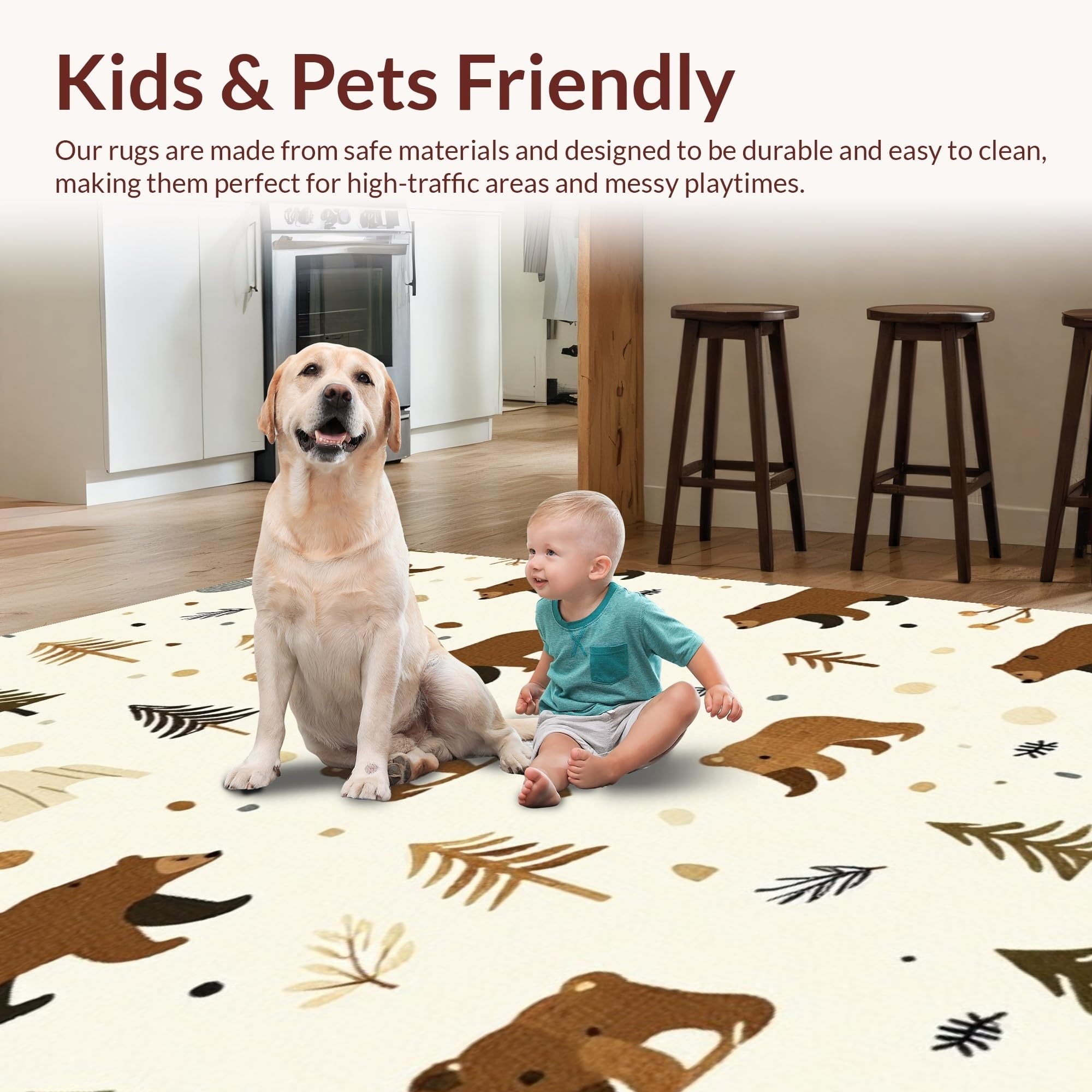 Ultra Soft Area Rug, Non Slip, Stain Resistant, Washable Area Rugs for Living Room, Bedroom, Warm Inviting Bear Graphic Style(Beige) Overview: