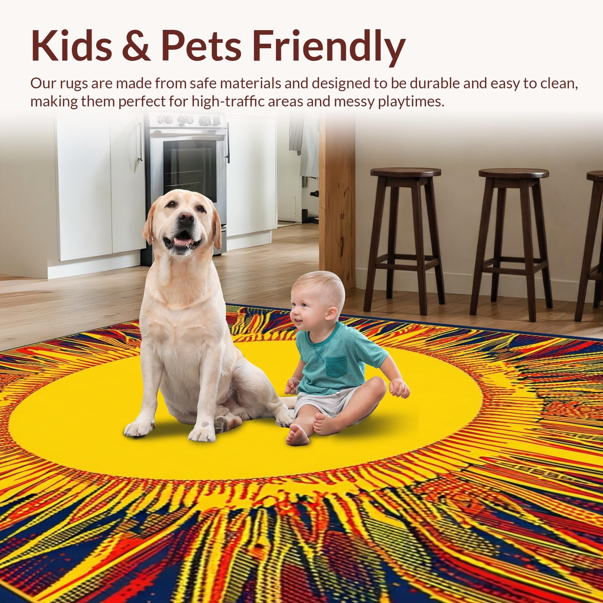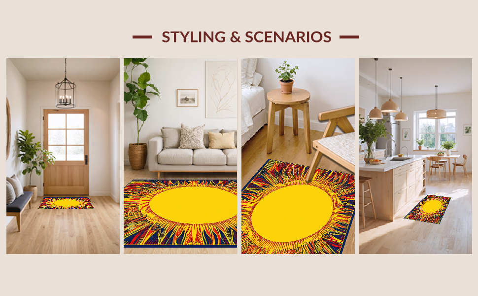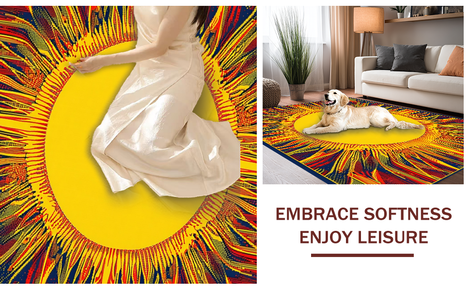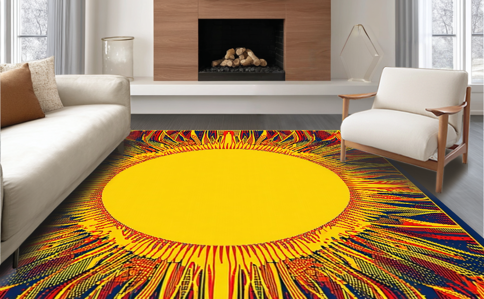 Ultra Soft Area Rug, Non Slip, Stain Resistant, Washable Area Rugs for Living Room, Bedroom, Warm Toned Artistic Swirl(Yellow) Overview:
